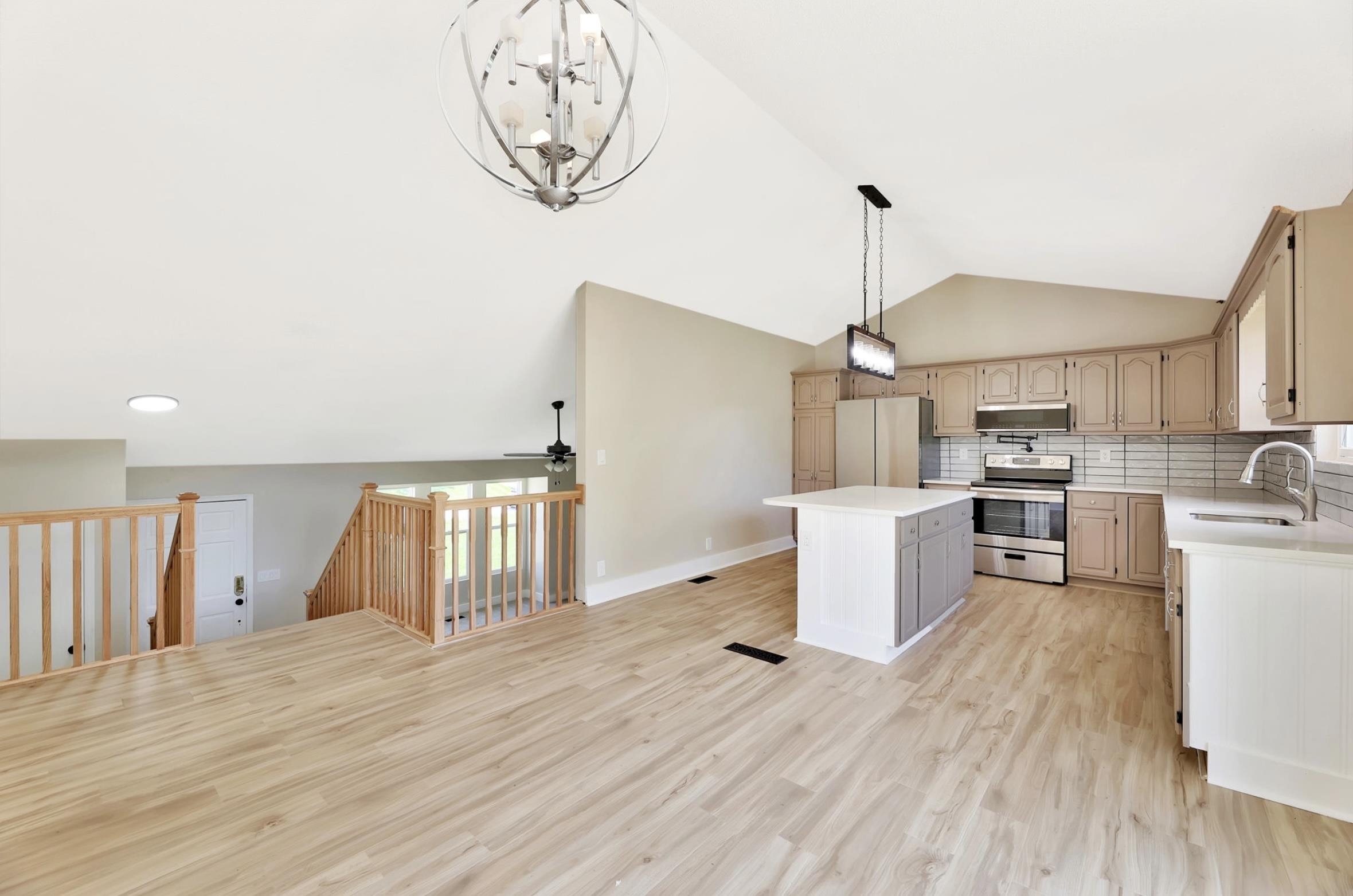 - Description: Welcome to this beautiful 4-bedroom, 3-bathroom home nestled on 1.39 acres with stunning lake views. The exterior features an attached two-car garage, a spacious back deck with a patio below, and a dedicated volleyball area—perfect for outdoor entertaining. Brand new roof as of August 2025! Inside, you’ll find a bright and open living room with vaulted ceilings and an abundance of natural light. Just up the stairs is the formal dining room with direct access to the back deck, ideal for indoor-outdoor living. The generously sized kitchen offers plenty of cabinet space, a pantry, a breakfast bar, and includes both the dishwasher and range hood. The primary bedroom boasts a breathtaking lake views, an en-suite bathroom complete with a double vanity, new tub, and separate walk-in shower. Two additional bedrooms and a full bathroom complete the upper level. The walk-out basement features a cozy family room with a fireplace framed by built-in bookshelves and sliding doors leading to the backyard. You’ll also find a large fourth bedroom, a full bathroom, a laundry room, and a versatile storage/bonus room. Don’t miss your chance to own this unique property with endless possibilities and gorgeous lake views! Show all description