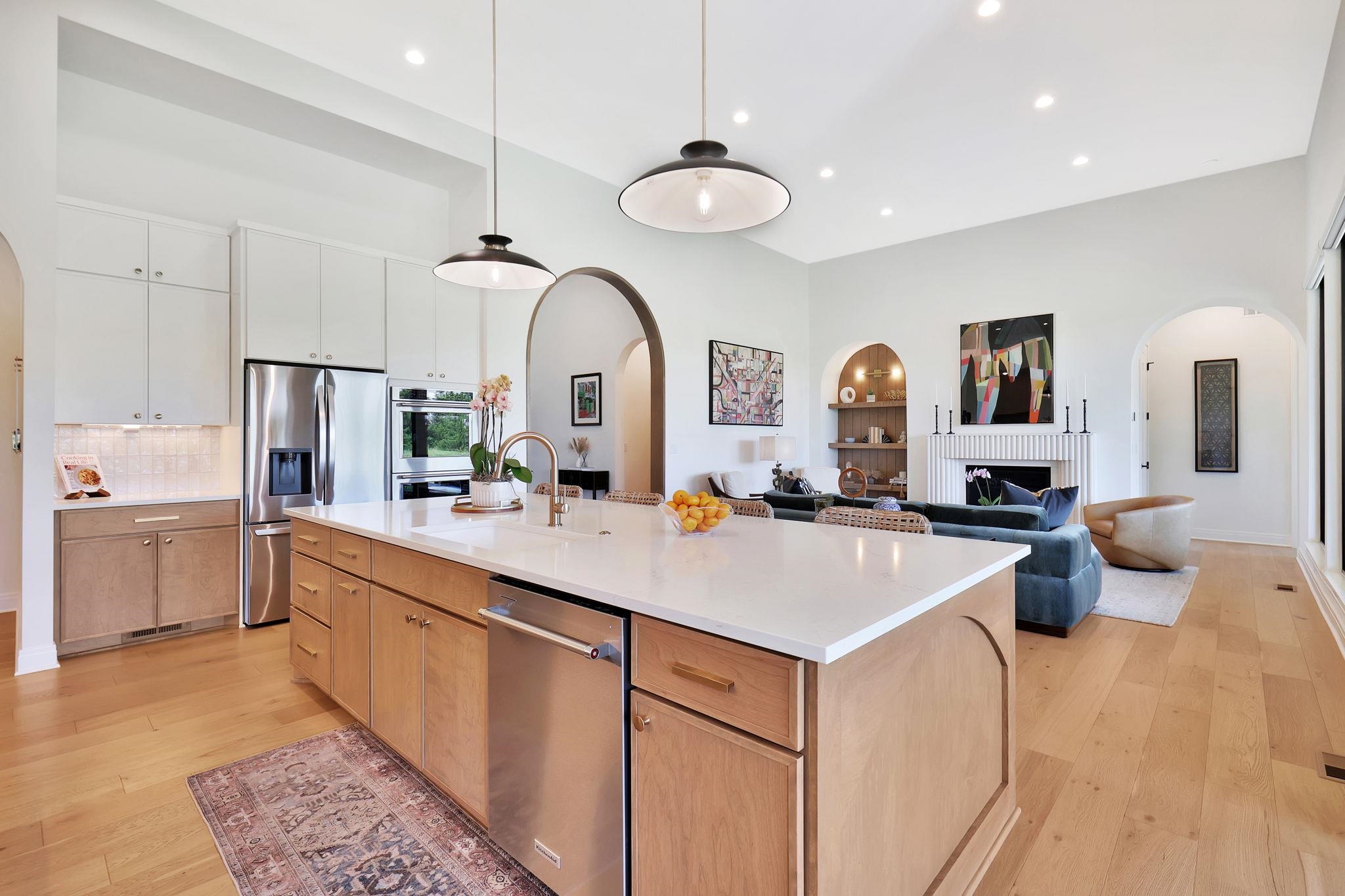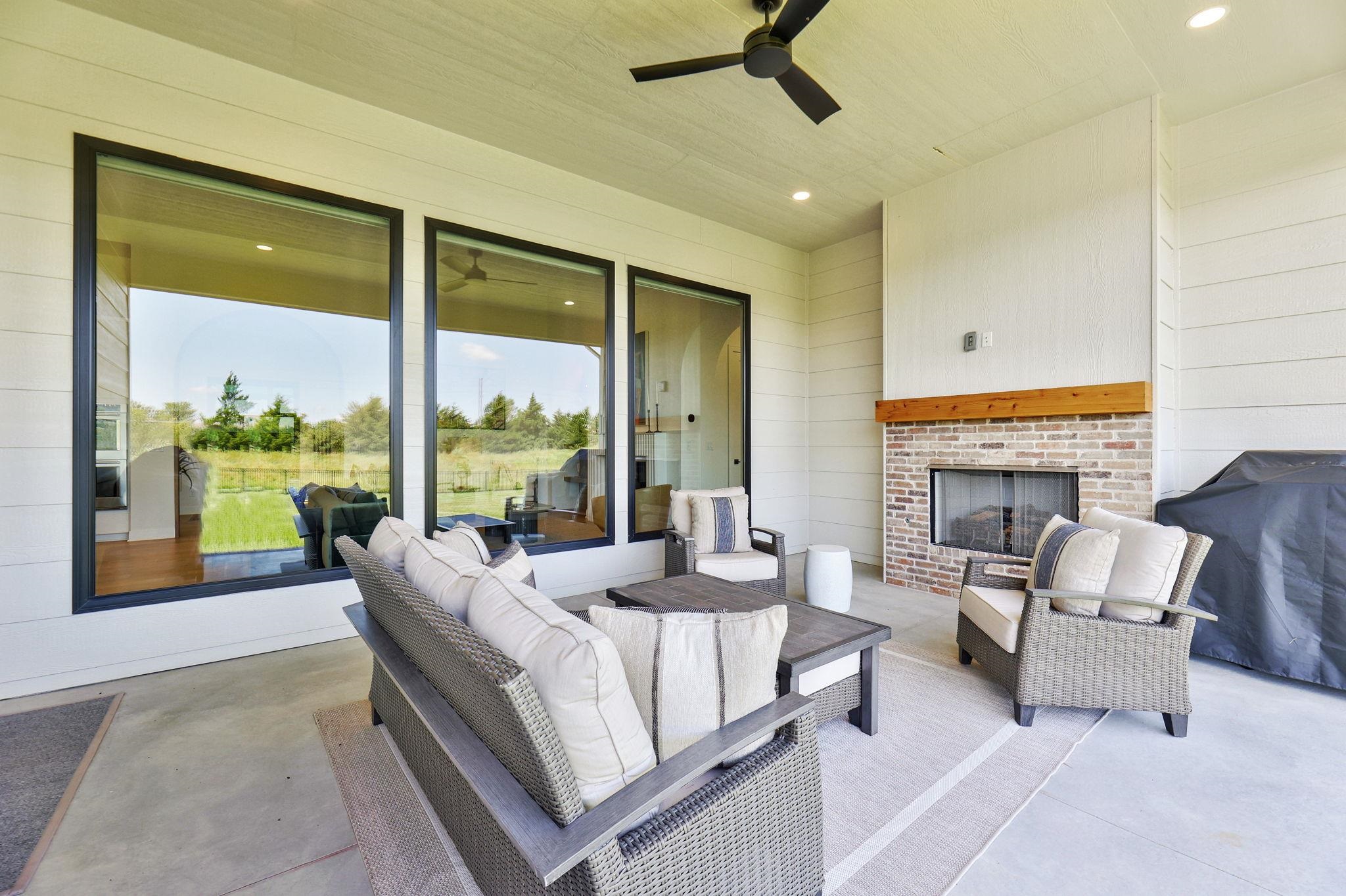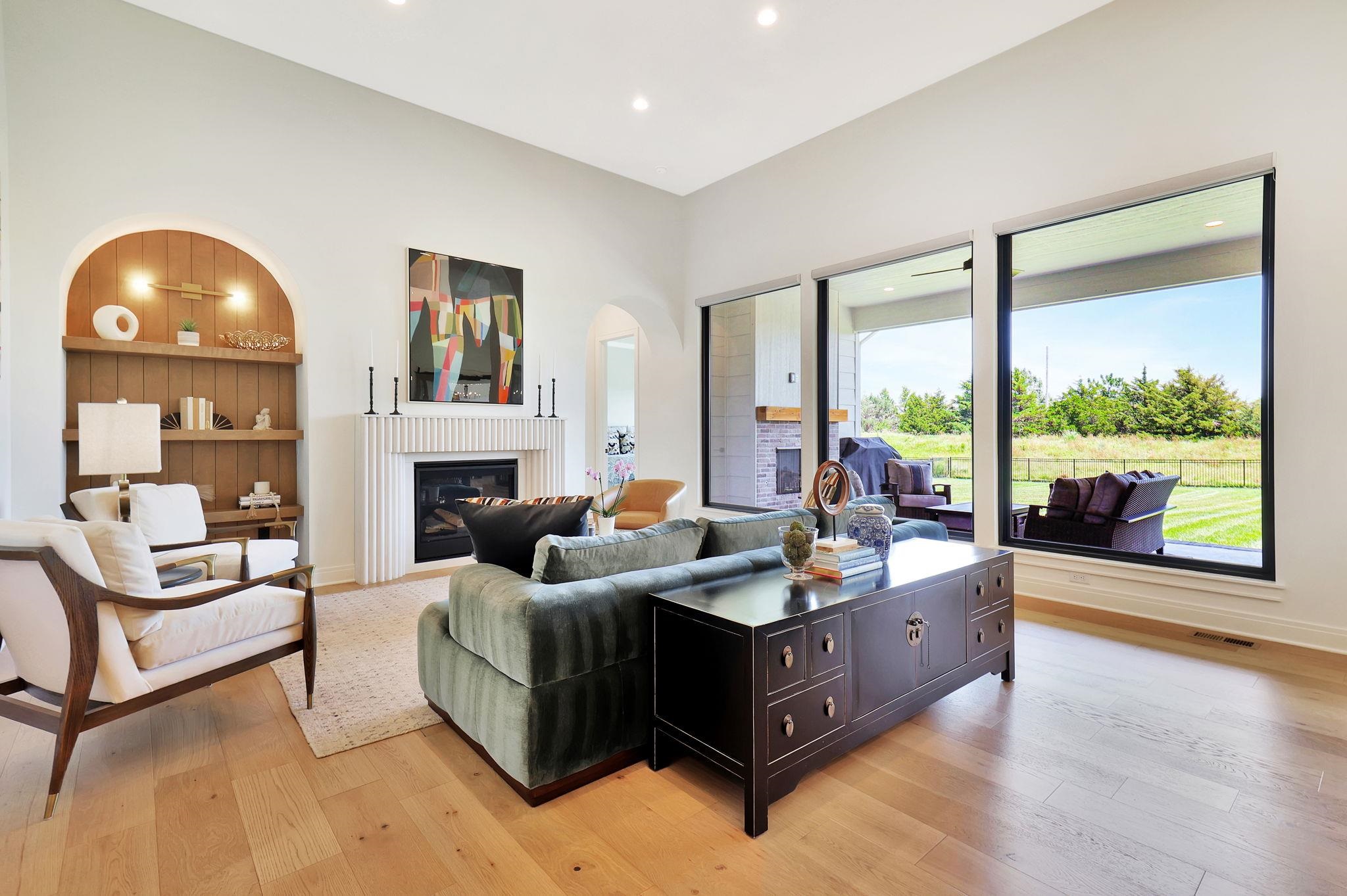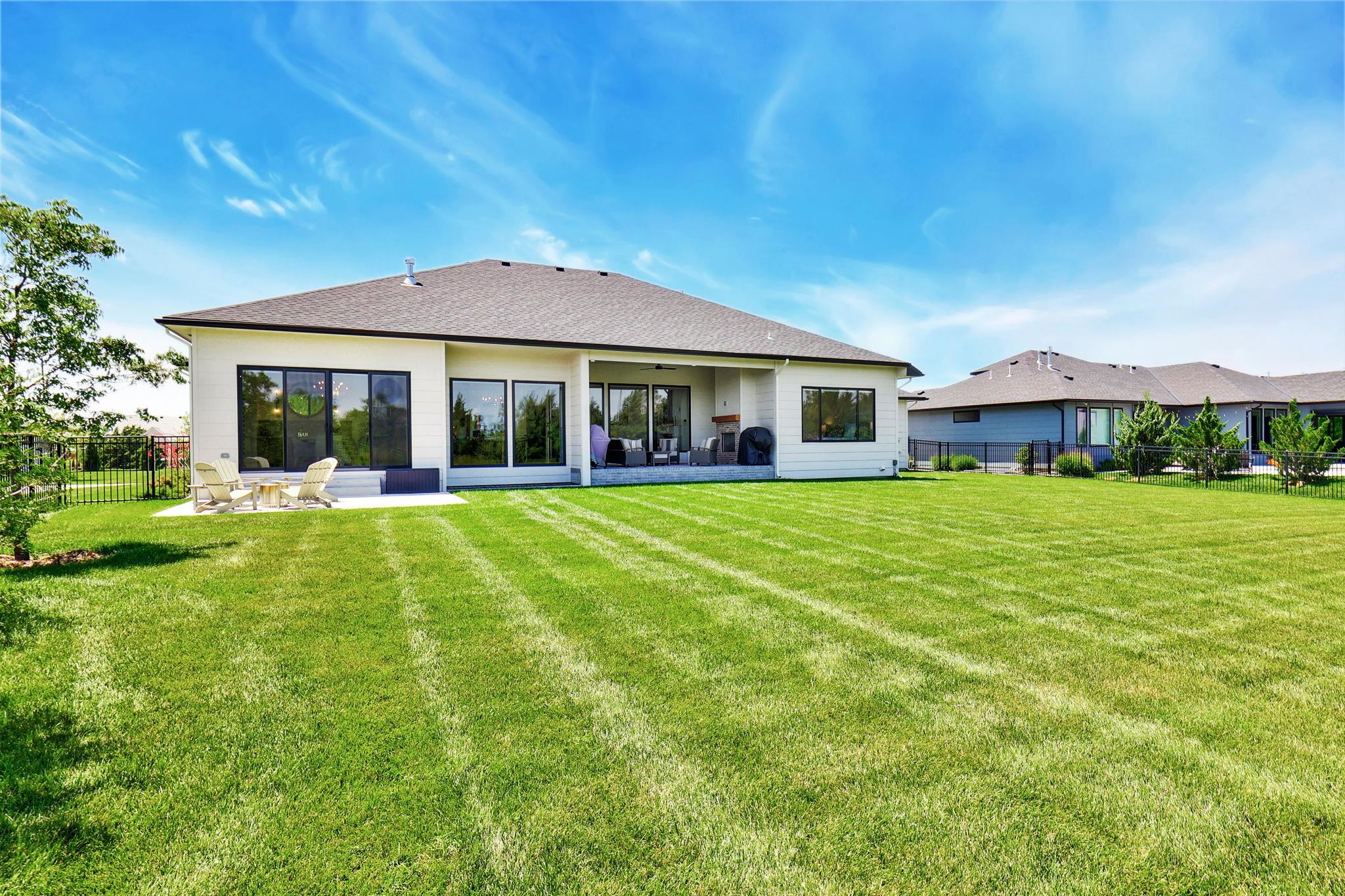 - Description: Welcome to this stunning, one-owner ranch, built by renowned builder Craig Sharp Homes in 2023 and enhanced by the owners. Tucked on a 0.64-acre lot with an East-facing backyard, this home blends thoughtful design, upscale finishes, and modern comfort with high ceilings, wide plank hardwood flooring, and sun-drenched living spaces framed by windows spanning the back of the home. Gently lived in and meticulously maintained, it feels brand new—offering a sophisticated yet inviting atmosphere that suits a variety of styles. A gracious foyer with a modern iron/glass front door and wood framed archway opens into an airy, open-concept floor plan with crisp white walls in the perfect shade. The gourmet kitchen is a showstopper—complete with a massive quartz island/eating bar, gas range, double ovens, hidden outlets, and a stunning vertical tile backsplash. A large walk-in butler’s pantry keeps counters clutter-free and is ideal for the microwave and a coffee bar, air fryer, or juicer. The heart of the home is the beautiful great room, centered around a fluted cast stone fireplace flanked by an arched built-in with warm wood paneling. A flexible space adjacent to the kitchen features an electric fireplace with a painted brick herringbone surround, a walk-up bar with a beverage fridge, and direct access to the patio—ideal for use as a formal dining room, rec room, or additional main floor living space. The everyday dining area opens to a covered lanai with its own outdoor fireplace, perfect for relaxing or entertaining. Enjoy exceptional privacy with the split bedroom layout. Retreat to a lovely primary suite featuring a coffered ceiling, stunning light fixtures, dual vanities with a vertical tile wall, a soaking tub with an accent wall, a walk-in tile shower with a bench and hand held sprayer, and a private water closet. The exceptional walk-in closet features an island, seasonal hanging space, and direct access to the laundry room. A beautiful powder room and drop zone in the back hallway add both style and function. Two additional bedrooms on the main floor share a well-designed Jack-n- Jill bathroom. Entertaining is made easy in the fully finished basement, offering even more space for entertaining with a wet bar featuring floating shelves, wine storage, a microwave, and a beverage refrigerator. A spacious rec room with an accent wall is ready for your big screen TV, and French doors lead to a dedicated office with built-ins. Two more bedrooms—one with an en-suite and one next to a full hall bath—continue the home’s private, well-planned layout. Step outside to a fully fenced backyard with sprinklers, a privacy berm, and trees lining the back and side. This open space is a blank canvas that presents opportunity to create your custom oasis—whether that’s a pool, sport court, outdoor kitchen, or all of the above. The oversized four-car garage features an epoxy-coated floor, adding both polish and practicality. Located in Sedgwick County within the desirable Andover School District for lower taxes and top-tier education, this home is a picture of modern living at its finest—elegant, efficient, and ready for its next chapter. Why wait to build when you can own this stunning 2-year-old home that shows like new—without the wait, the hassle, or the rising costs. Thoughtfully maintained and lightly lived in, this home offers the pristine condition of new construction at a better value. Pretty as a picture, it’s truly a beautiful home, with visually pleasing design elements and high-end finishes at every turn. Don't miss! Show all description