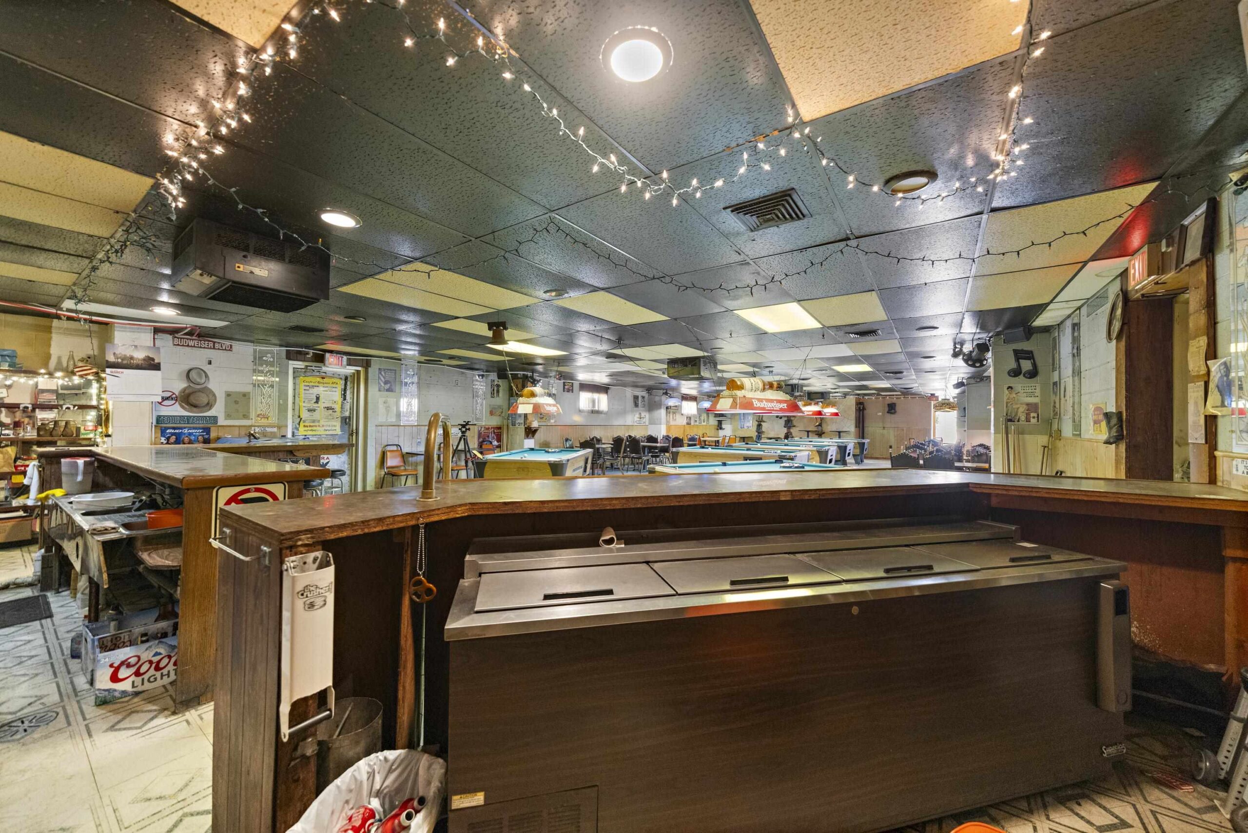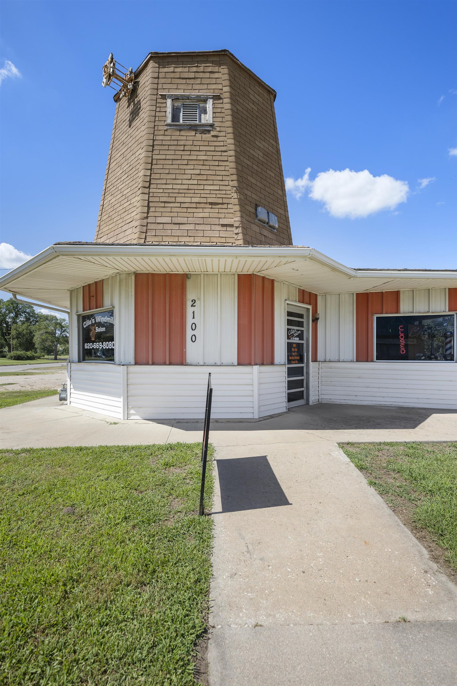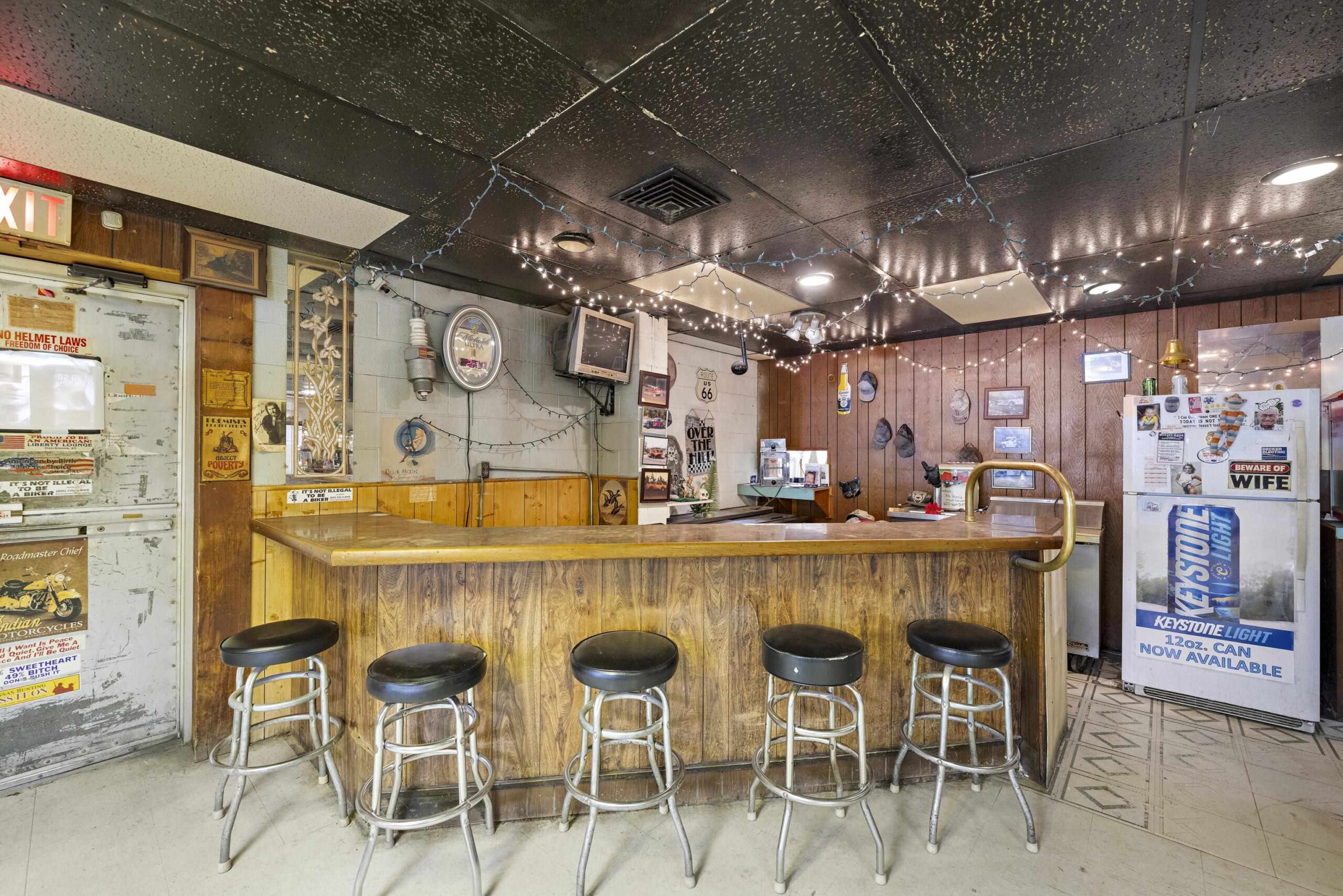 - Description: GIANT property with THREE spaces for business!!! With a nearly acre property this building includes tons of parking, a storefront, a former bar and windmill with retail space this property offers a ton of investment opportunity! Set on the industrial area of 4th Avenue in Hutchinson this property gets plenty of traffic exposure. The storefront was previously a liquor store with a walk in cooler, private bathroom and a shop counter making it a great for retail space. At the back of the large building is a bar with pool tables, bar stools, kitchen equipment, tables and chairs all to remain! Cool lighting adds to the appeal for a bar once again and plenty of space leaves options for other businesses as well. Guests or customers are welcomed to the back business with a nice patio and newer awning to sit under! Parking on both sides of the large building and alley access makes traffic a breeze! The windmill was built in 1934 and moved to this location! With over 400 sq ft in retail space it is a great little shop that is currently rented. Don't miss your chance to have this LARGE space in a busy area of Hutchinson!!! Show all description