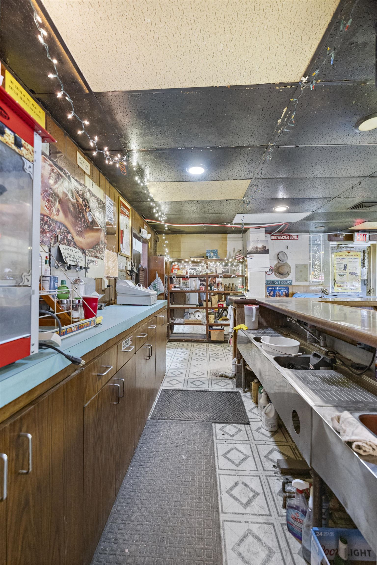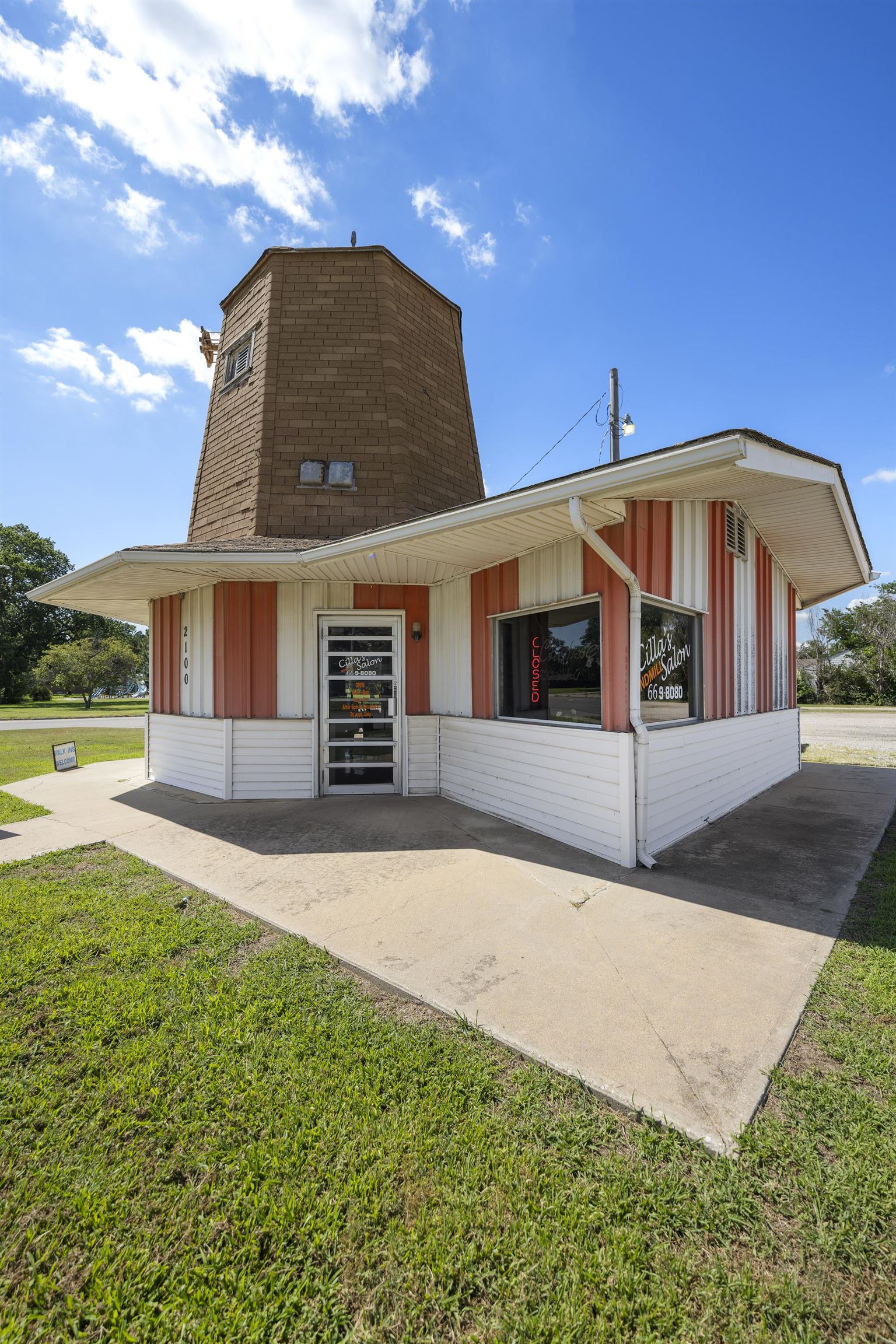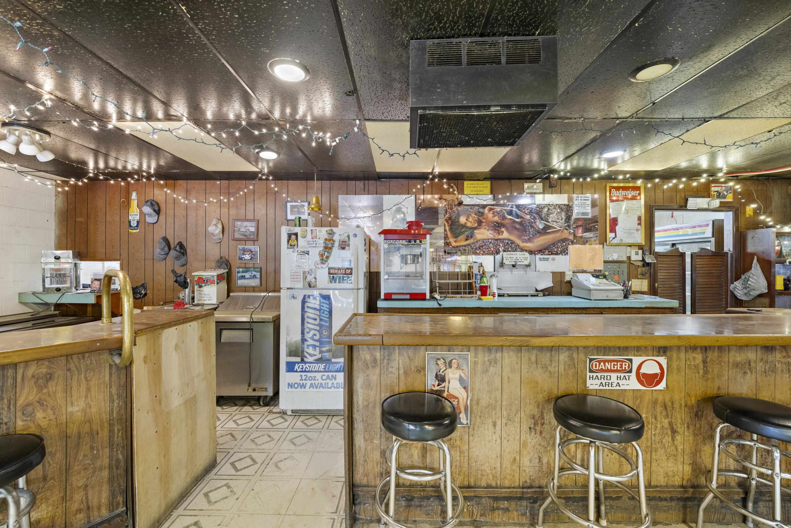 - Description: GIANT property with THREE spaces for business!!! With a nearly acre property this building includes tons of parking, a storefront, a former bar and windmill with retail space this property offers a ton of investment opportunity! Set on the industrial area of 4th Avenue in Hutchinson this property gets plenty of traffic exposure. The storefront was previously a liquor store with a walk in cooler, private bathroom and a shop counter making it a great for retail space. At the back of the large building is a bar with pool tables, bar stools, kitchen equipment, tables and chairs all to remain! Cool lighting adds to the appeal for a bar once again and plenty of space leaves options for other businesses as well. Guests or customers are welcomed to the back business with a nice patio and newer awning to sit under! Parking on both sides of the large building and alley access makes traffic a breeze! The windmill was built in 1934 and moved to this location! With over 400 sq ft in retail space it is a great little shop that is currently rented. Don't miss your chance to have this LARGE space in a busy area of Hutchinson!!! Show all description