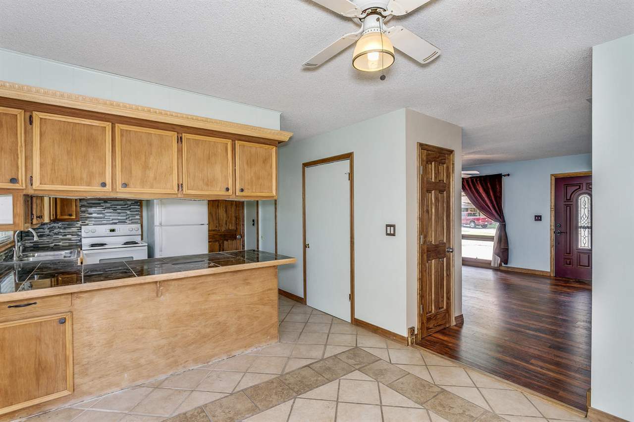 - Description: If you are in the market for a move in ready 3 bedroom 1.5 bath home you have to come check this one out! In the living room you’ll enjoy the huge picture window that lets in a lot of natural light and updated laminate flooring. The kitchen and dining room have updated tile flooring, counter tops, and backslash. Off of the kitchen is a beautifully updated half bath. Most windows have been updated. Nice neutral paint throughout. BRAND NEW carpet is being installed in bedrooms! New HVAC installed in 2018. Garage has new openers that were installed in 2018 as well. The back yard has a covered patio and large storage shed that has plenty of room for storage and work space. Schedule your private showing today! Show all description