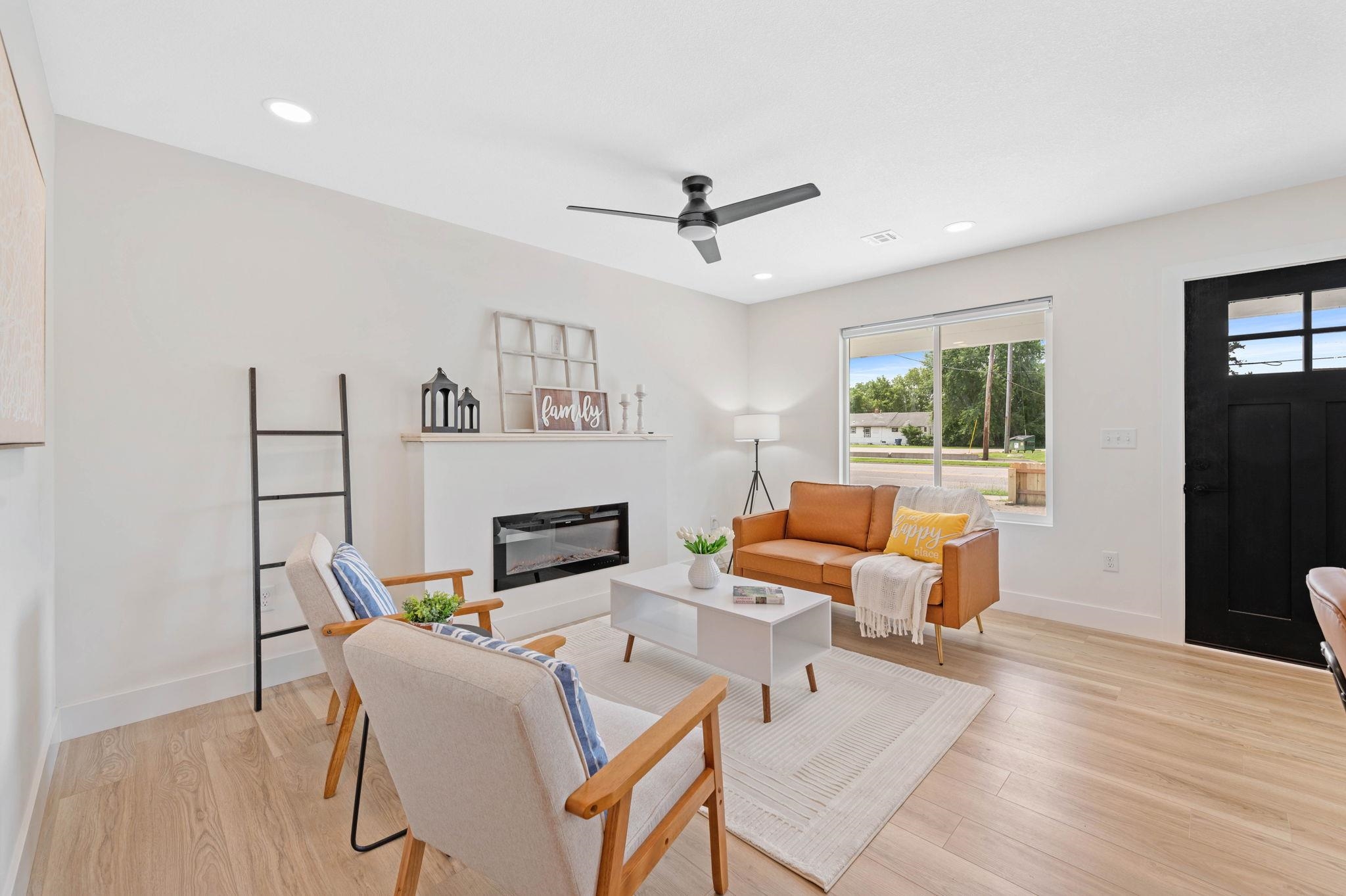 - Description: Welcome to this brand-new home featuring modern design and bright, open spaces. With 3 bedrooms and 2 bathrooms, this is one of the most affordable new construction options in Wichita. Inside, you’ll find a functional open layout filled with natural light from large windows. The living area includes an electric fireplace, while the kitchen features quartz countertops, an eating bar, and included appliances. The primary bedroom offers a walk-in closet and a private en-suite bathroom with quartz counters. A separate laundry room is conveniently located on the main level. Enjoy the outdoors with a covered patio and a fenced backyard for added privacy. Don’t miss your chance to own this move-in-ready home in a great location. Schedule your showing today! Show all description