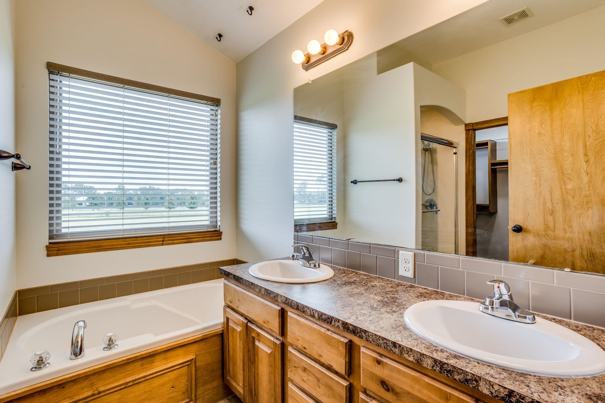 - Master Bedroom: Master Bdrm on Main Level, Master Bedroom Bath, Tub/Shower/Master Bdrm, Two Sinks