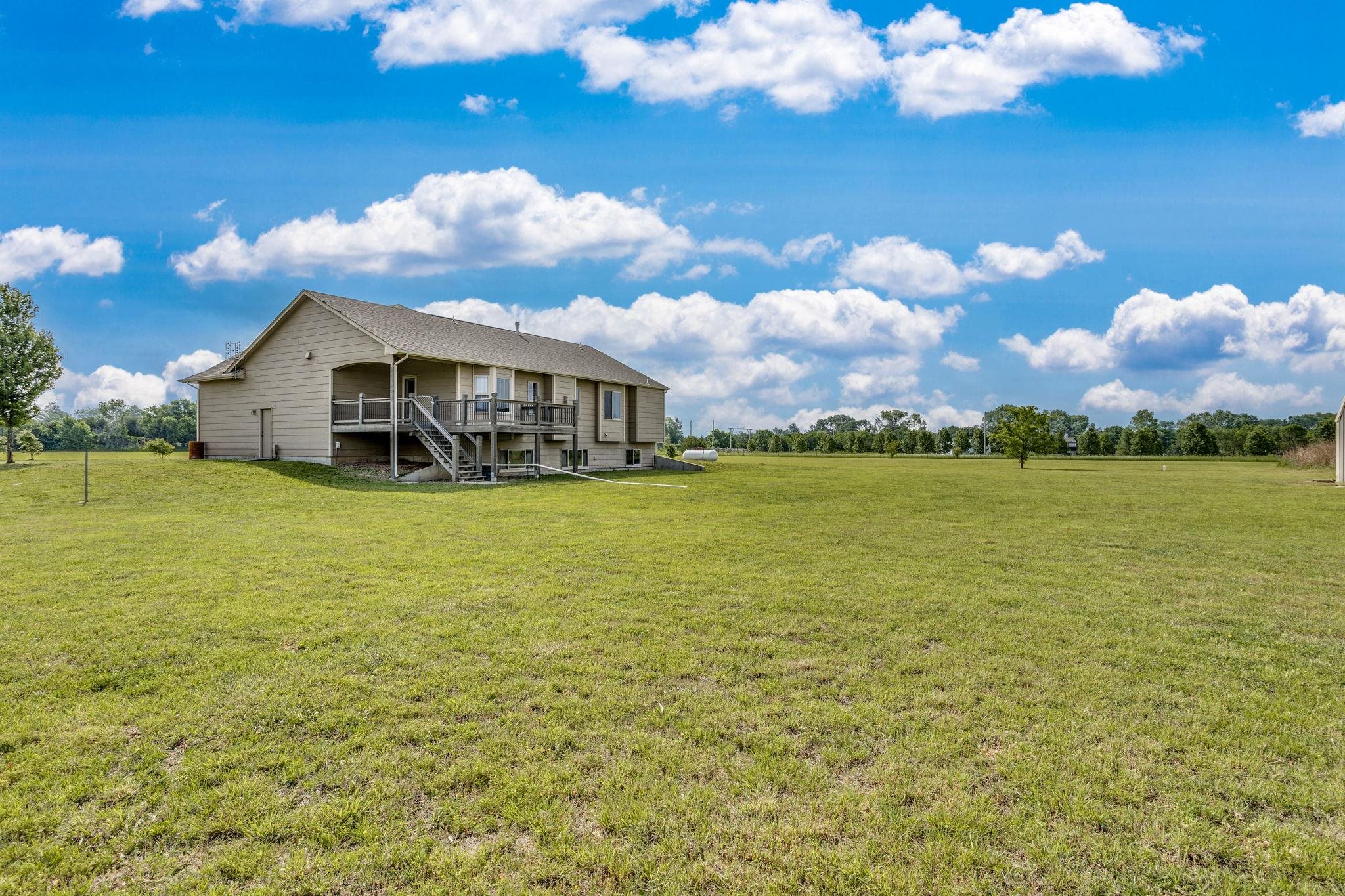 - Description: Cultivate your very own slice of country paradise—where space, serenity, and opportunity grow together in Douglass. Nestled on 12 beautiful acres in the Rose Hill School District, this well-cared-for property can support whatever dreams you’re ready to plant—whether that’s a home for horses and farm animals, space to build, or a haven for supercross enthusiasts with the outline of a once-used motocross track still visible. This 2014 built home with some modern rustic touches, offers over 1, 500 square feet on the main level with 3 bedrooms, 2 bathrooms, and a layout designed to grow with your lifestyle. The spacious kitchen blooms with abundant cabinet space, perfect for gathering and creating. The luxurious primary bath with a deep soaking tub offers a peaceful retreat after a long day. Step outside onto the covered deck and take in the wide-open skies—ideal for sunrise coffee or sunset unwinding. The view out basement with natural lightening has a large family room, 2 additional spacious bedrooms, 1 full bathroom and indoor storage. The 3-car garage is more than just vehicle storage; it has a workshop space with built-in additional overhead-storage area, ready for your tools, projects, toys and passions. Every inch of this property reflects intentional care and pride of ownership—an environment that’s been nurtured over time. Tucked just off blacktop roads and only 20 minutes from McConnell Air Force Base or Spirit AeroSystems, this home gives you the best of both worlds: peaceful country living with quick access to the Wichita Metro area. Come plant your roots where there’s room to grow. Show all description