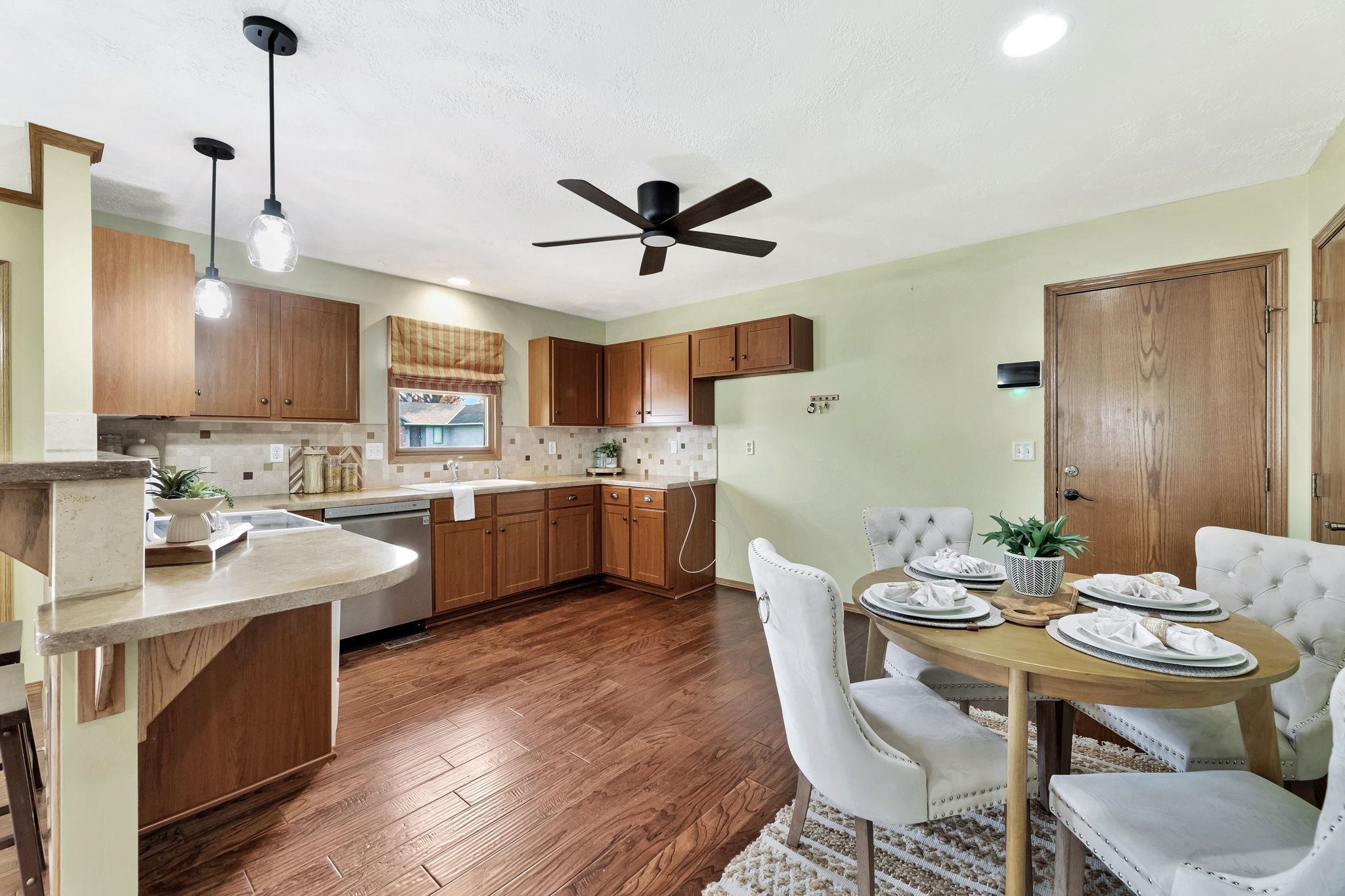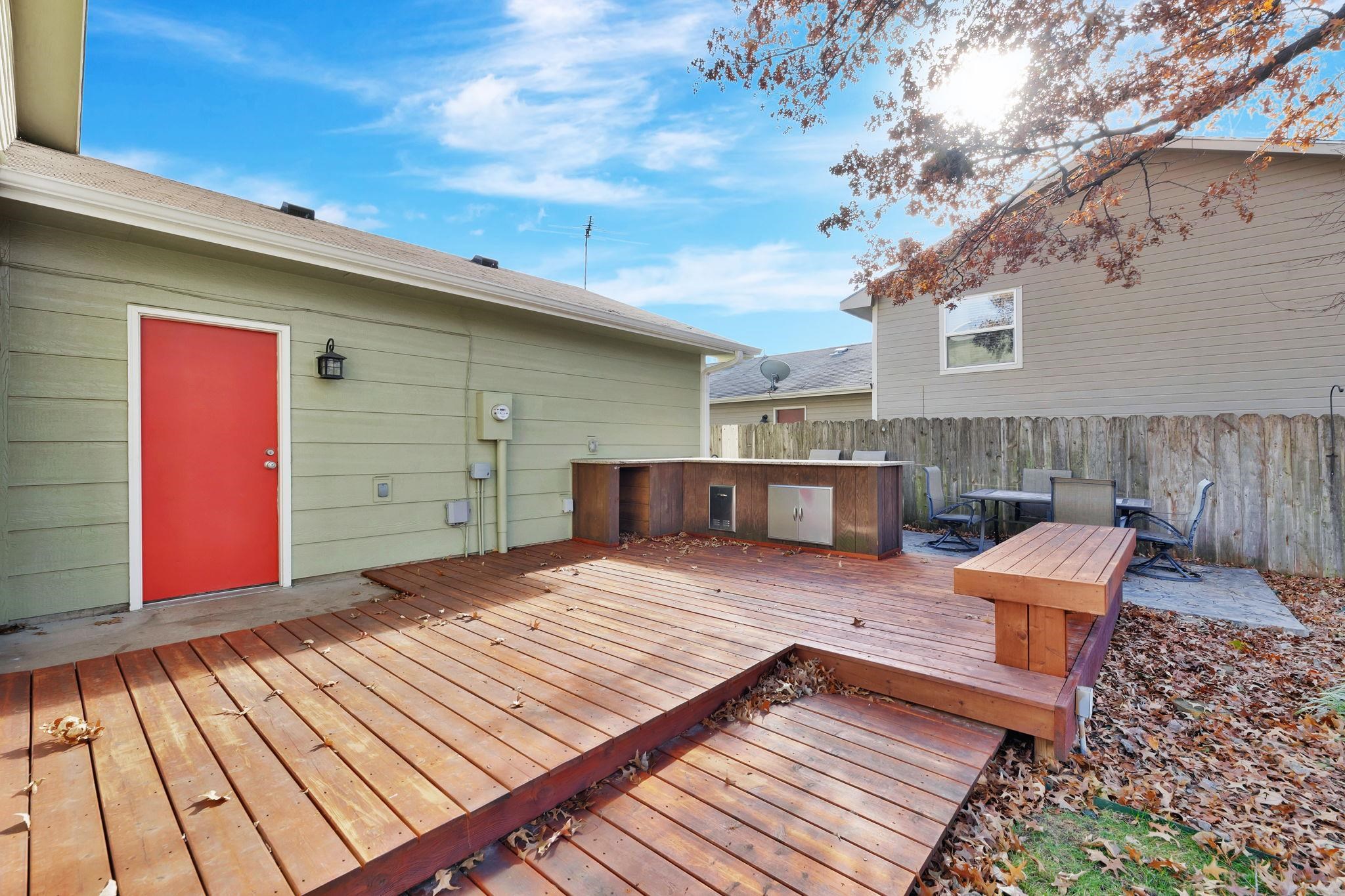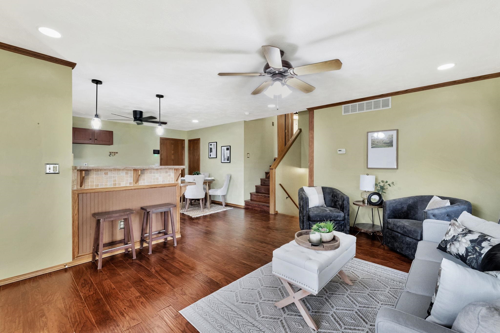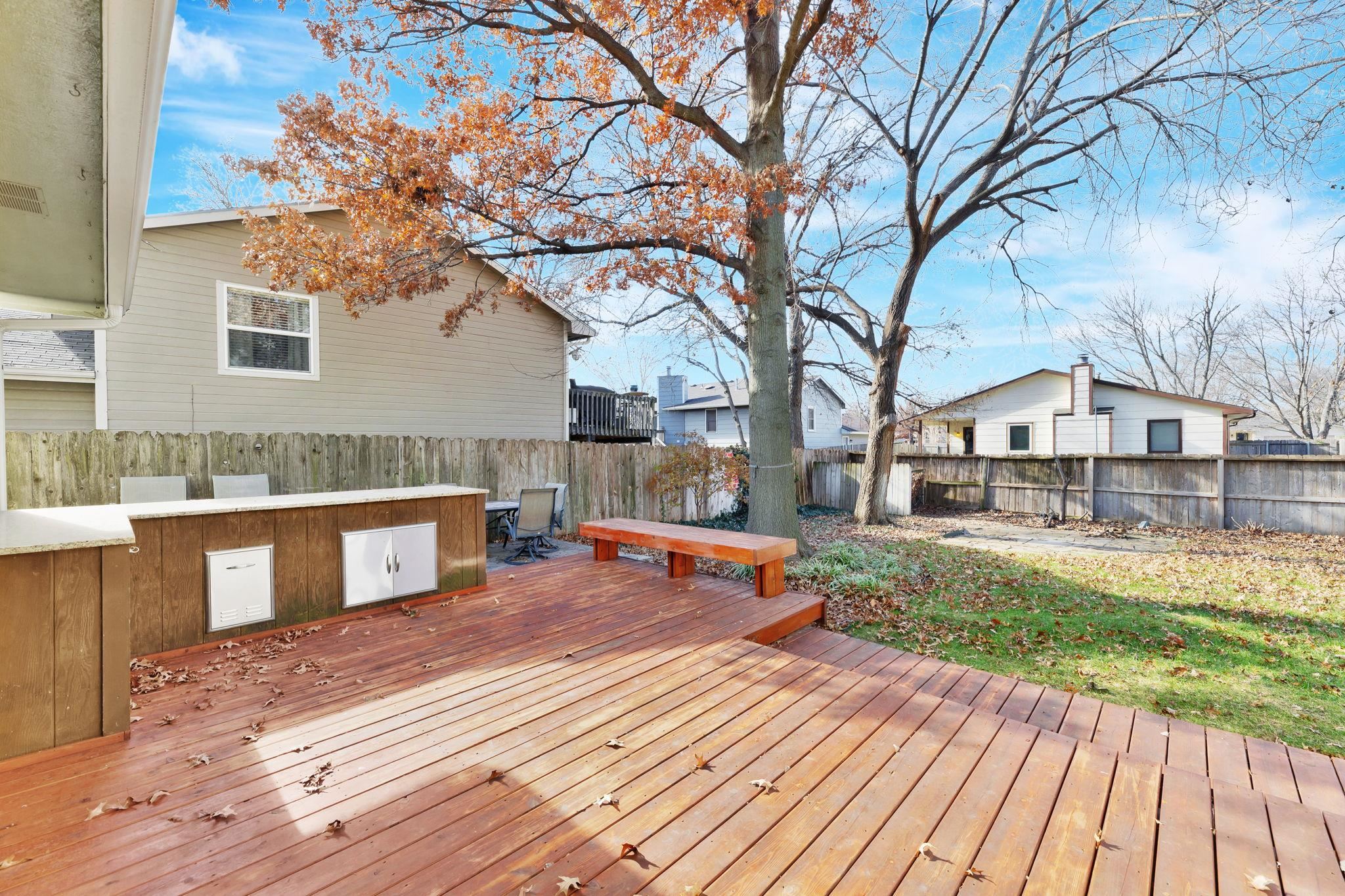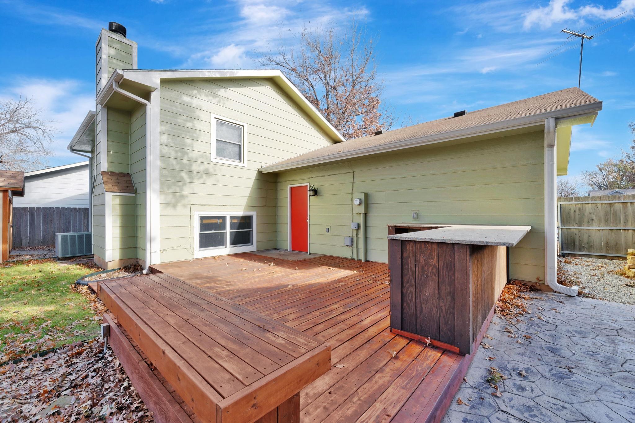 - Description: Welcome to this beautiful home located on the highly desired west side of Wichita. Offering three spacious bedrooms with walk-in closets, this home features hardwood floors, an open floor plan, a cozy fireplace, and bright LED lighting throughout. The layout includes a short level up and level down, creating a stylish and natural transition between living spaces. The amazing backyard is designed for entertaining—complete with a built-in bar on a fabulous deck, perfect for gatherings, grilling, and outdoor relaxation. The surround sound system and mounted flat-screen TV are included, adding even more value for the new owner. This home is move-in ready and waiting for the next buyer to add their personal touches to make it truly their own. Don’t miss your chance—call today to tour this home at this price before it sells! Show all description