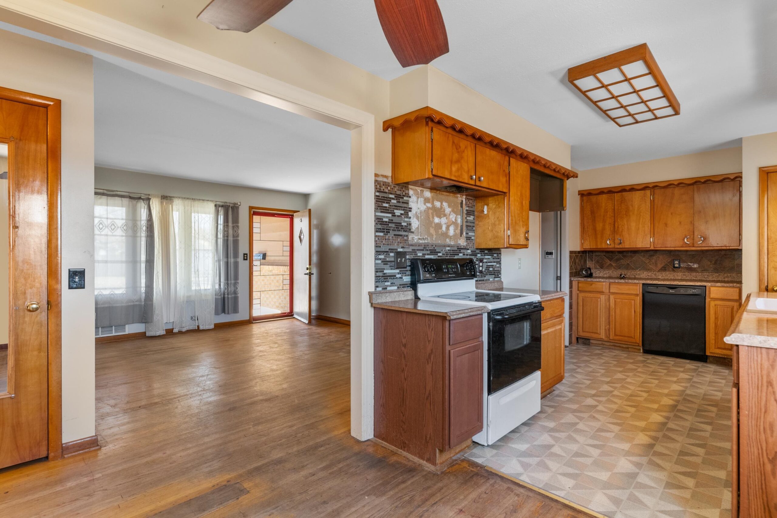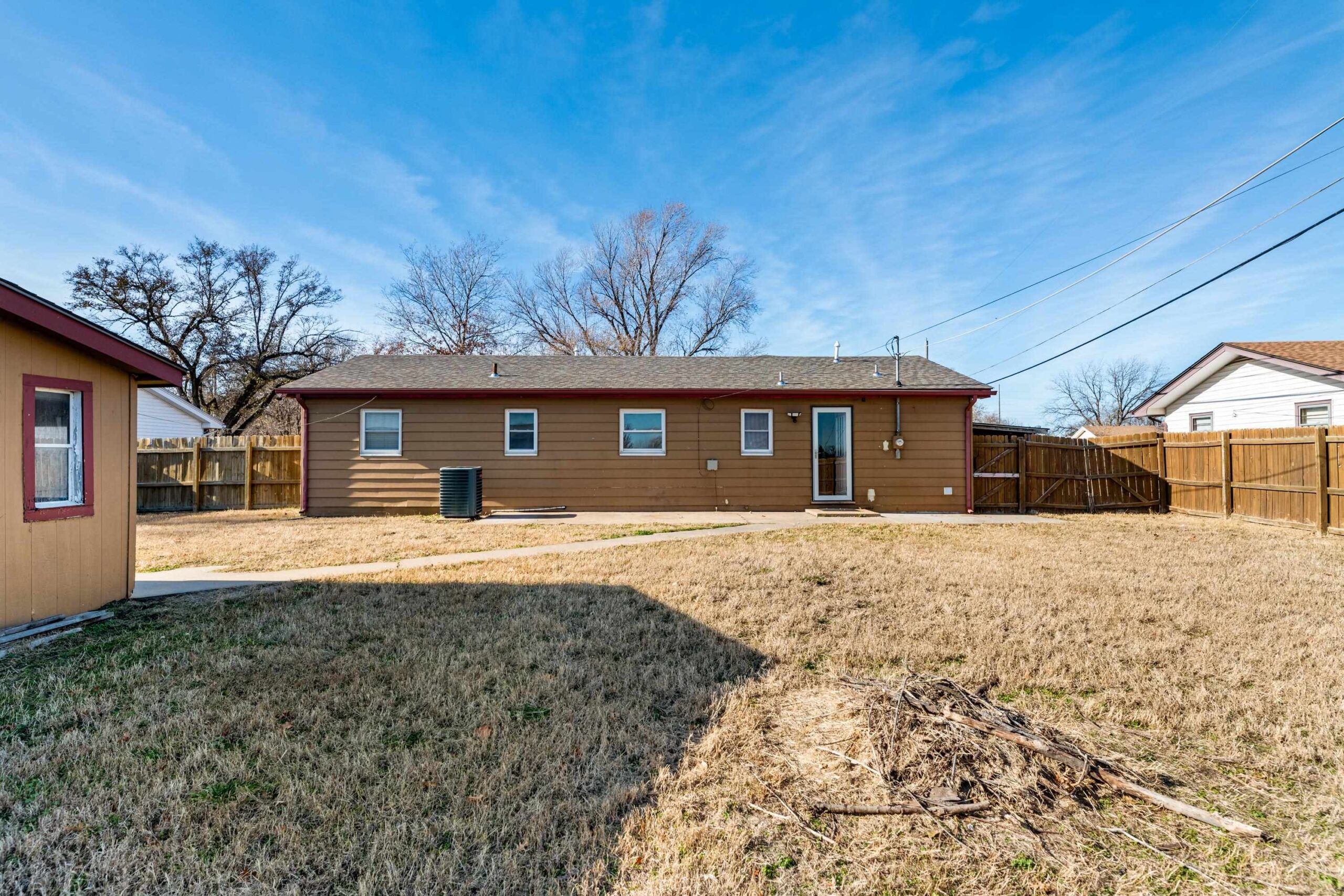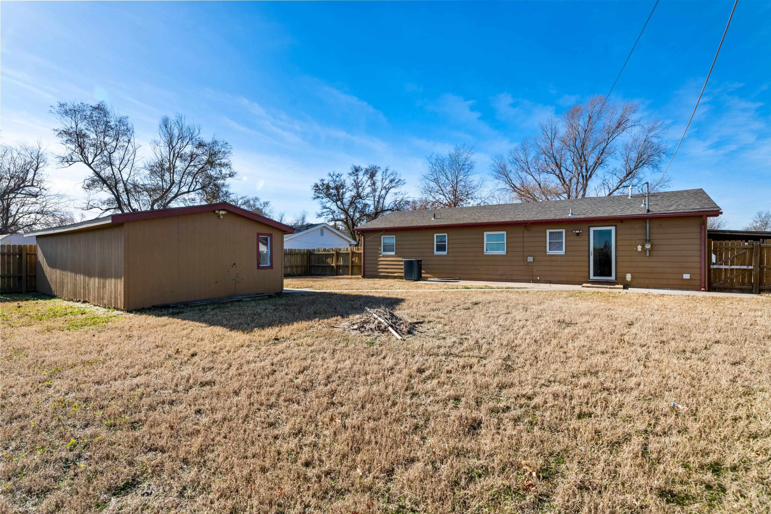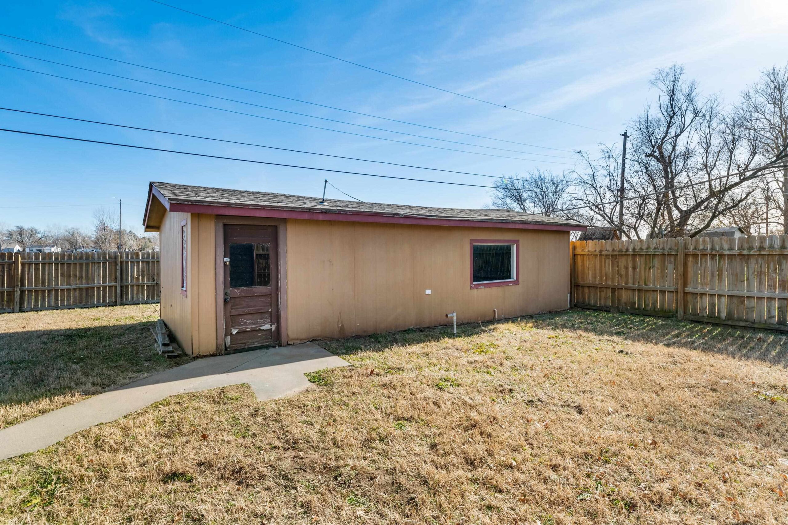 - Description: Charming 3-Bedroom, 2-Bath Ranch in South Wichita. This home features original hardwood floors, partially updated kitchen and bathrooms, vinyl windows, newer HVAC system and tankless hot water heater. The attached garage has been converted into a spacious main-floor family room, perfect for entertaining. Additional highlights include a large front porch, a covered carport, and a fully fenced backyard with plenty of space and a large shop building. Home is being sold in as-is condition. Show all description