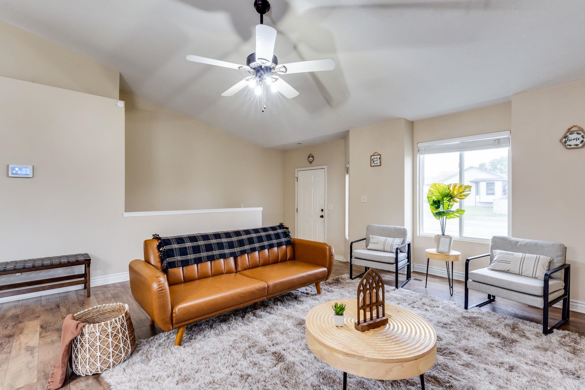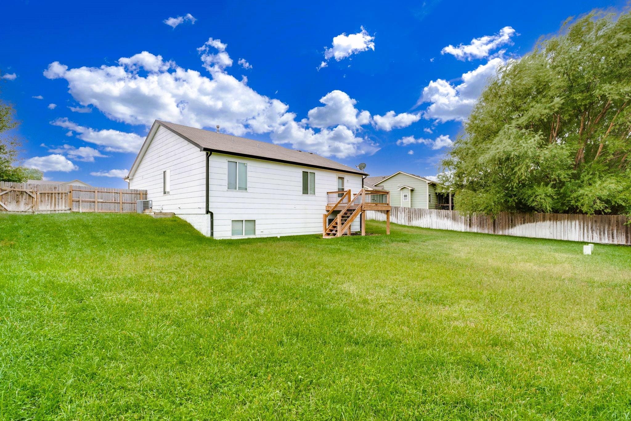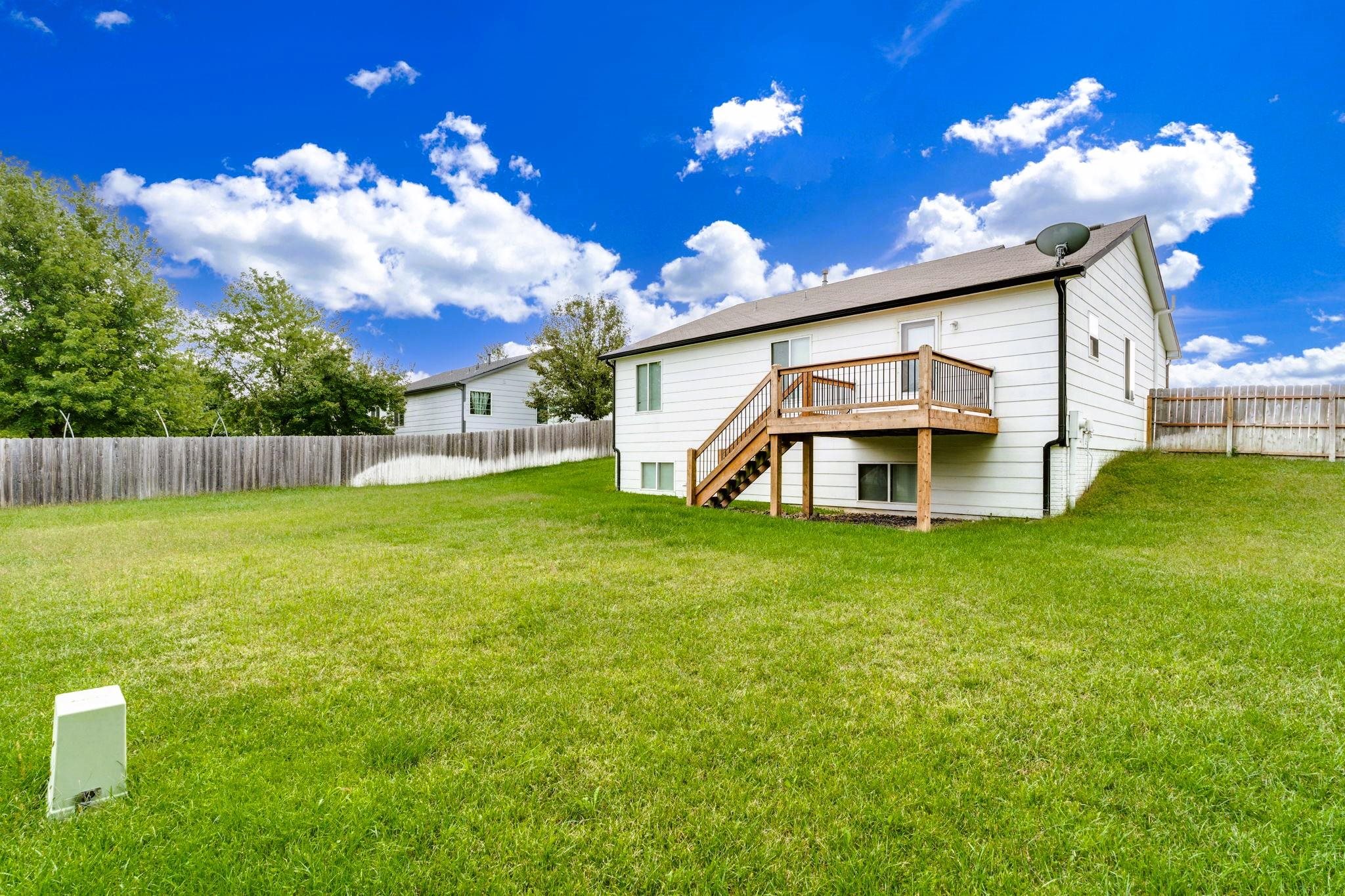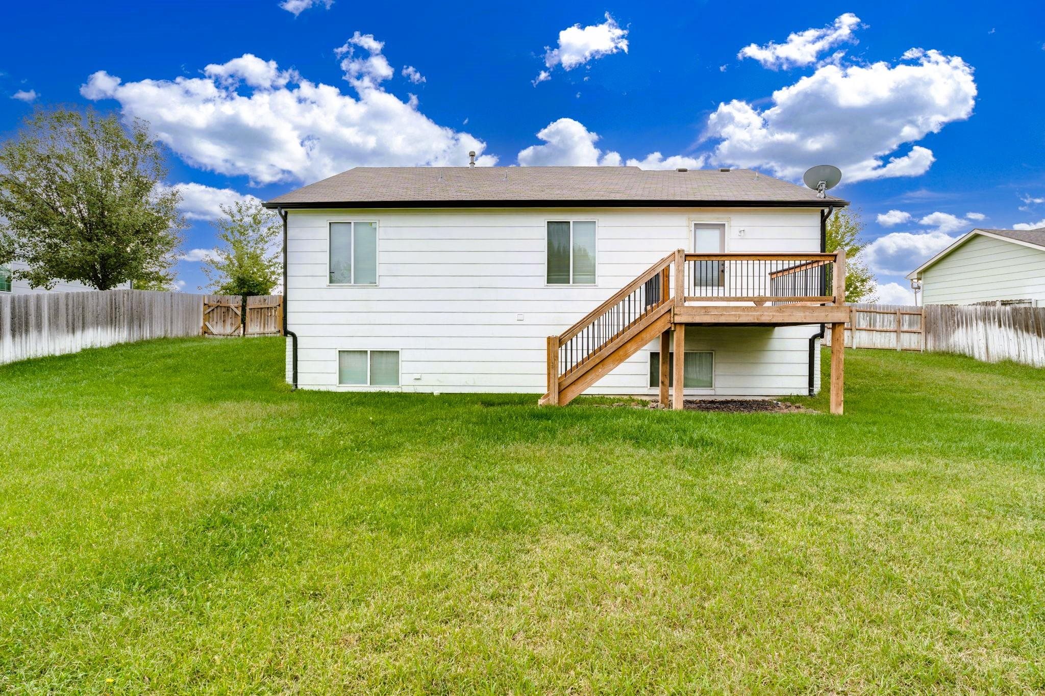 - Description: Come see this well-maintained home with modern touches throughout featuring 5-bedrooms and 3-bathrooms in Rustic Creek! This spacious property has just under 2, 500 sq ft of living space, vaulted ceilings, plenty of natural sunlight, and a view out basement. The open concept kitchen features plenty of cabinet space and an eat in bar for those busy mornings. Through the kitchen door you have access to the deck that is a great area to host family and friends! The property also features a sprinkler system with a fully fenced backyard. Enjoy the ease of access to shopping centers, parks, and schools in Goddard district which are some of the top-rated in the area. Schedule your showing today before this home is gone! Show all description