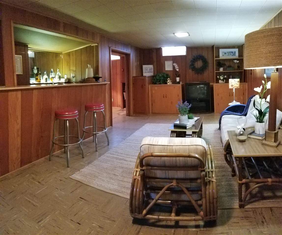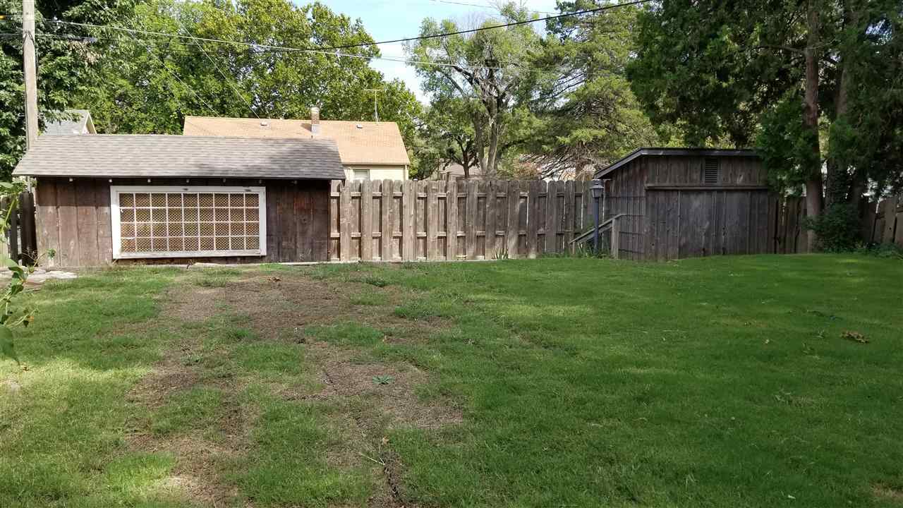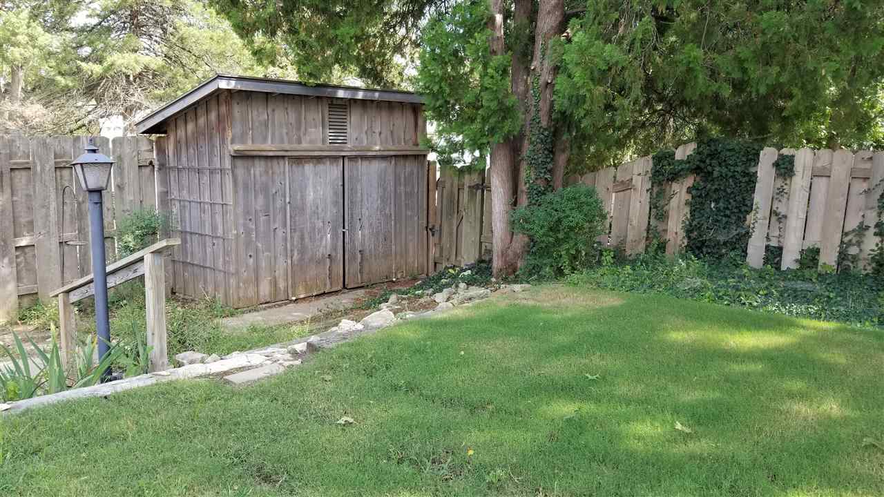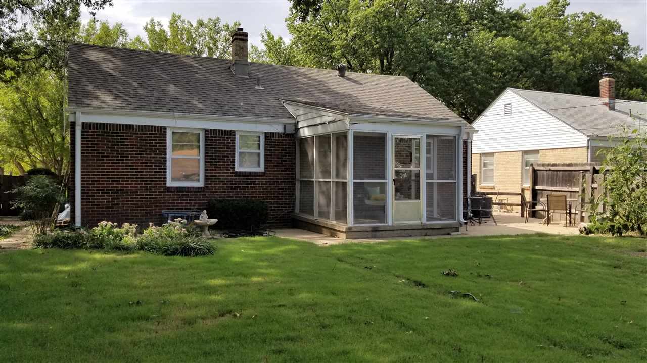 - Description: Adorable, move in ready, two bedroom, one bath, one car attached garage, all brick ranch home on a corner lot. Pretty much sums it up but there is more. Covered front porch, screened in back patio, a work shop style shed plus a gardening shed in the back yard with a potting bench on the south side. Mature landscaping with new Bermuda sod in most of the backyard. Hardwood floors in the living room, dining room and bedrooms. Full basement with built in bar, and book shelves in the finished family room. Additional finished room. Laundry is in the basement with a chute from the bathroom. Washer, dryer, refrigerator, stove and microwave all stay with the house. Curtains do not transfer but the blinds do. Show all description