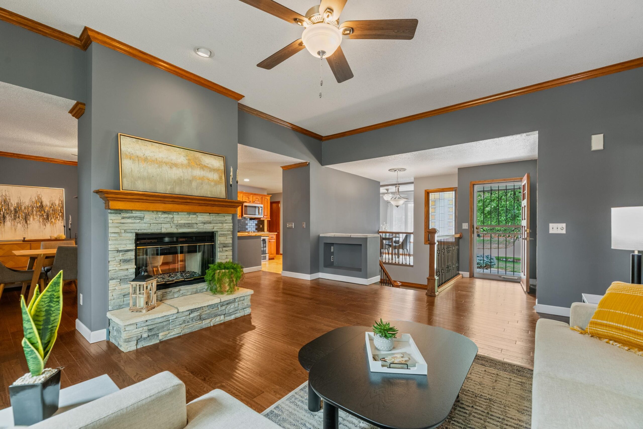 - Description: Looking for a well maintained and cared for home? This is your chance! With just under 2700 square feet of living space...there is still room for more. Basement has over 800 square feet of storage. So let your imagination go! Main floor boasts hardwood floors in living room and dining room. A two-way fireplace in the living/dining area divides the space. Just off the dining room is a covered patio for easy summer entertainment. Kitchen features granite countertops with a lot of cabinets for storage. For those casual moments the kitchen also features a breakfast nook for dining. Large bedrooms is one of the really nice features of this home...plenty of room! Master on-suite features tub, shower and double sinks, granite counters, heated floor and large walk-in closet. Nice size main floor laundry is a plus. Let move on down to the basement where we have a large family room, wet bar, mini fridge and brand-new carpet throughout the finished area. Our 4th bedroom and 3rd bath makes for a great guest area or space for the family to grow! Home features a impact resistant roof, 50 gal hot water heater and radon mitigation system has been installed. Show all description
