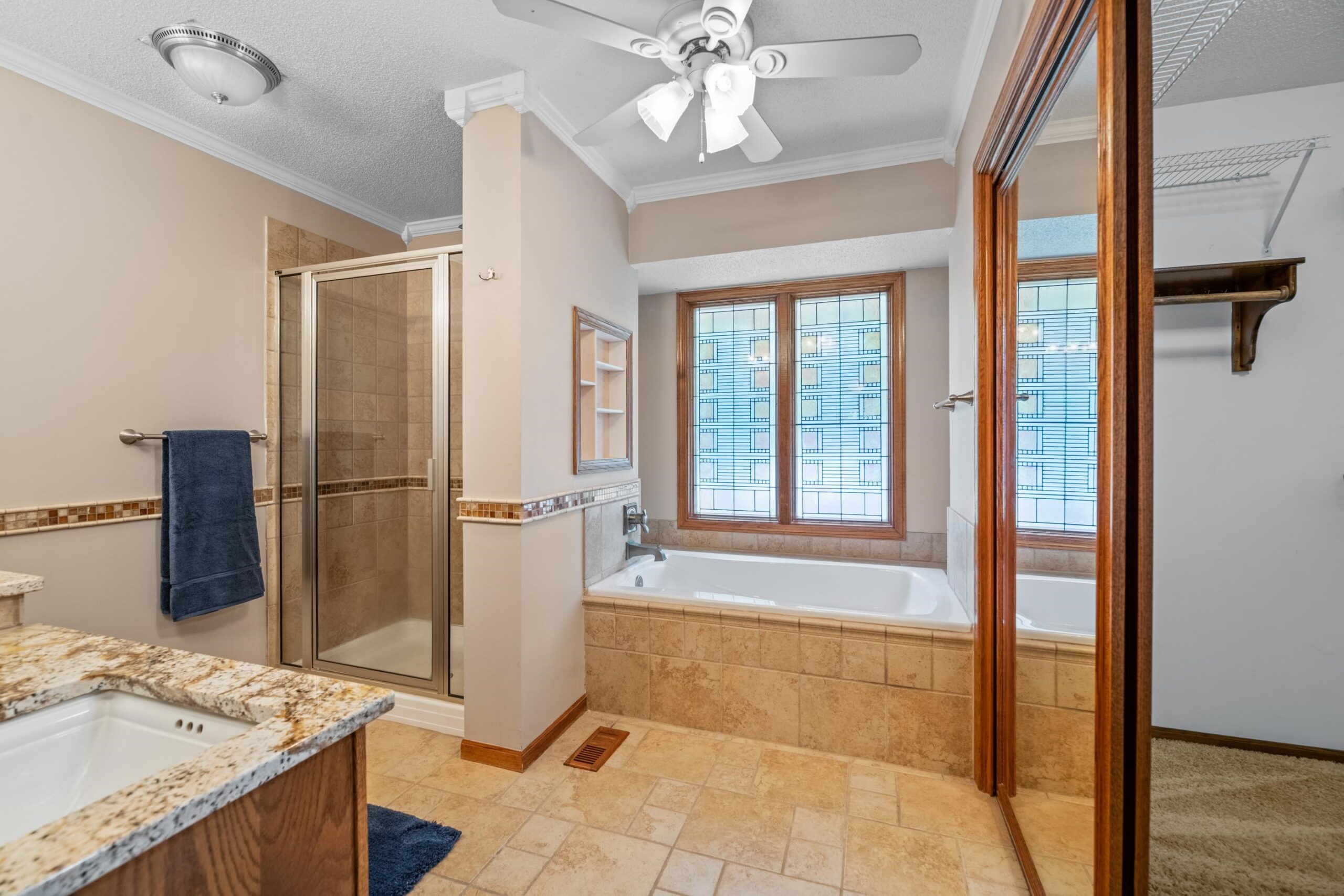 - Master Bedroom: Master Bdrm on Main Level, Sep. Tub/Shower/Mstr Bdrm, Two Sinks, Granite Counters, Tile Counters