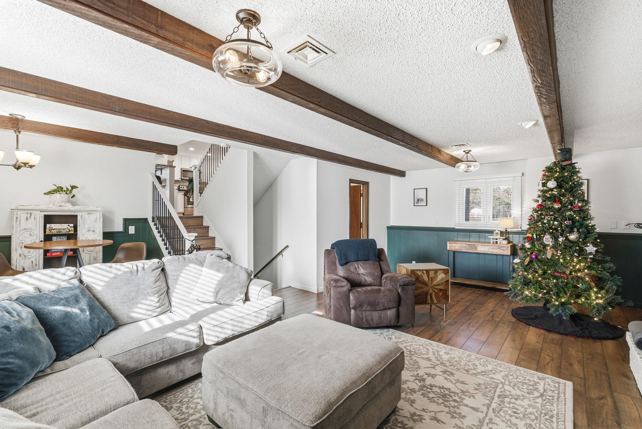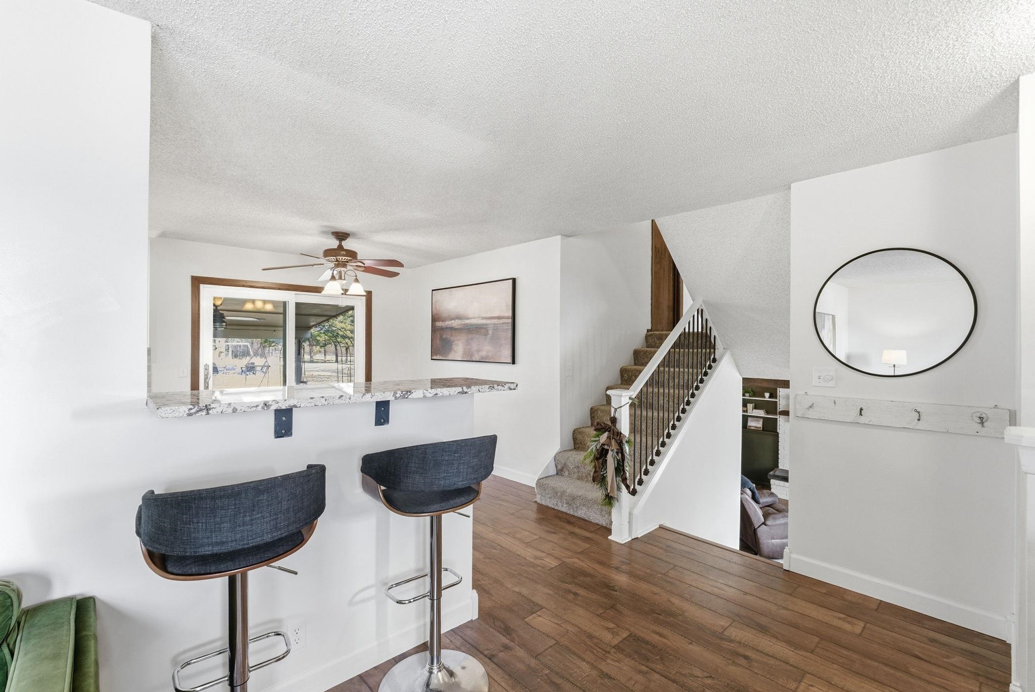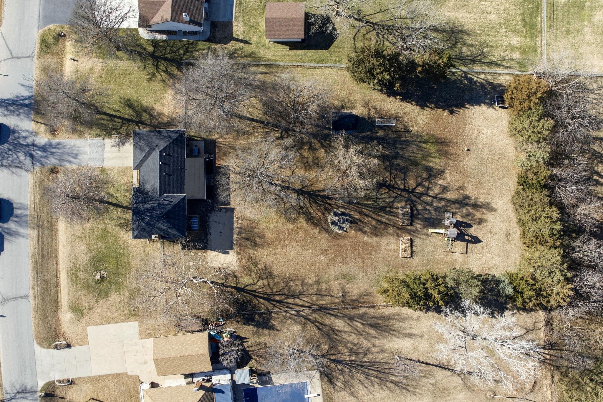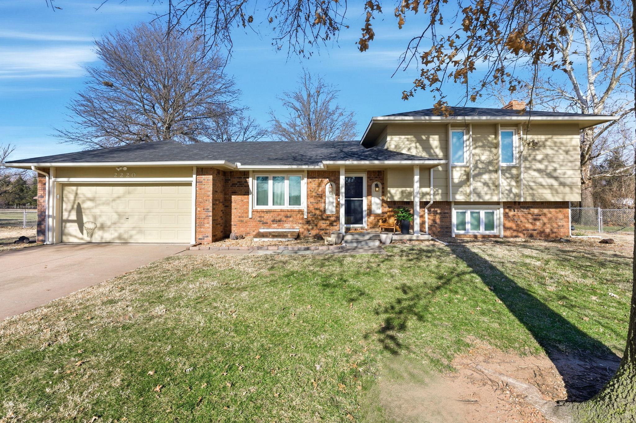 - Description: Just minutes from K-96 and I-235, this quad-level home sits on a spacious 1.09-acre lot with a Wichita address and Valley Center schools, offering a rare combination of convenience and privacy. The 1, 904 sqft home offers four bedrooms, two bathrooms, two separate living areas, and a two-car attached garage. The main level living room flows into a functional kitchen featuring granite countertops, ample cabinet space, and an eat-in bar, along with dedicated dining space. The living spaces have been updated with a modern aesthetic, and the lower-level family room features exposed wood beams and a cozy fireplace, creating a warm and inviting space for everyday living or entertaining. The primary bedroom includes its own private balcony overlooking the backyard, providing a quiet retreat with views of the property. Surrounded by mature trees, the fenced backyard provides a peaceful, country-style setting while remaining close to schools, shopping, and dining in Valley Center. Outdoor features include a large covered patio, fire pit, playground equipment, an above-ground pool, and a storage shed for lawn and pool equipment. With ample room to enjoy outdoor activities and a setting that feels both private and accessible, this property offers the best of both worlds. Show all description