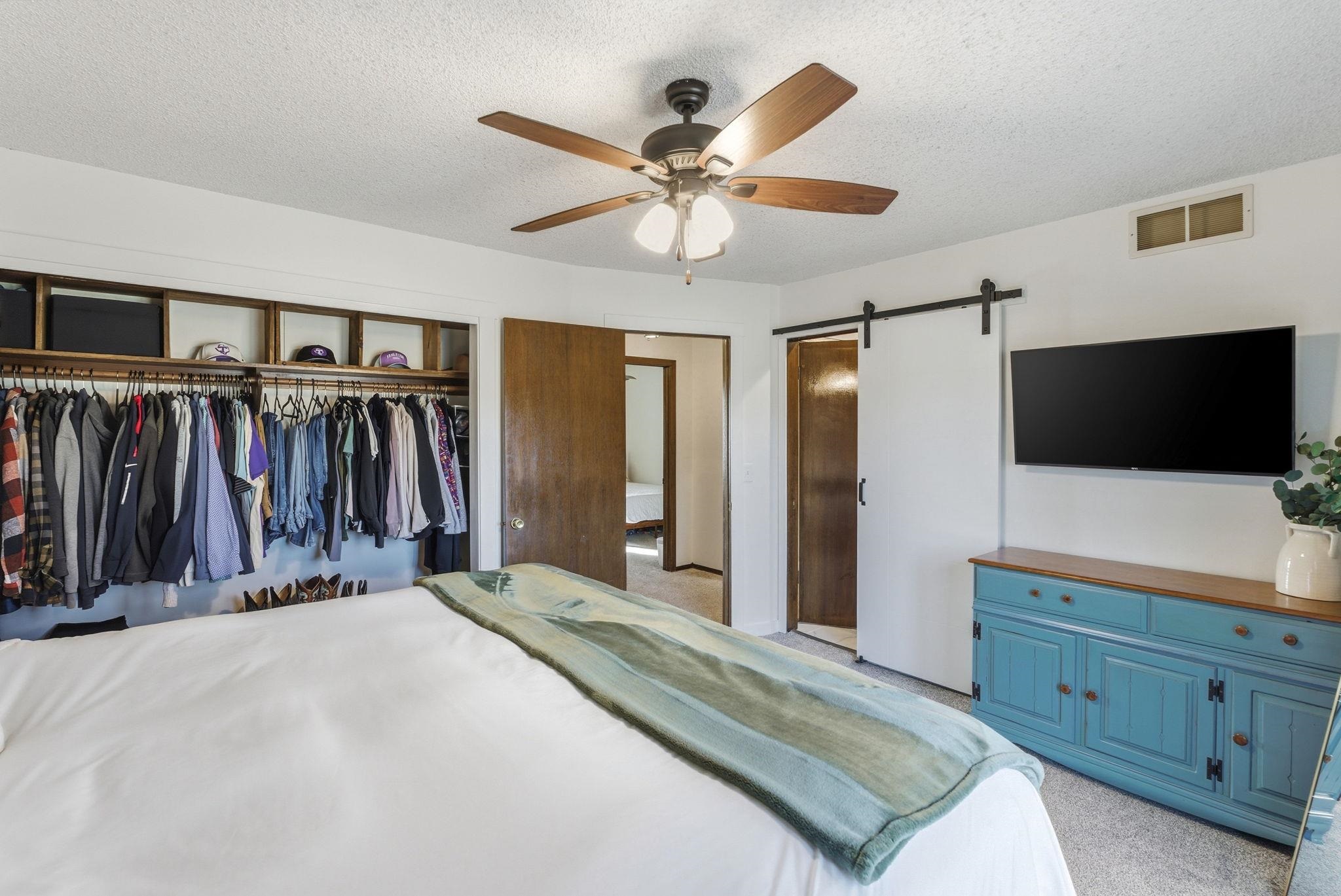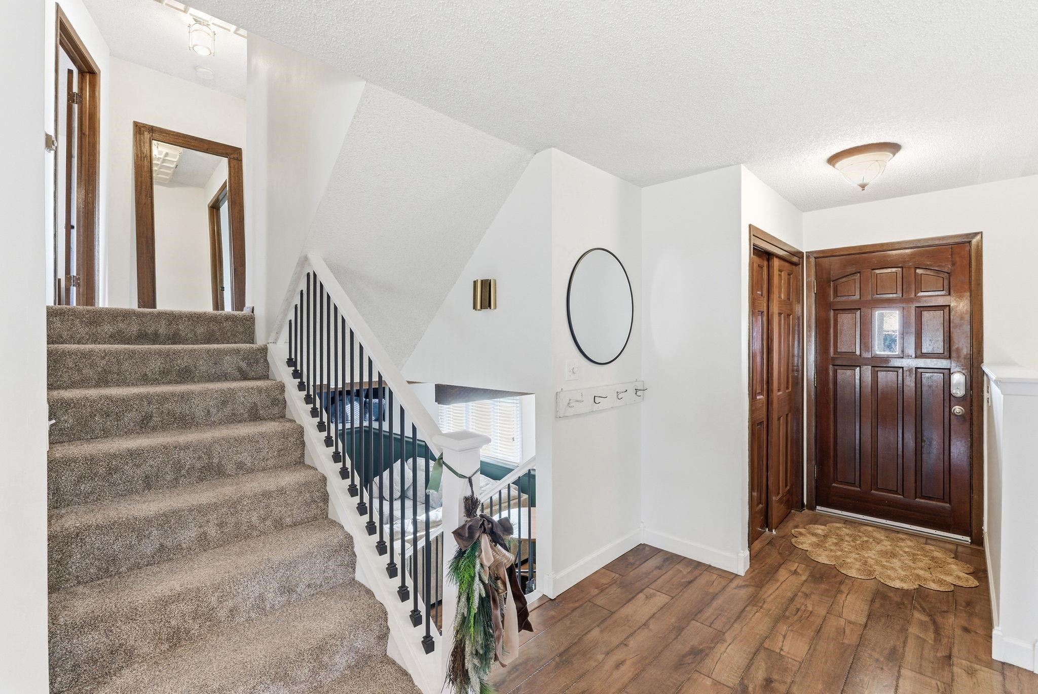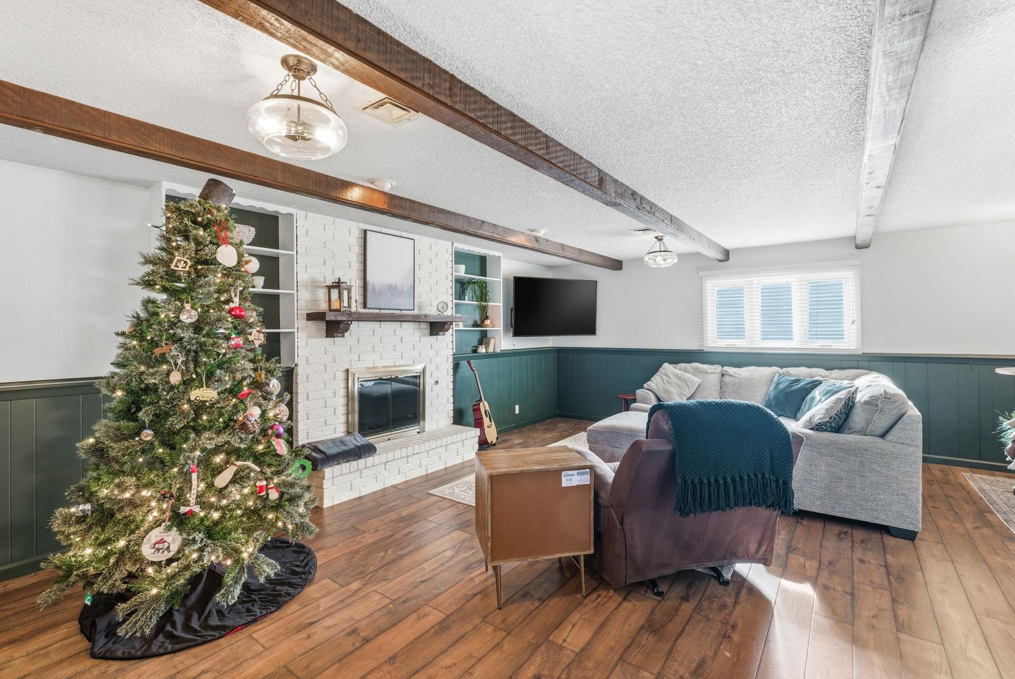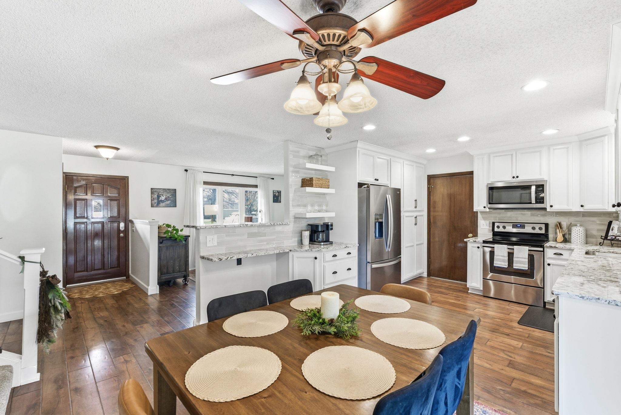 - Description: Just minutes from K-96 and I-235, this quad-level home sits on a spacious 1.09-acre lot with a Wichita address and Valley Center schools, offering a rare combination of convenience and privacy. The 1, 904 sqft home offers four bedrooms, two bathrooms, two separate living areas, and a two-car attached garage. The main level living room flows into a functional kitchen featuring granite countertops, ample cabinet space, and an eat-in bar, along with dedicated dining space. The living spaces have been updated with a modern aesthetic, and the lower-level family room features exposed wood beams and a cozy fireplace, creating a warm and inviting space for everyday living or entertaining. The primary bedroom includes its own private balcony overlooking the backyard, providing a quiet retreat with views of the property. Surrounded by mature trees, the fenced backyard provides a peaceful, country-style setting while remaining close to schools, shopping, and dining in Valley Center. Outdoor features include a large covered patio, fire pit, playground equipment, an above-ground pool, and a storage shed for lawn and pool equipment. With ample room to enjoy outdoor activities and a setting that feels both private and accessible, this property offers the best of both worlds. Show all description