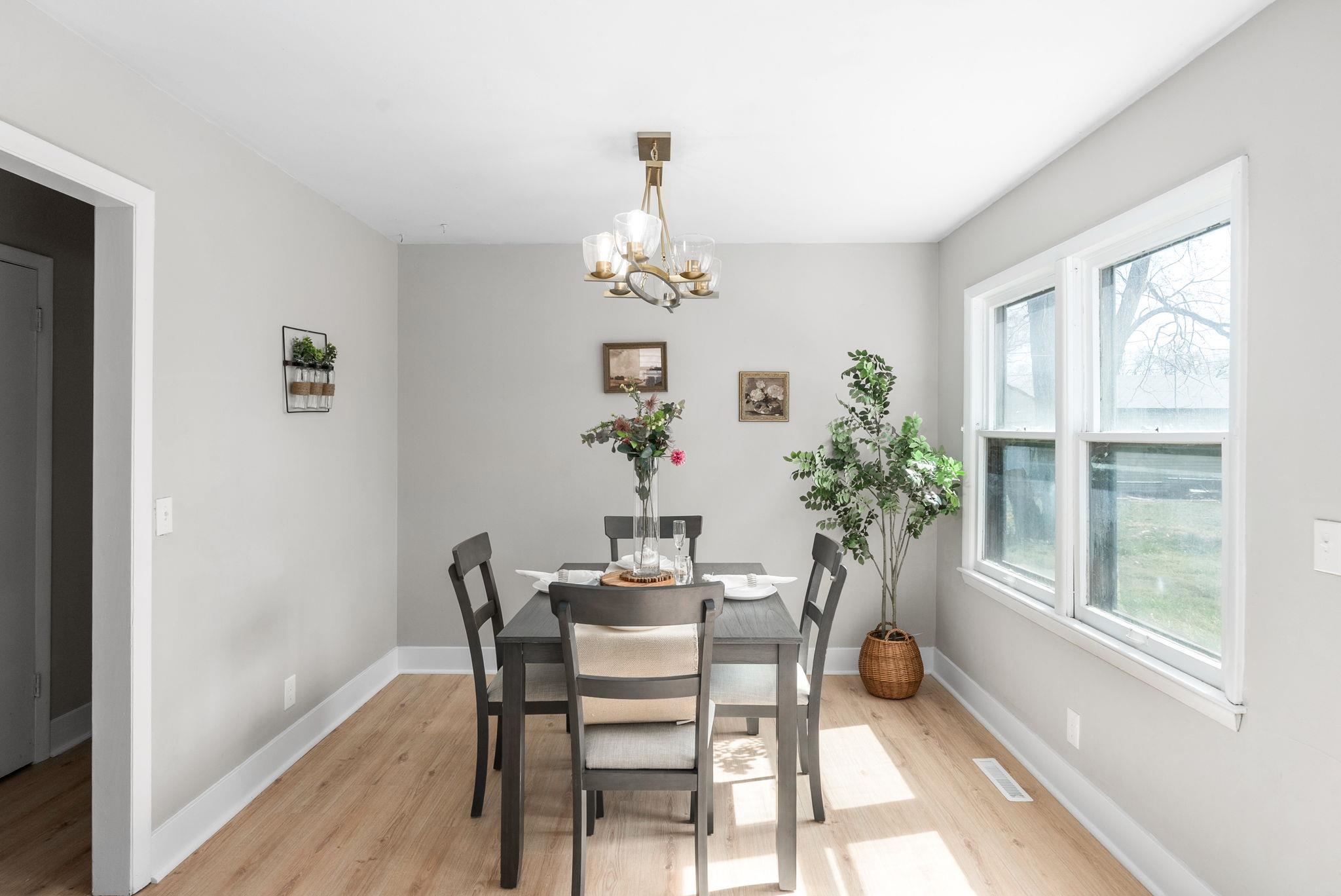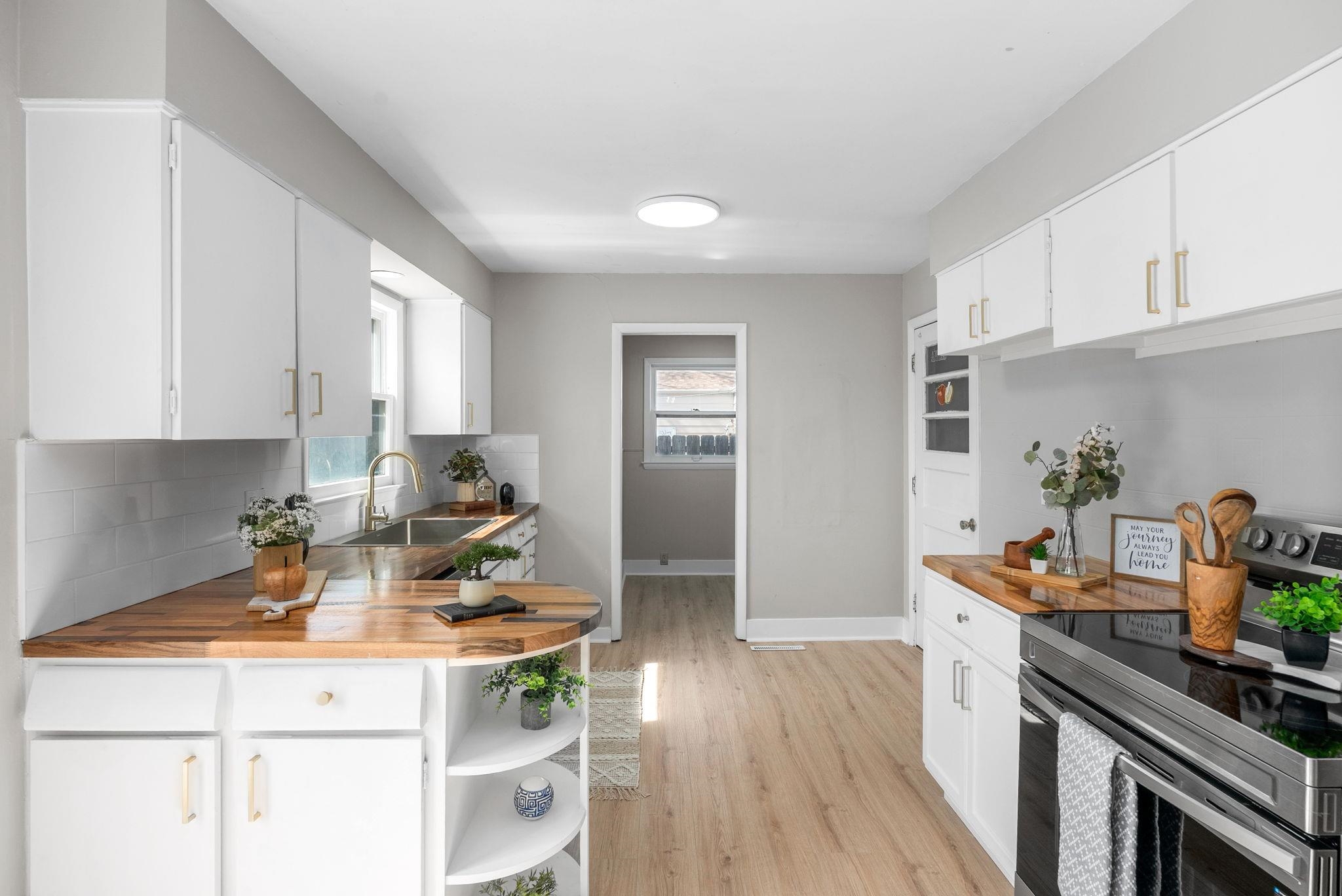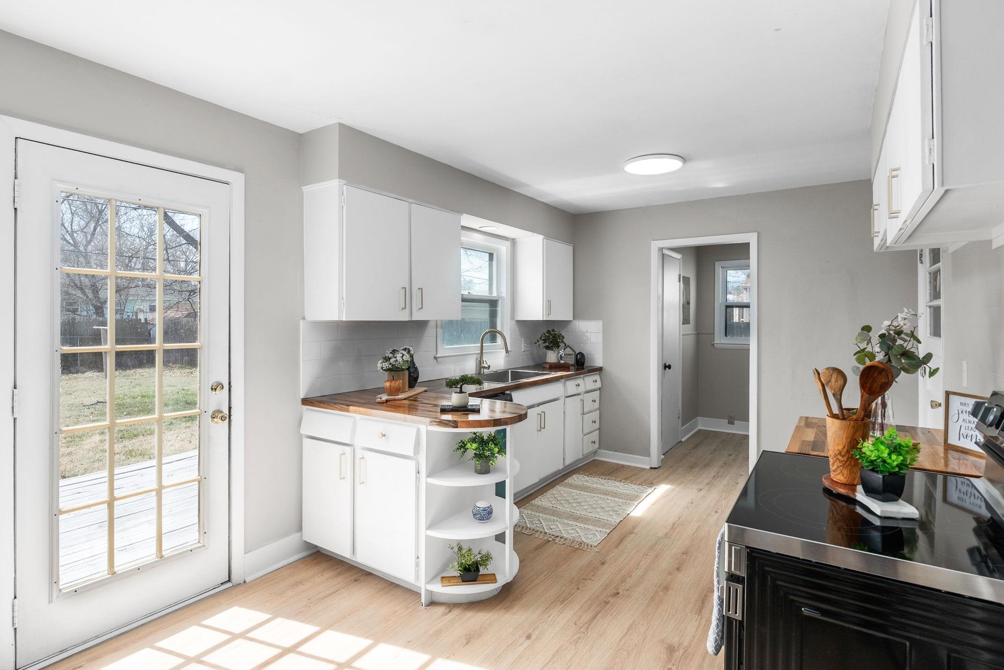 - Description: Step inside this beautifully updated 3-bedroom, 1.5-bath, 1-car garage home and enjoy a perfect blend of style and functionality. The inviting living space features gorgeous blonde wood flooring, fresh neutral paint, and crisp white trim, creating a bright and modern feel throughout. The updated kitchen is both stylish and practical, featuring butcher block countertops, white cabinetry, gold fixtures, stainless steel appliances, and a window over the sink that fills the space with natural light. Just off the kitchen, the dining area provides easy access to the backyard, where a wooden deck offers the perfect spot for relaxing or entertaining this summer. Down the hall, you’ll find three comfortable bedrooms with brand-new carpet, as well as an updated full bath with a new white vanity, modern fixtures, and a shower/tub combo. A separate laundry room adds extra convenience and includes access to the half bath—perfect for guests or busy mornings. Storage is plentiful with a walk-in coat closet near the entry, a linen closet in the hallway, and a spacious storage room in the attached garage. Outside, the home features low-maintenance vinyl siding, offering durability and easy upkeep. Located within a mile of the South YMCA, multiple grocery stores, and a variety of restaurants, this home also offers easy highway access and is just minutes from O.J. Watson Park, where you can enjoy fishing, pedal boats, a train ride, pony rides, mini golf, a playground, and scenic walking trails. Don’t miss your chance to see this move-in-ready home—schedule your showing today! Show all description