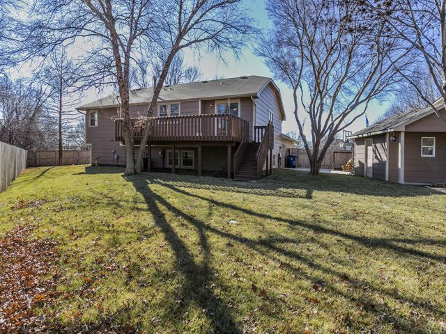 - Description: YOUR SEARCH ENDS HERE...FABULOUS DERBY HOME ON NEARLY 1/3 ACRE WOODED CUL-DE-SAC LOT WITH NEW PRIVACY FENCE (STEEL POSTS), LANDSCAPING, SOD & SPRINKLER SYSTEM! ALSO NEW: THIRD CAR DRIVEWAY EXPANSION ALLOWS LARGE GATED ACCESS TO CONCRETE PAD IN BACK FOR PARKING THAT BOAT/RV OR JUST GREAT FOR PATIO PLAYTIME! SIDEWALK APPROACH WITH CEDAR POSTS NEW AS WELL FOR A FANTASTIC FIRST IMPRESSION! INSIDE AN OPEN FLOOR PLAN WITH NEUTRAL DECOR, S/S APPLIANCES, REPLACEMENT WINDOWS & SLIDER, WOOD-BURNING FIREPLACE WITH GAS STARTER, HUGE FAMILY ROOM WITH PELLET STOVE WITH BRICK SURROUND & BUILT-IN BOOKCASES/STORAGE, UNFINISHED 5TH BEDROOM, LOTS OF NICE CUSTOM TOUCHES! NOW WALK OUTSIDE ON THE GI-NORMOUS DECK OVERLOOKING THE VAST BACKYARD THAT INCLUDES A CUSTOM-BUILT "DOLLHOUSE" SHED, WOODEN SWING-SET/FORT AND SANDBOX THAT REMAIN. IN ADDITION THE GARAGE IS OVER-SIZED WITH PLENTY OF ROOM FOR STORAGE/WORK AREA, INCLUDES A KEYPAD ENTRY AND ADDITIONAL SIDE-YARD ENTRY DOOR. 4 YEAR-OLD FURNACE & WATER HEATER - THIS HOME IS A MUST-SEE! Show all description