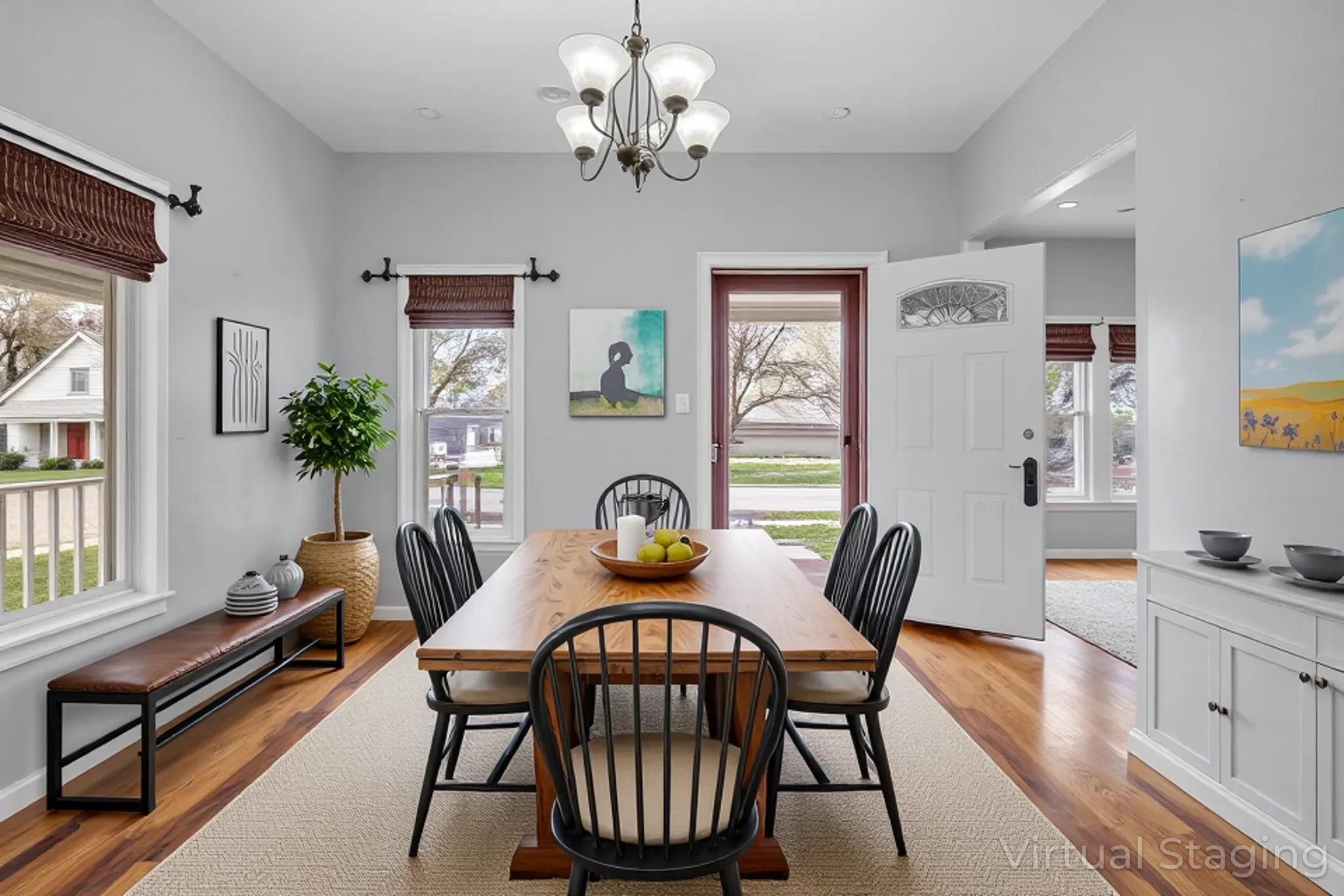 - Description: Welcome Home! This charming 1.5-story bungalow is nestled on a sprawling corner lot, offering ample space both indoors and out. The inviting wrap-around porch beckons you to relax and enjoy the peaceful surroundings, while the expansive fenced-in backyard, complete with a large deck, provides the perfect setting for outdoor entertaining, gardening, or simply unwinding in the fresh air. Step inside to discover a wealth of original hardwood floors that exude warmth and character. The generously proportioned rooms offer plenty of space for comfortable living, while the versatile loft area can be utilized for additional storage, a home office, a playroom, or any other purpose that suits your needs. This delightful home seamlessly blends classic charm with modern functionality, presenting a unique opportunity to create a personalized haven that truly reflects your lifestyle. Don't miss the chance to make this house your home and experience the joys of comfortable, convenient living in a highly desirable community! Show all description