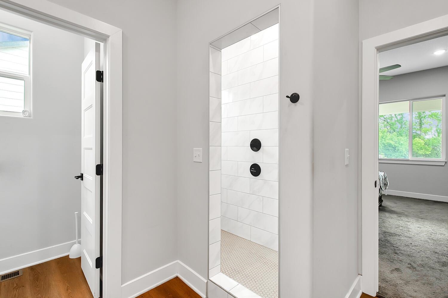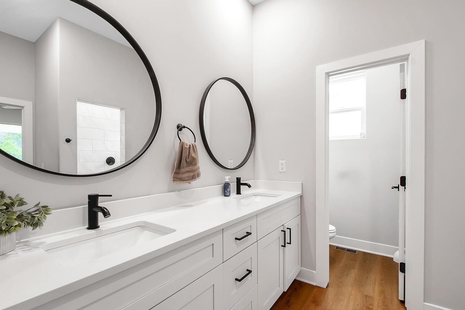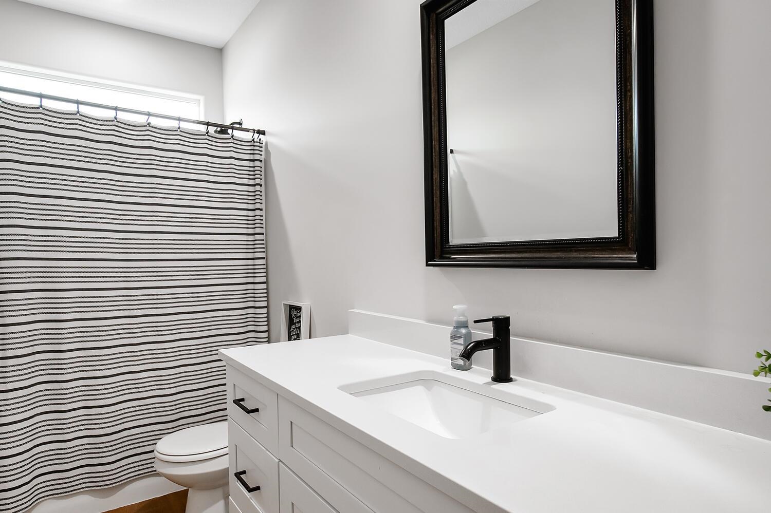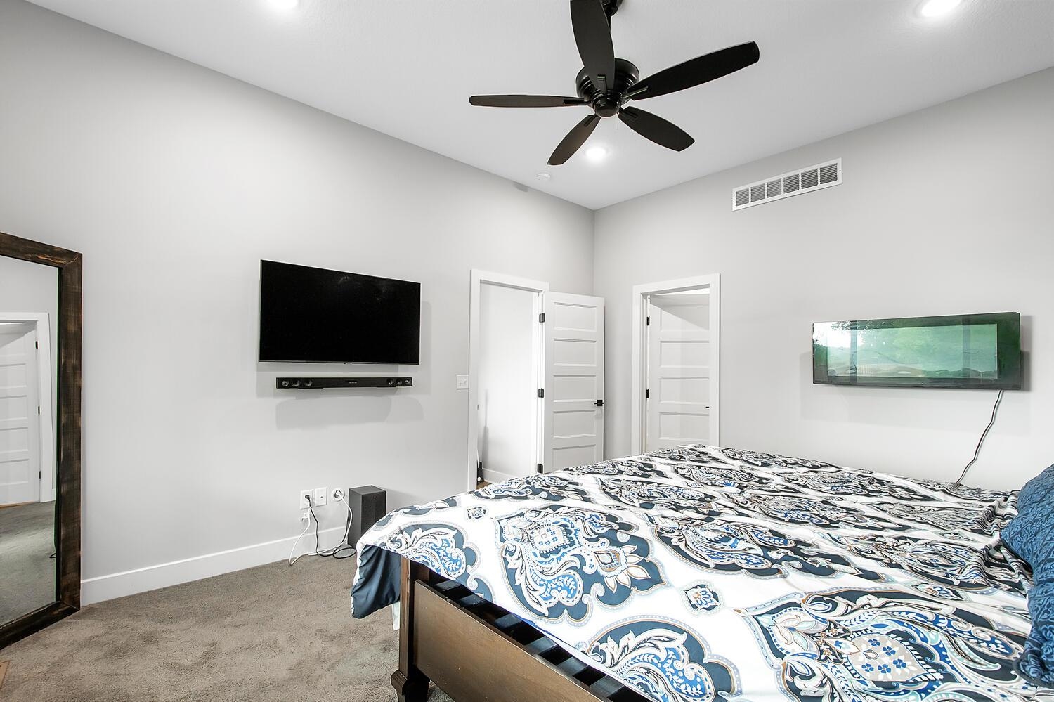 - Master Bedroom: Master Bdrm on Main Level, Split Bedroom Plan, Shower/Master Bedroom, Two Sinks, Quartz Counters