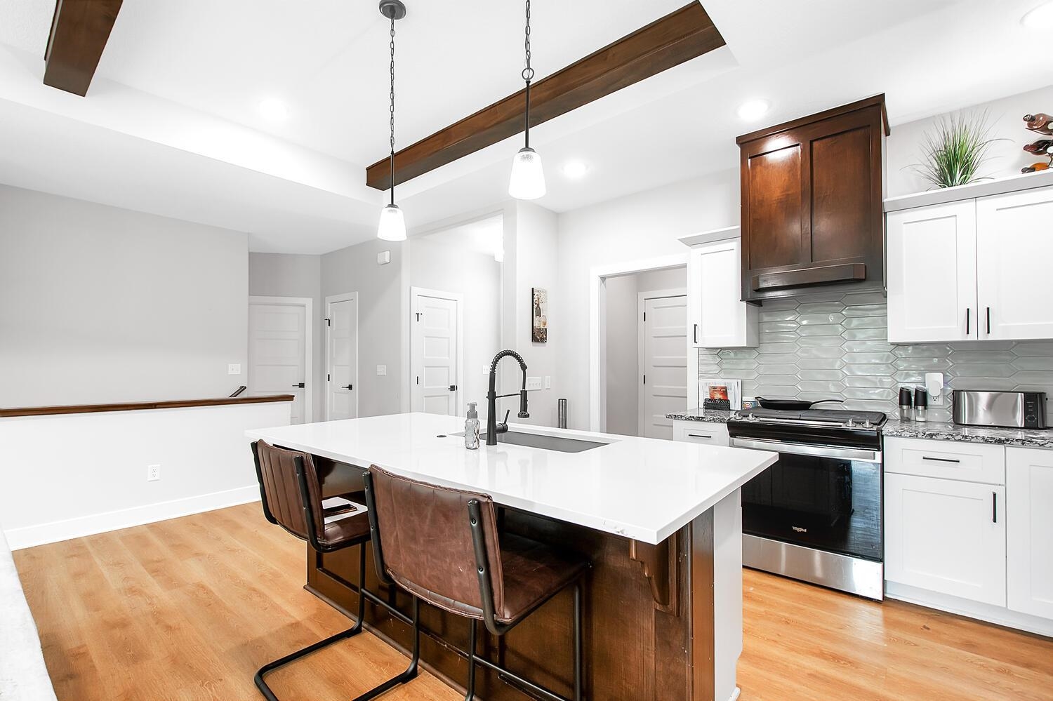 - Description: Stunning 5-Bedroom Home in Sought-After Tuscany – No HOA Fees! Welcome to this beautifully designed 5-bedroom, 3-bathroom home nestled in the desirable Tuscany Phase 3 neighborhood of Andover, KS. With no HOA fees and the peace of mind of neighborhood Covenants & Restrictions, this property offers the perfect balance of freedom and community standards. Situated on two spacious lots, this home provides extra outdoor space for relaxation, entertaining, or future possibilities—an added bonus in an already incredible location. Step inside to an open-concept main floor that boasts wood-stained ceiling accent beams, luxury vinyl plank (LVP) flooring, and a cozy electric fireplace, creating a warm and welcoming living space. The gourmet kitchen features sleek quartz countertops, a spacious walk-in pantry, and a convenient drop zone just off the garage. A separate laundry room adds extra function and ease to everyday living. The main floor includes 3 bedrooms and 2 full baths, including a luxurious master suite with a huge walk-in closet, walk-in tile shower, and his and her quartz vanities—a perfect retreat after a long day. The fully finished walkout basement offers even more room to relax or entertain with a large rec room, a stylish wet bar featuring granite countertops and floating shelves, a second full kitchen with its own huge pantry, 2 additional bedrooms, and a full bathroom—perfect for guests, multi-generational living, or rental potential. Located in the Andover School District and close to parks, shopping, and dining, this home is a must-see! Don’t miss your chance to own this gorgeous Stone Creek property Schedule your private tour today! Show all description