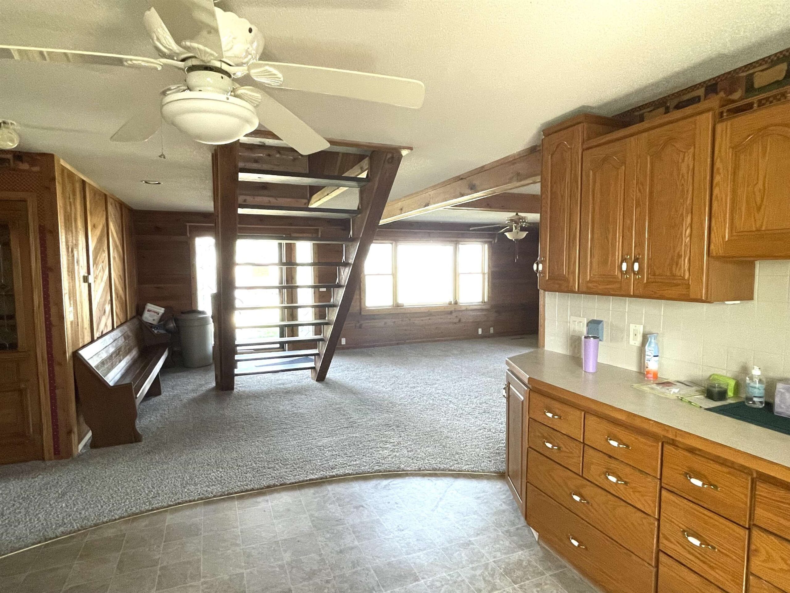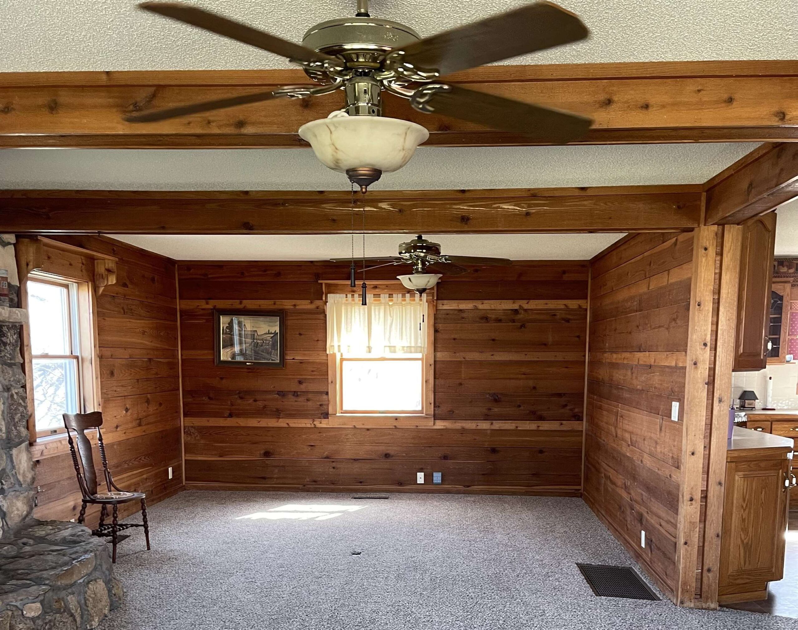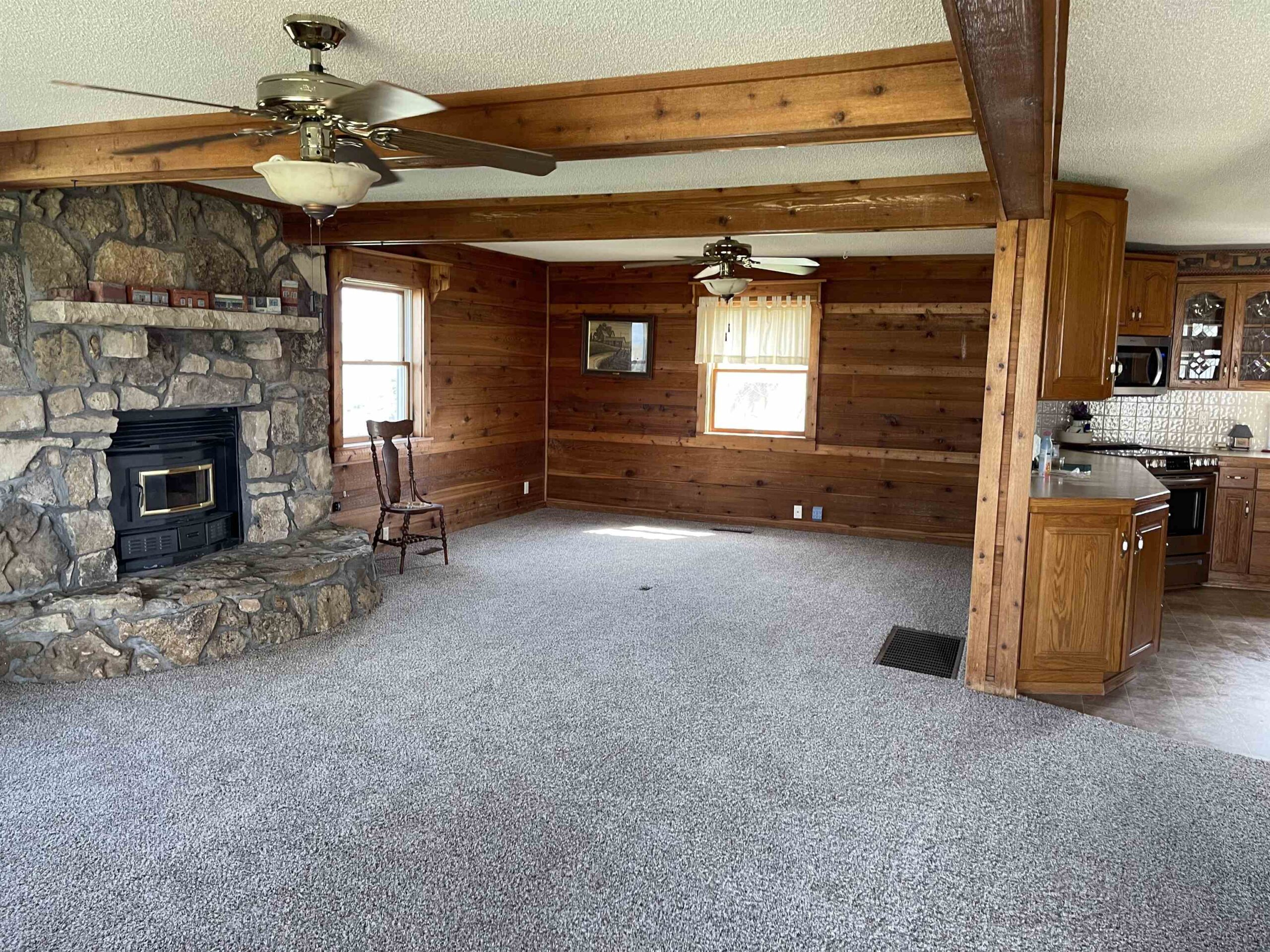 - Description: 34 +/- acres Beautiful barn style home located in a quiet country setting. This home has 2 bedrooms plus a office space, 2 full baths, Open floor plan with open kitchen. full unfinished walk out basement. New carpet through out. Also there is a 32x70 shed 1/2 of it has corrals for livestock, 1/2 for parking. Small pond, native grass. Long private driveway. Rural Water, Septic, Propane. Don't miss this opportunity to own a beautiful home in the country. Show all description