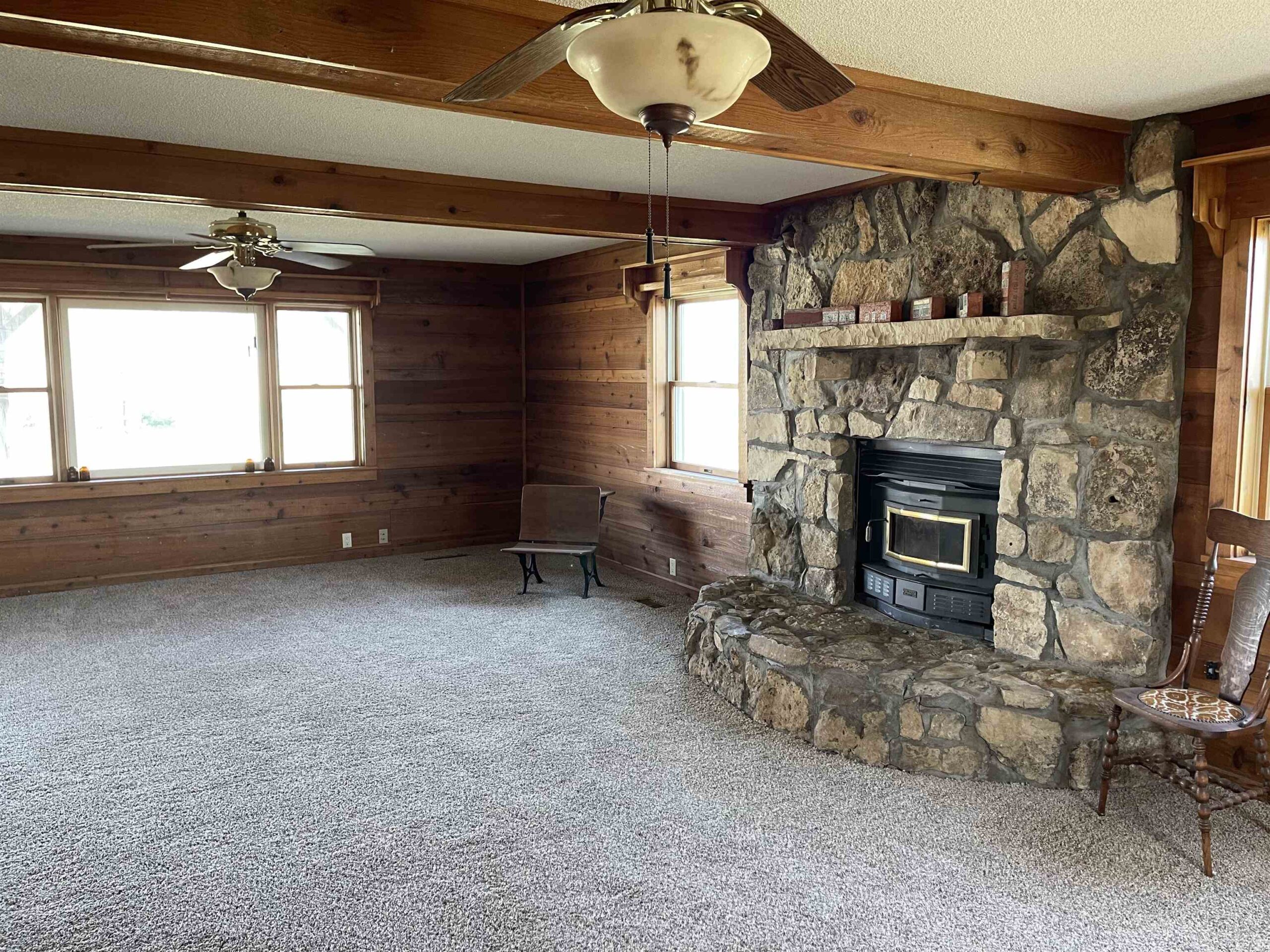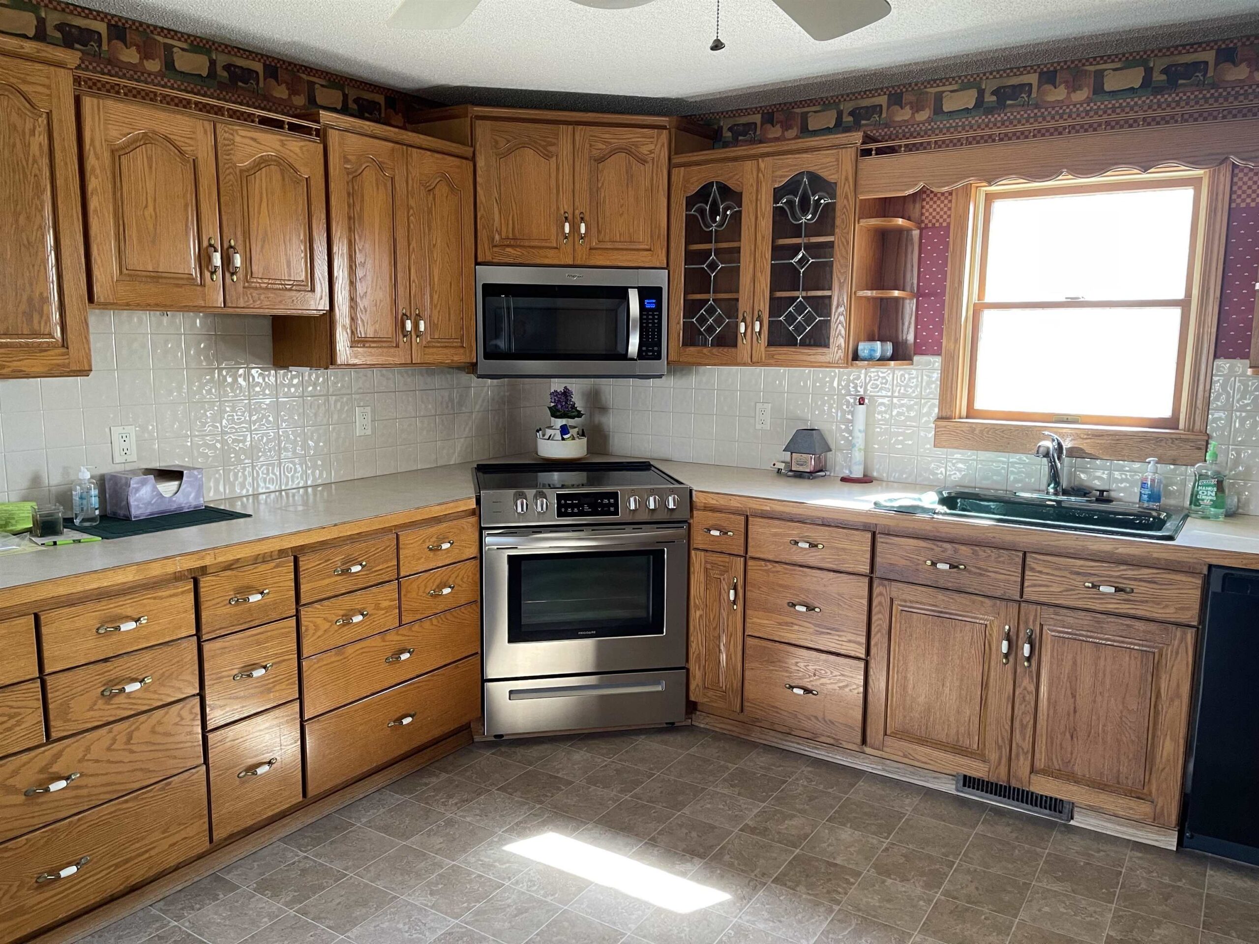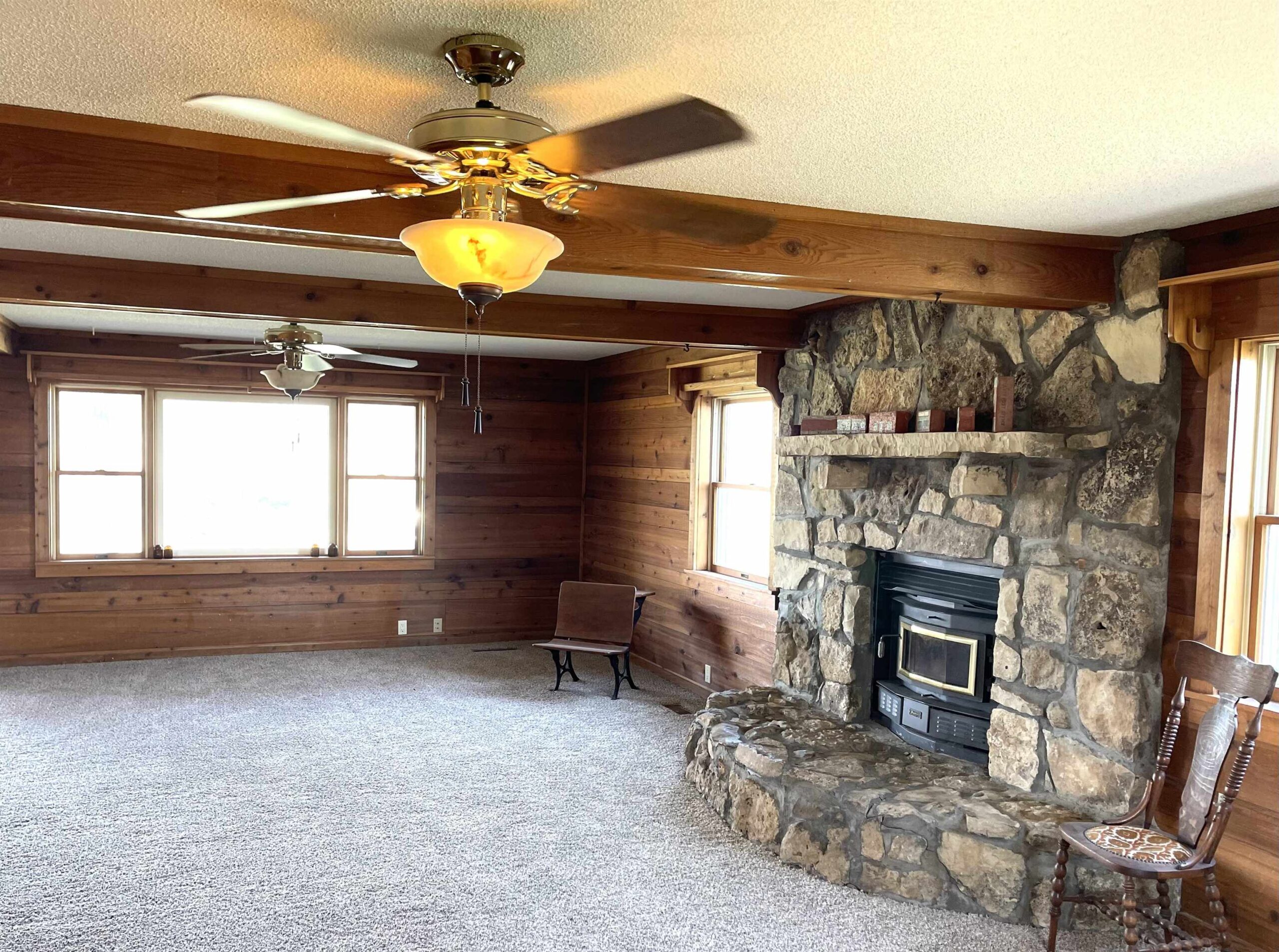 - Description: 34 +/- acres Beautiful barn style home located in a quiet country setting. This home has 2 bedrooms plus a office space, 2 full baths, Open floor plan with open kitchen. full unfinished walk out basement. New carpet through out. Also there is a 32x70 shed 1/2 of it has corrals for livestock, 1/2 for parking. Small pond, native grass. Long private driveway. Rural Water, Septic, Propane. Don't miss this opportunity to own a beautiful home in the country. Show all description