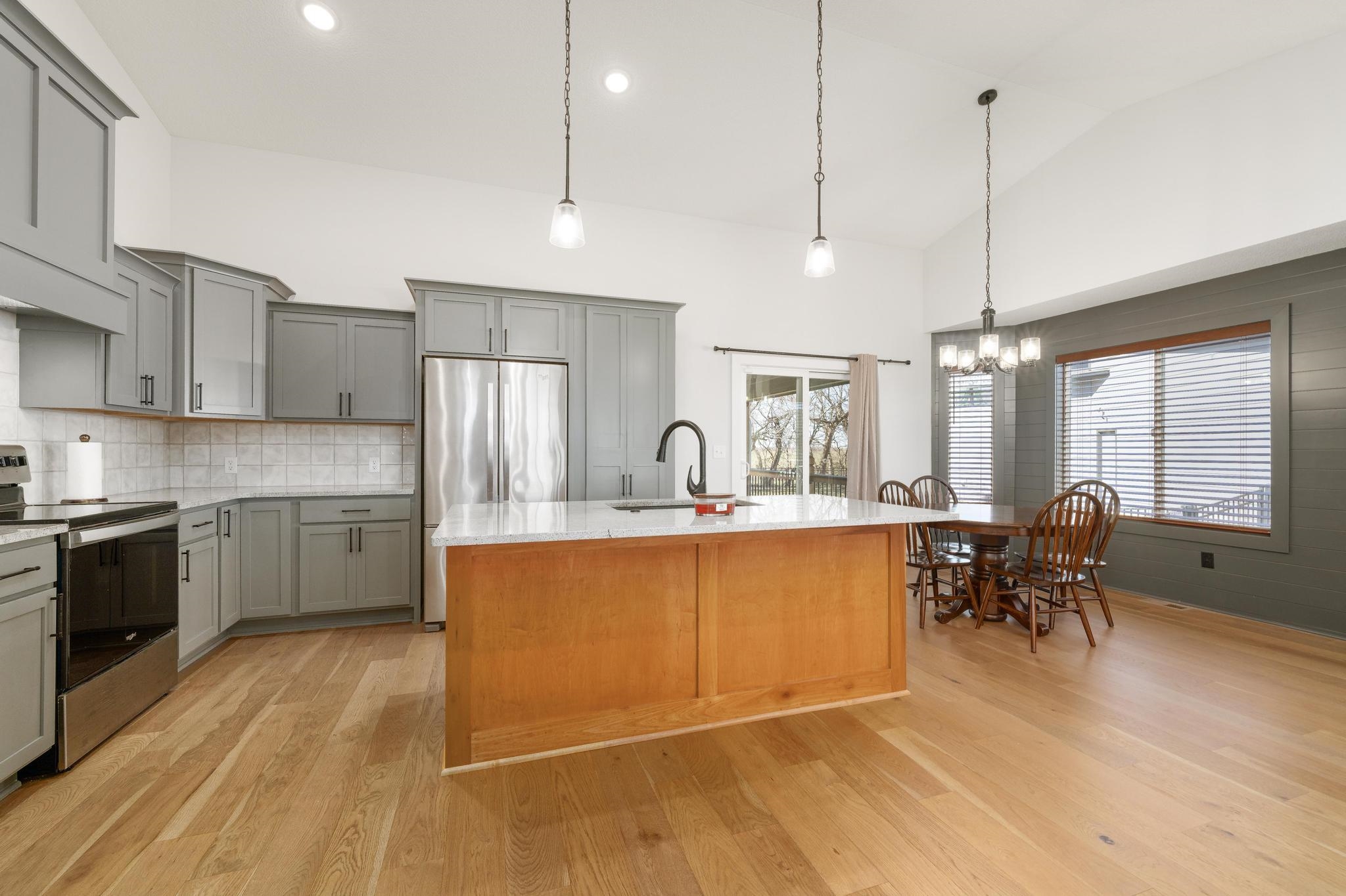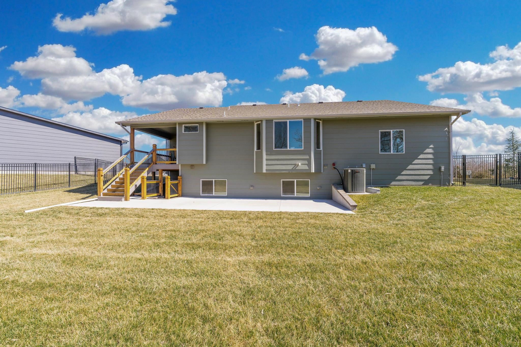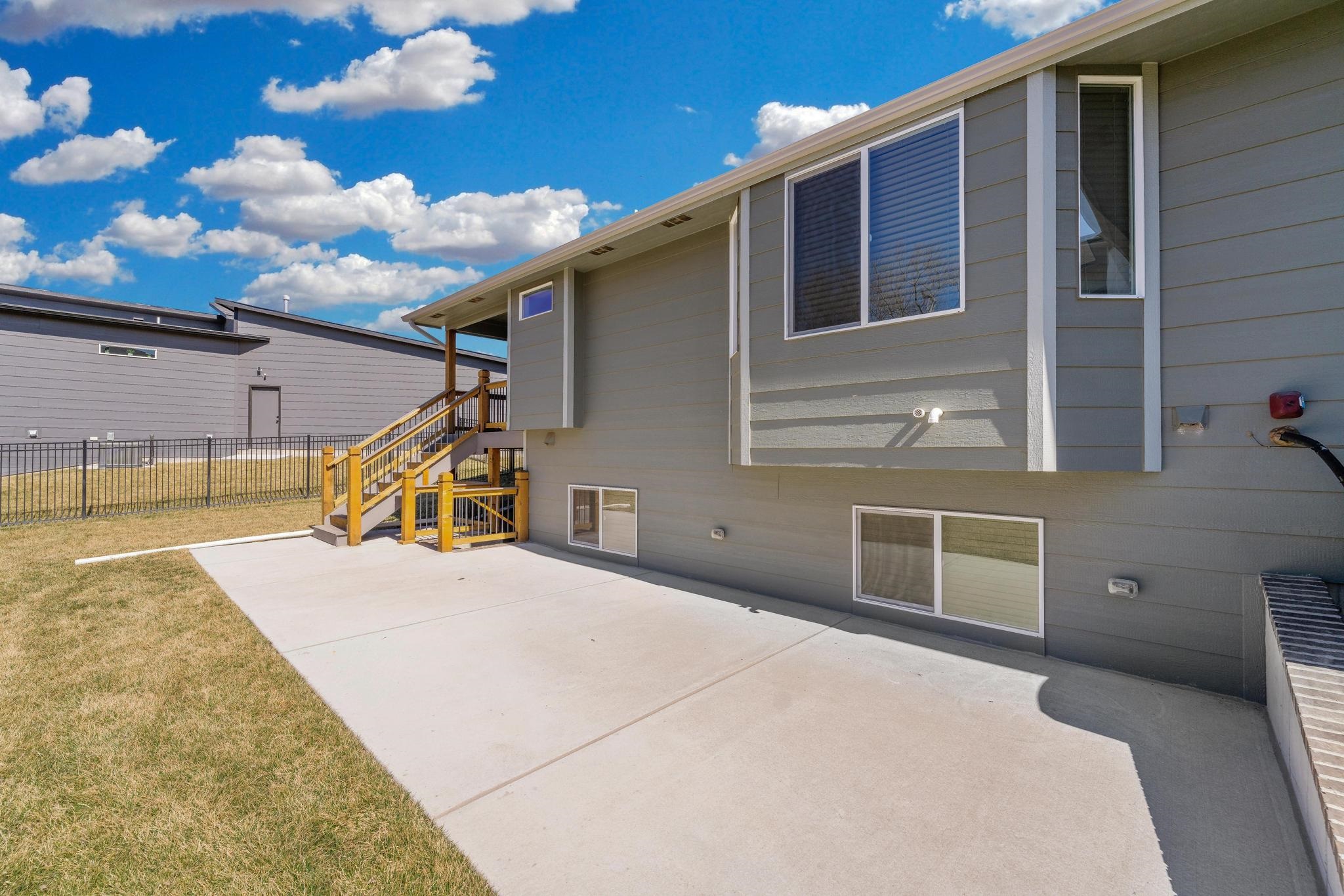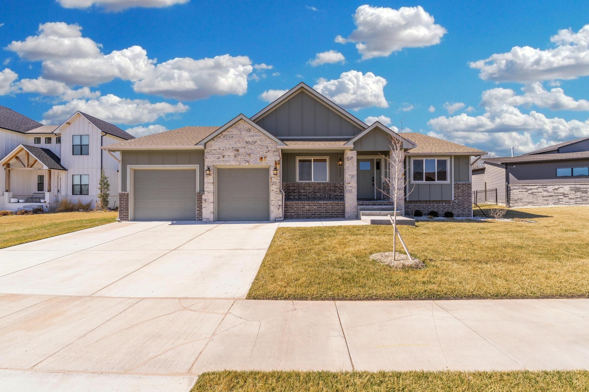 - Description: It's a THREE Car Garage....and its more than just a place to park — it's the perfect spot for a man cave, workshop, or storage for motorcycles, boats, and all your favorite toys. Whether you're a hobbyist or need extra space for all your gear, this garage has what you're looking for. And if you've been struggling to find a home that will fit your truck...YES, this one will fit your extended truck bed....easily! Step inside, and this stunning, like-new 4 bedroom, 3 bath home with a walkout basement will wow you. Built just a few years ago, this immaculate home gives you all the new construction feels, without the new construction price tag. Your new home boasts an open, airy layout where the modern kitchen flows seamlessly into the living and dining areas, making it ideal for entertaining. The covered deck and huge patio are a perfect addition— ideal for relaxing evenings with a glass of wine or weekend gatherings and morning coffee. This delightful home has a master on the main, as well as a main floor laundry room, a walk-in pantry and custom blinds throughout. With contemporary finishes, abundant natural light, and versatile spaces, this home is truly move-in ready. But wait, there's more! The neighborhood features a swimming pool, soccer field, basketball, indoor and outdoor pickleball courts, walking paths, serene ponds and coveted Goddard schools! Don't miss your chance to make it yours! Show all description
