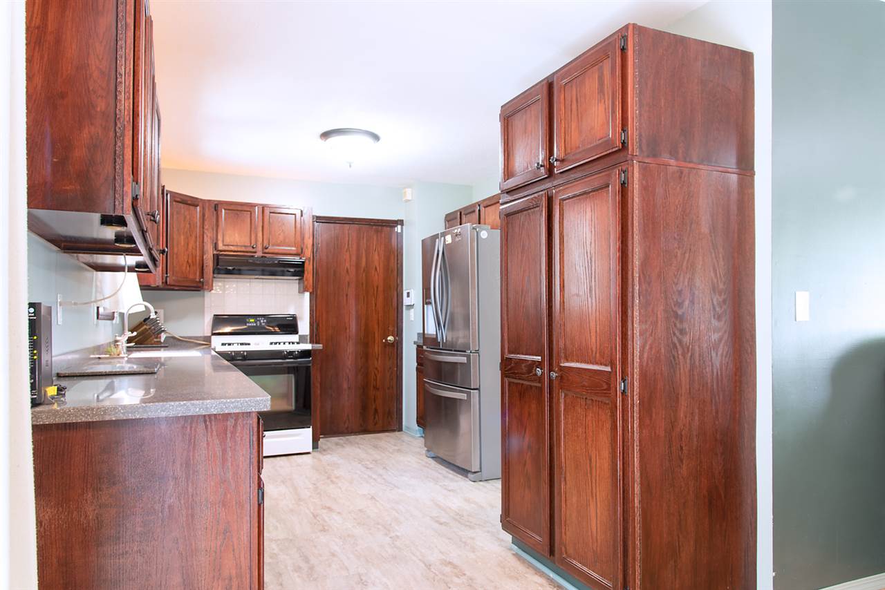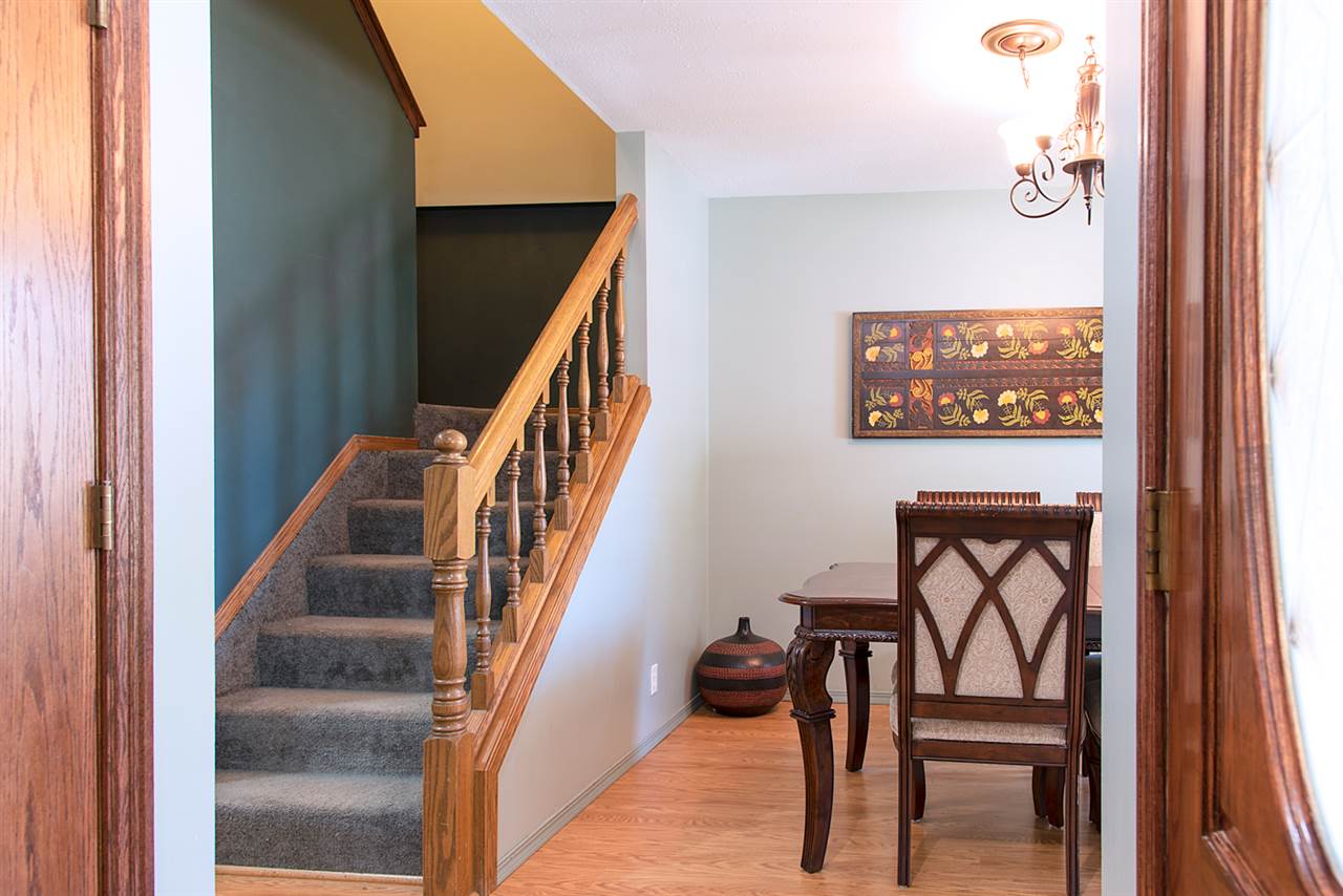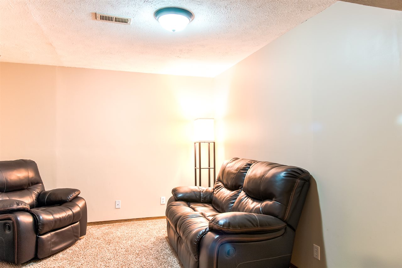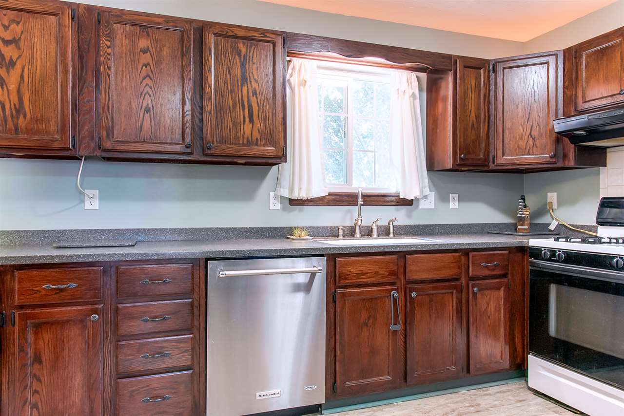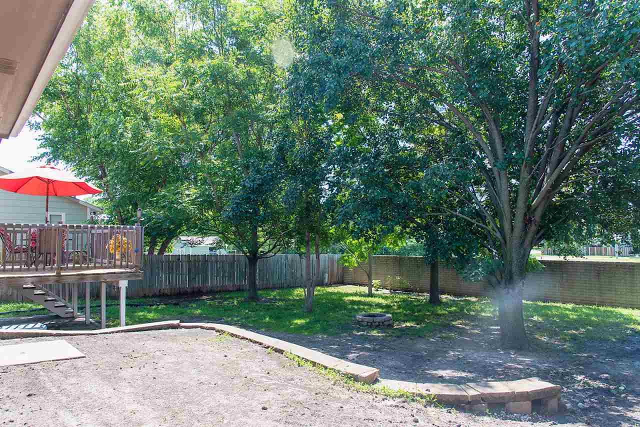 - Description: Lovely two-story home in Derby features 4-bedrooms plus office and 2.5-bathrooms. Living/dining combo with FIREPLACE + FORMAL DINING ROOM, roomy kitchen with plenty of cabinets (with slide-out shelves!), new luxury vinyl tile, and a PANTRY. Half-bath on main level. Laundry is a breeze with it being located on the upper level. Large master suite features vaulted ceiling, full bath and a walk-in closet. Other three bedrooms feature built-ins in the closet. Family room in basement with bedroom #4 PLUS office. 2-car attached garage. Privacy fenced backyard offers many trees and shade, fire pit, and oversized deck. Other recent updates: energy-efficient windows, dishwasher, all bathrooms have been updated along with luxury vinyl tile and new toilets too! Water heater only four years old, sump pump and foundation work done just this year. Peach cobbler awaits courtesy of your peach tree. And just a few doors down from neighborhood park and playground! Show all description
