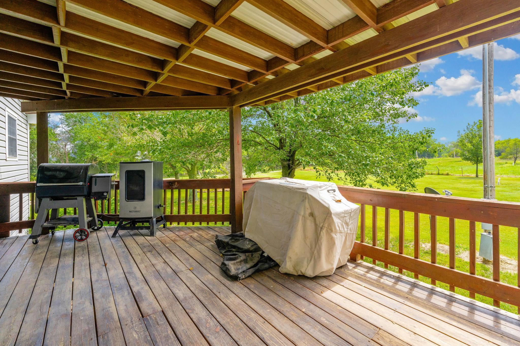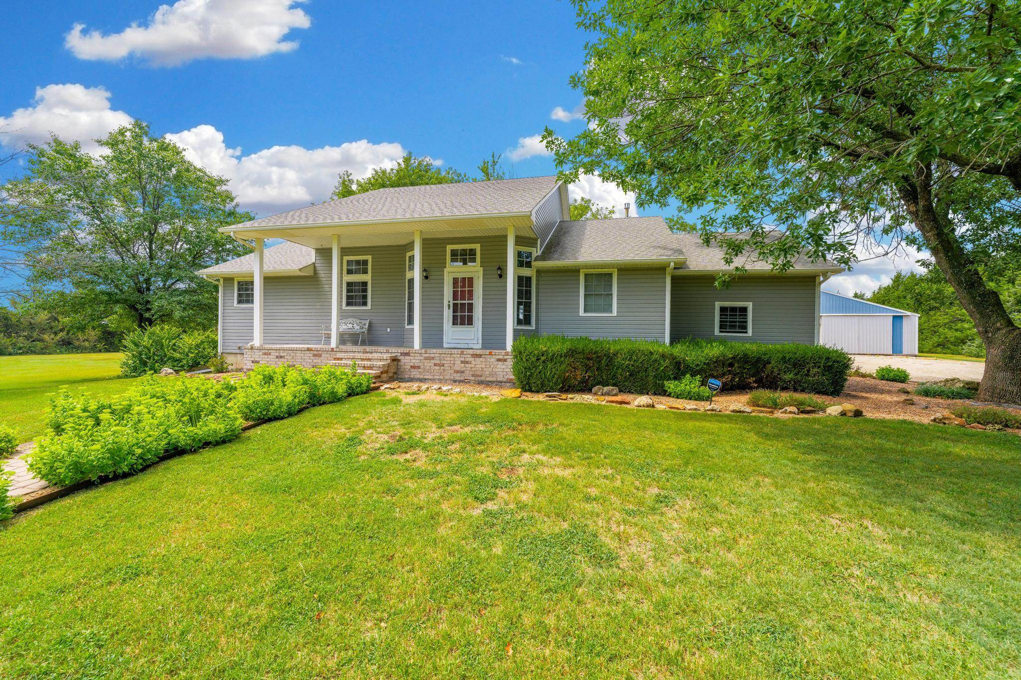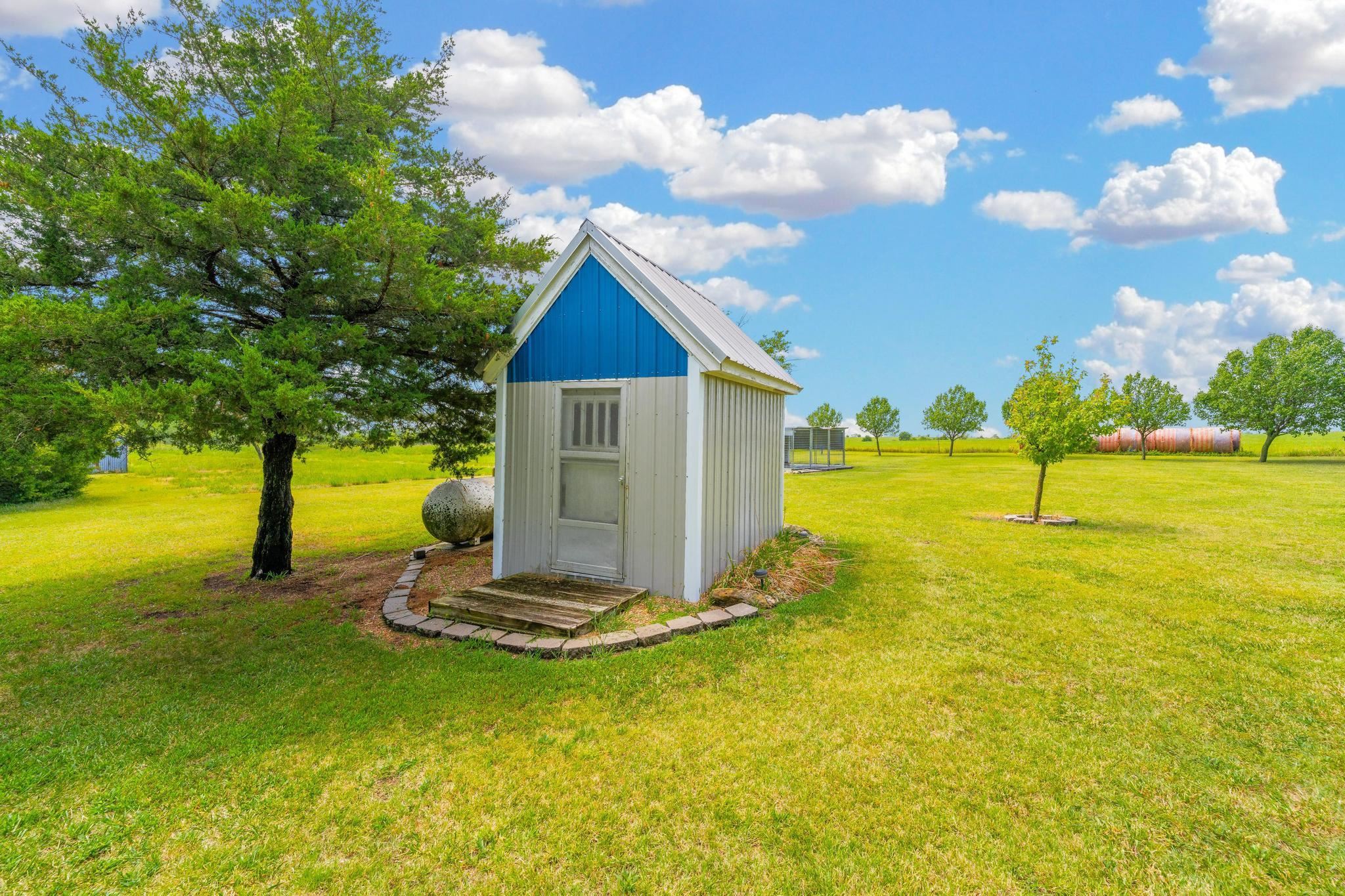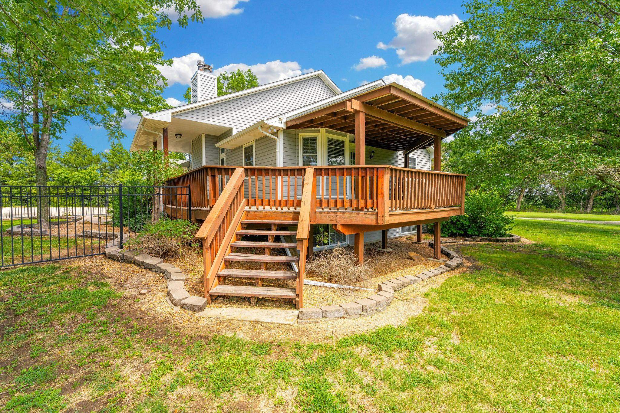 - Description: Escape to your personal slice of paradise with this idyllic country retreat on 6 lush, treed acres, AND a huge shop building! Perfect for those seeking a tranquil farm life while remaining conveniently close to the city, this home offers the best of both worlds. Step inside to discover a beautifully updated interior featuring new luxury vinyl plank floors throughout. The open floor plan, accentuated by a soaring vaulted ceiling, creates an inviting and airy atmosphere. A stunning floor-to-ceiling stone fireplace anchors the main living area, providing a cozy focal point for gatherings. The basement has a large family room with electric fireplace, a full bath, 3rd bedroom and a non conforming 4th bedroom. The 22 x 7 concrete safe room ensures both ample storage for your valuables and peace of mind during inclement weather. Enjoy your morning coffee or unwind after a long day on the expansive wrap-around covered deck. With panoramic views, it’s the perfect spot to admire Kansas’ renowned sunsets and sunrises or just sit back and listen to the quail, pheasant and turkeys. The property also boasts a gigantic shop with ample space for vehicles, tractors, ATVs, and even a loft for additional storage. Multiple outbuildings offer versatile options for dogs, chickens, goats or maybe the kids 4-H project. Located within the highly-rated Mulvane School District, this property truly has it all. Come experience the serenity and charm of country living with the convenience of city access. Don’t miss your chance to call this exceptional retreat your home! Show all description