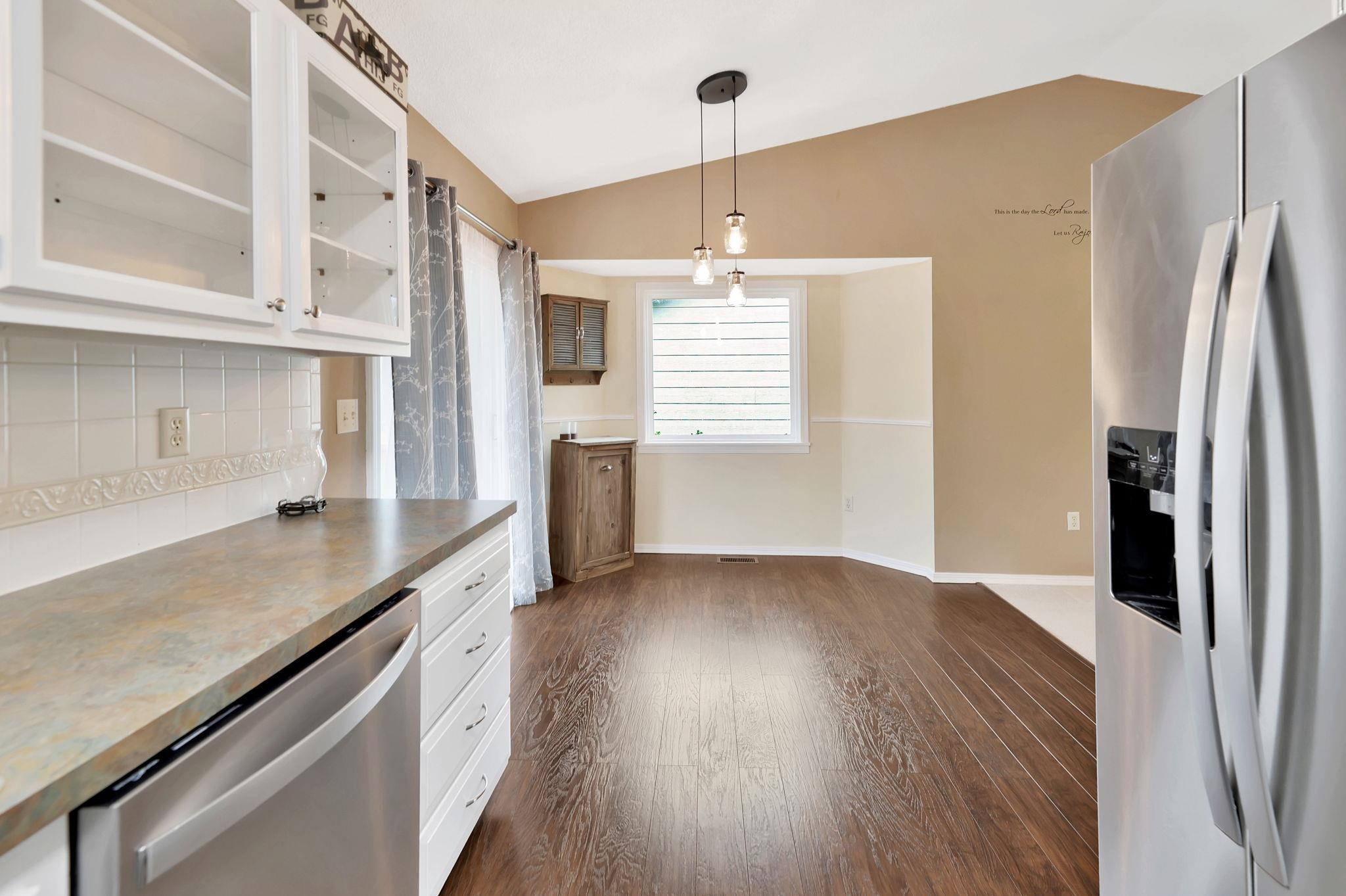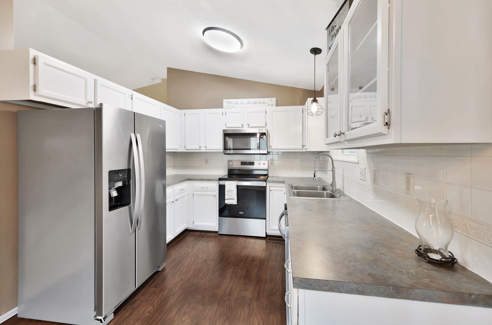 - Description: This beautifully updated home offers the perfect blend of style and comfort. The kitchen features white cabinetry and stainless steel appliances that stay with the home. The main level includes two bedrooms and two full bathrooms, including a private en suite with a separate tub and shower. The gas fireplace is perfect for the snuggling up to on those cold winter days. The finished walkout basement provides additional living space with two more bedrooms, a full bath and a laundry area. Step outside to enjoy the deck and fully fenced backyard with mature trees, perfect for relaxing or entertaining. There was a new class 3 roof, siding and paint done in 2021! The neighborhood pool and jogging path are only a short walk away. Located in the Maize school district with quick access to Sedgwick County Park, highways, dining and shopping! Show all description