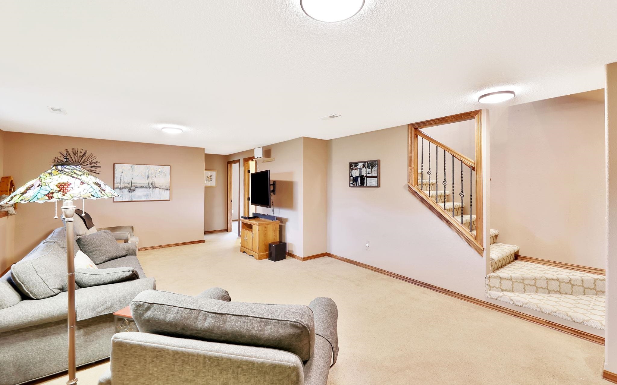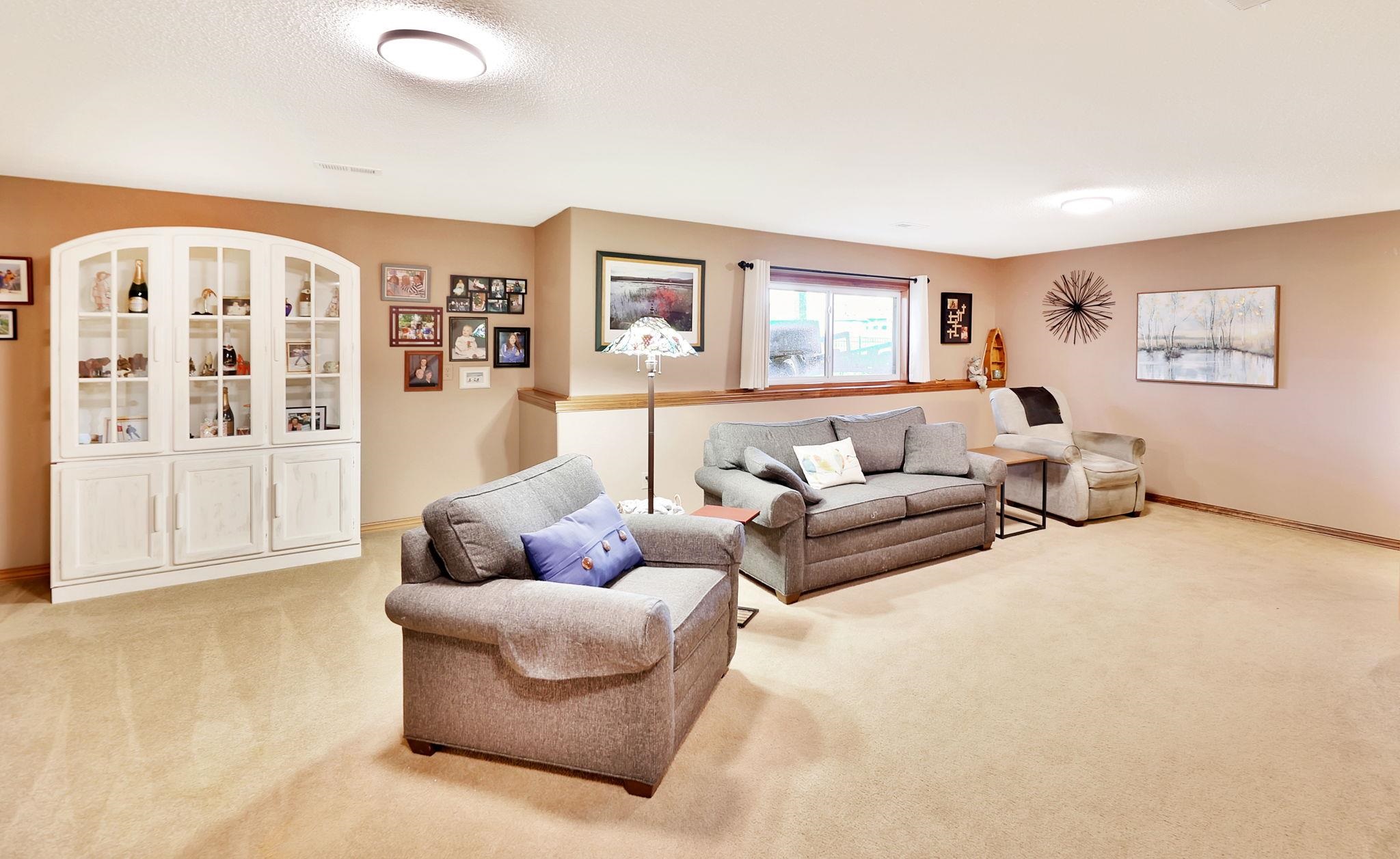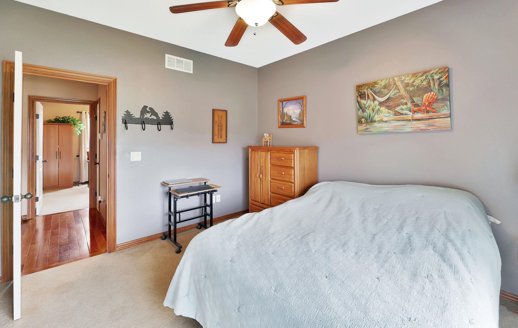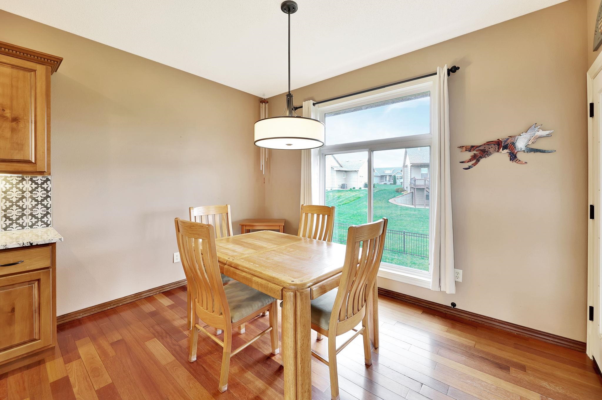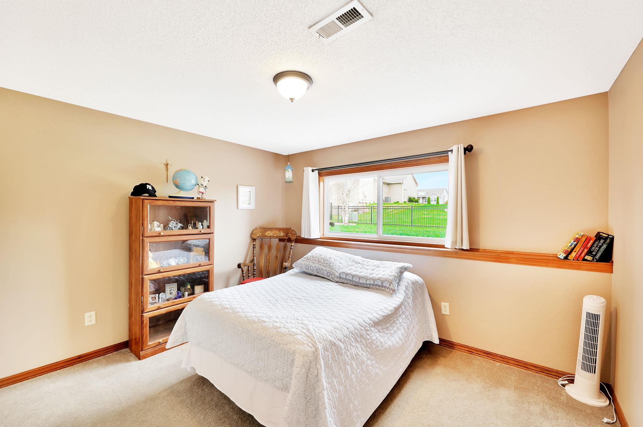 - Description: Walk into your new home and into an incredible open floor plan with SIX bedrooms! The large living room features a super high vaulted ceiling, wood floors and a two-sided fireplace with stone to the ceiling! The open kitchen features maple cabinetry, a large island with granite, appliances which will stay with the home and a walk-in pantry! The dining room has large windows to take in the outdoor view. The entertaining space continues onto the covered deck with the second side of the fireplace! The primary bedroom features a tray ceiling with wood trim and lighting, plus oversized windows. The en-suite bath features double sinks with granite, bathtub, a large walk-in tile shower and a huge walk-in closet! There are two more bedrooms and another bath on the main floor of this split bedroom plan. Down the stairs to the lower level is a great rec room with view-out windows and a wet-bar rough in. There are 3 more finished bedrooms in the lower level providing options for sleeping or working or whatever you need! The backyard is fully fenced with wrought iron and continues past the fence and has a view of the lake! New HVAC in 2024. Show all description