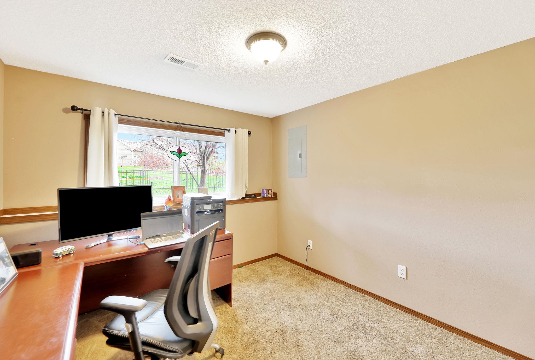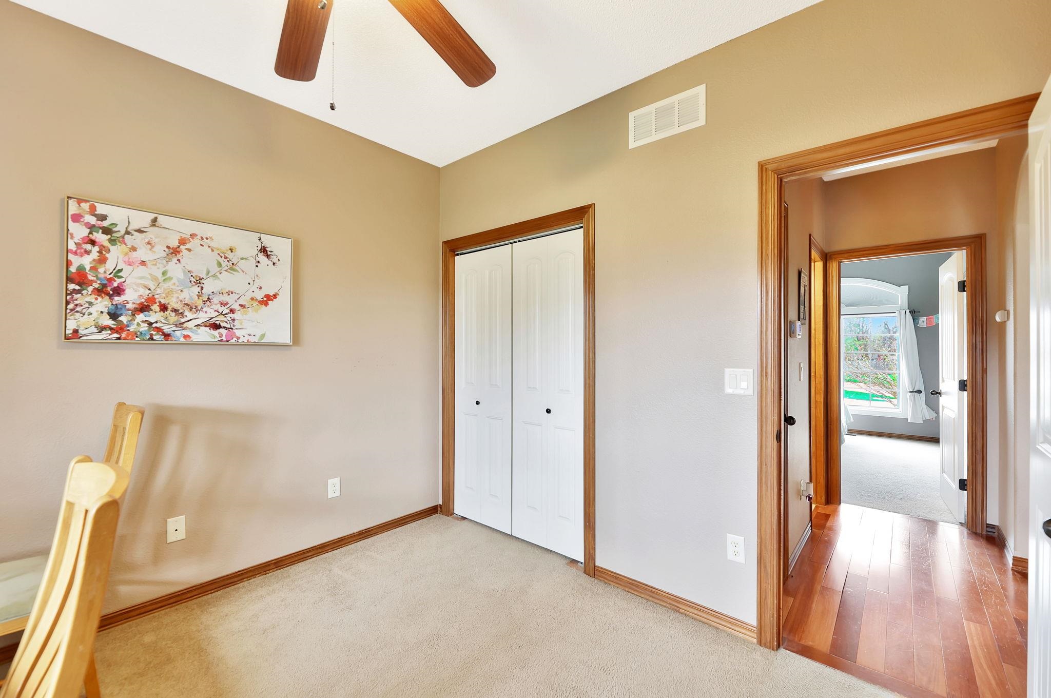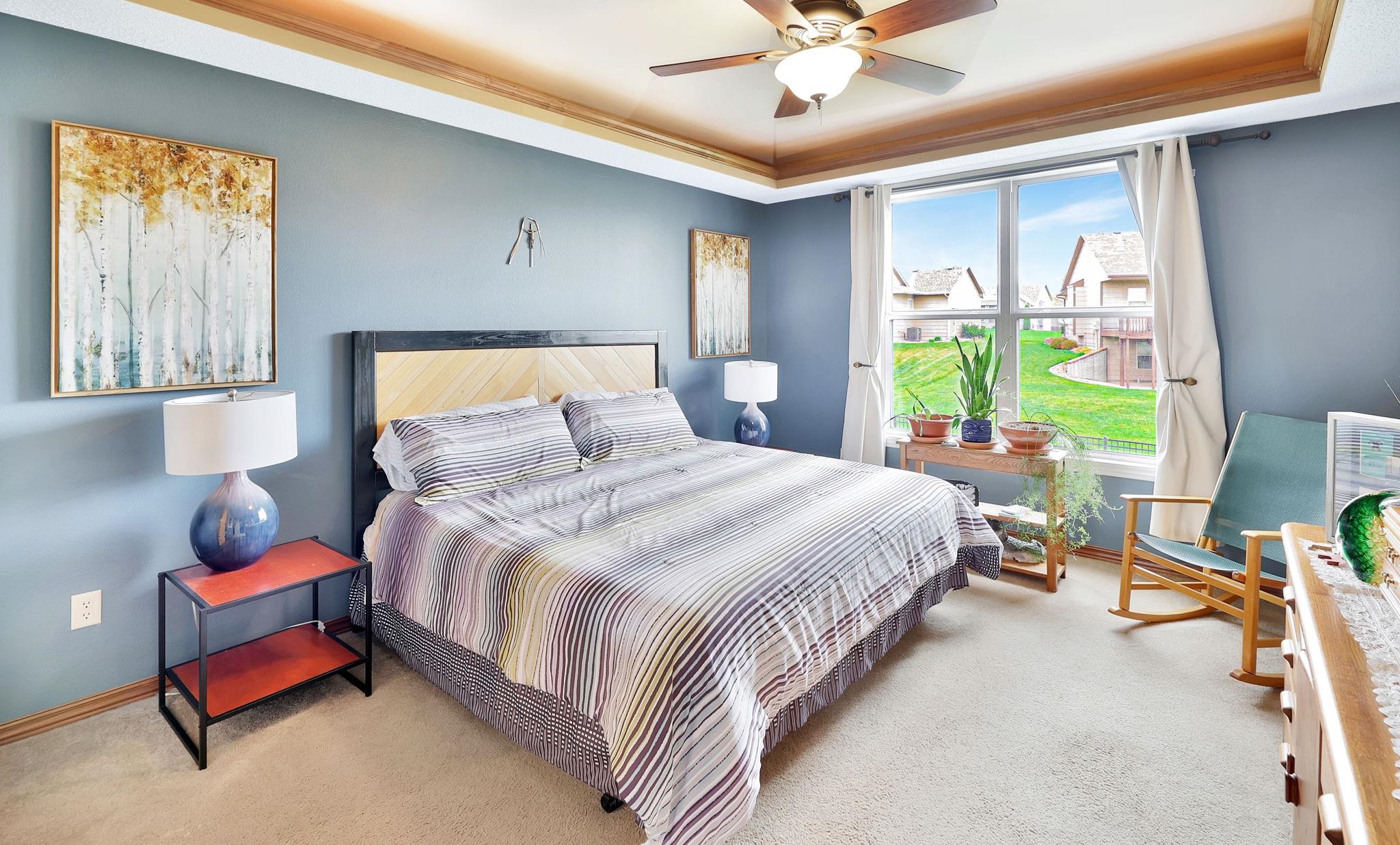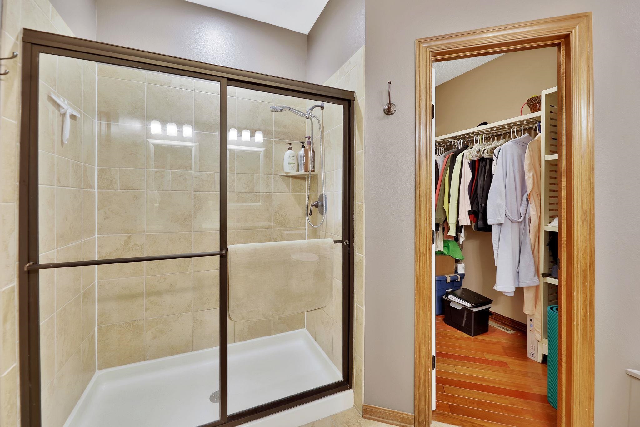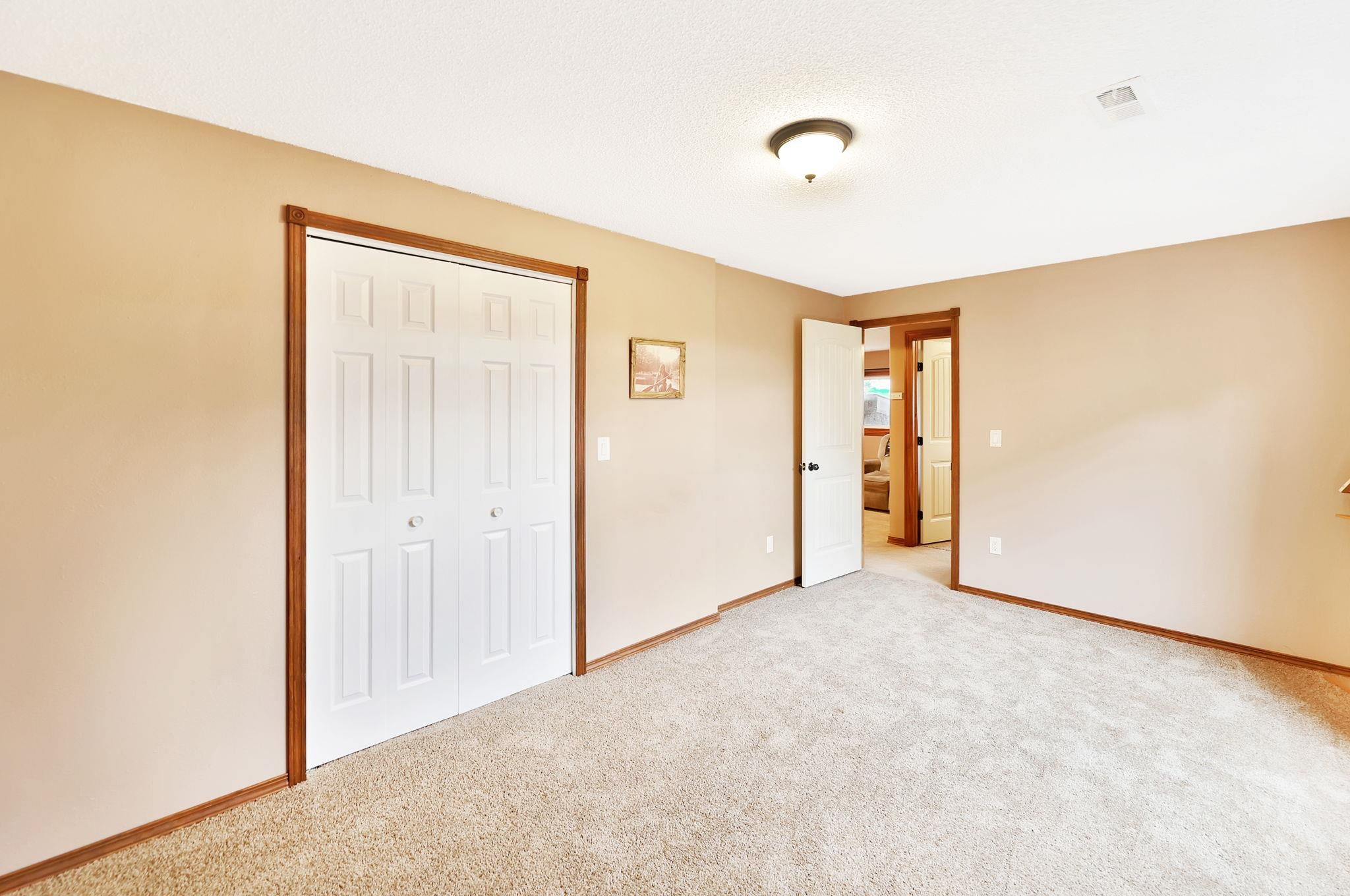 - Description: Walk into your new home and into an incredible open floor plan with SIX bedrooms! The large living room features a super high vaulted ceiling, wood floors and a two-sided fireplace with stone to the ceiling! The open kitchen features maple cabinetry, a large island with granite, appliances which will stay with the home and a walk-in pantry! The dining room has large windows to take in the outdoor view. The entertaining space continues onto the covered deck with the second side of the fireplace! The primary bedroom features a tray ceiling with wood trim and lighting, plus oversized windows. The en-suite bath features double sinks with granite, bathtub, a large walk-in tile shower and a huge walk-in closet! There are two more bedrooms and another bath on the main floor of this split bedroom plan. Down the stairs to the lower level is a great rec room with view-out windows and a wet-bar rough in. There are 3 more finished bedrooms in the lower level providing options for sleeping or working or whatever you need! The backyard is fully fenced with wrought iron and continues past the fence and has a view of the lake! New HVAC in 2024. Show all description