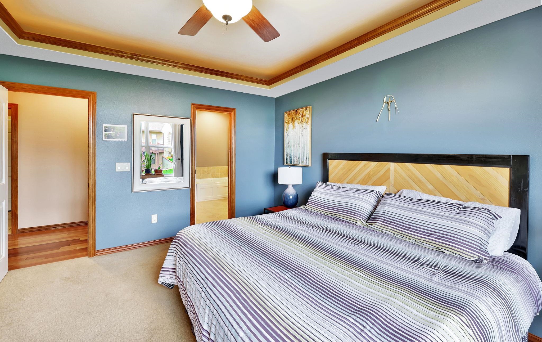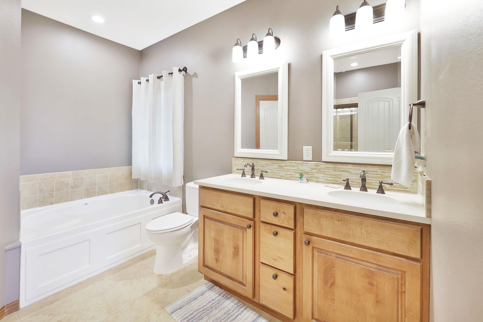 - Master Bedroom: Master Bdrm on Main Level, Split Bedroom Plan, Master Bedroom Bath, Two Sinks, Granite Counters