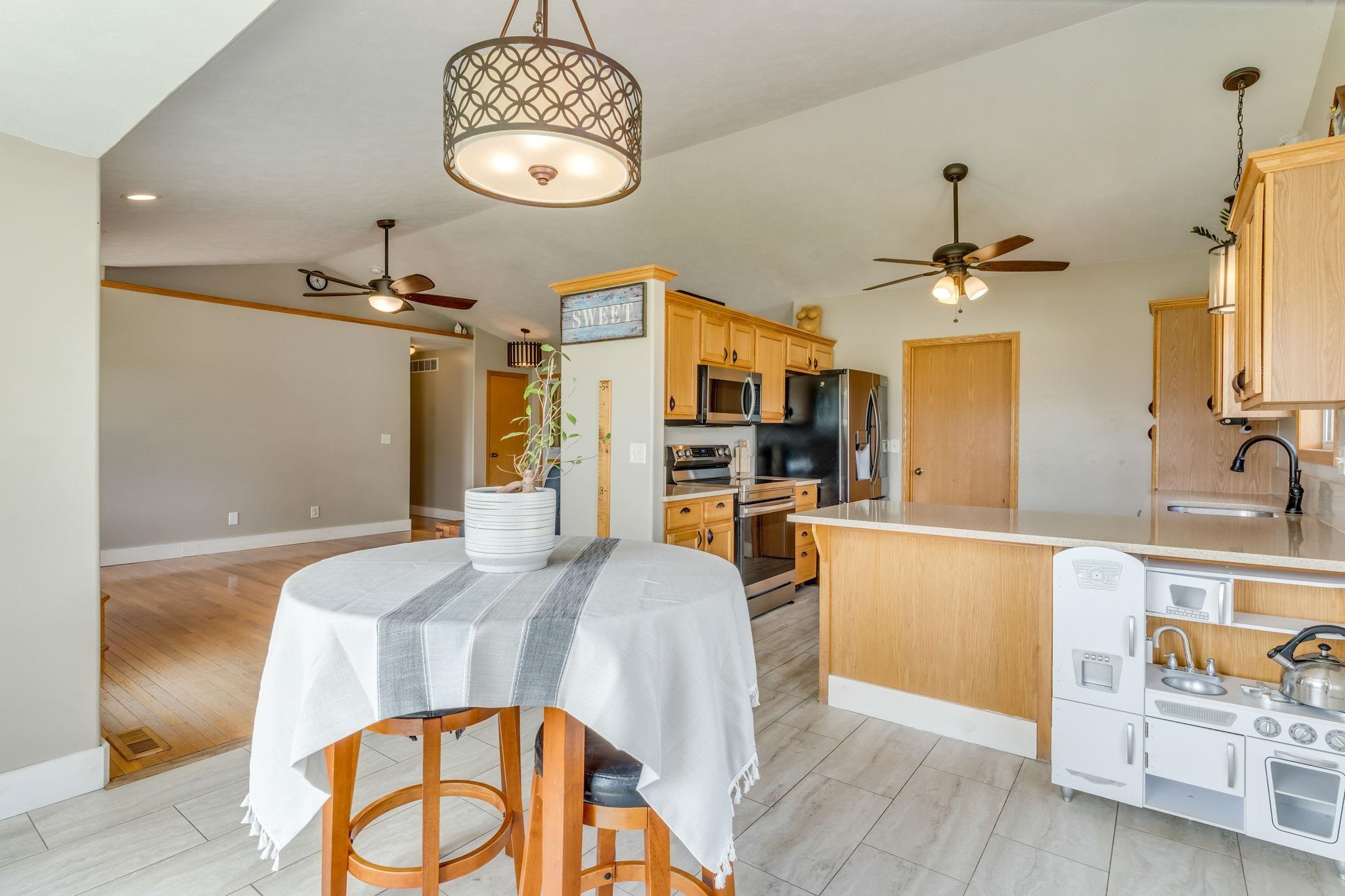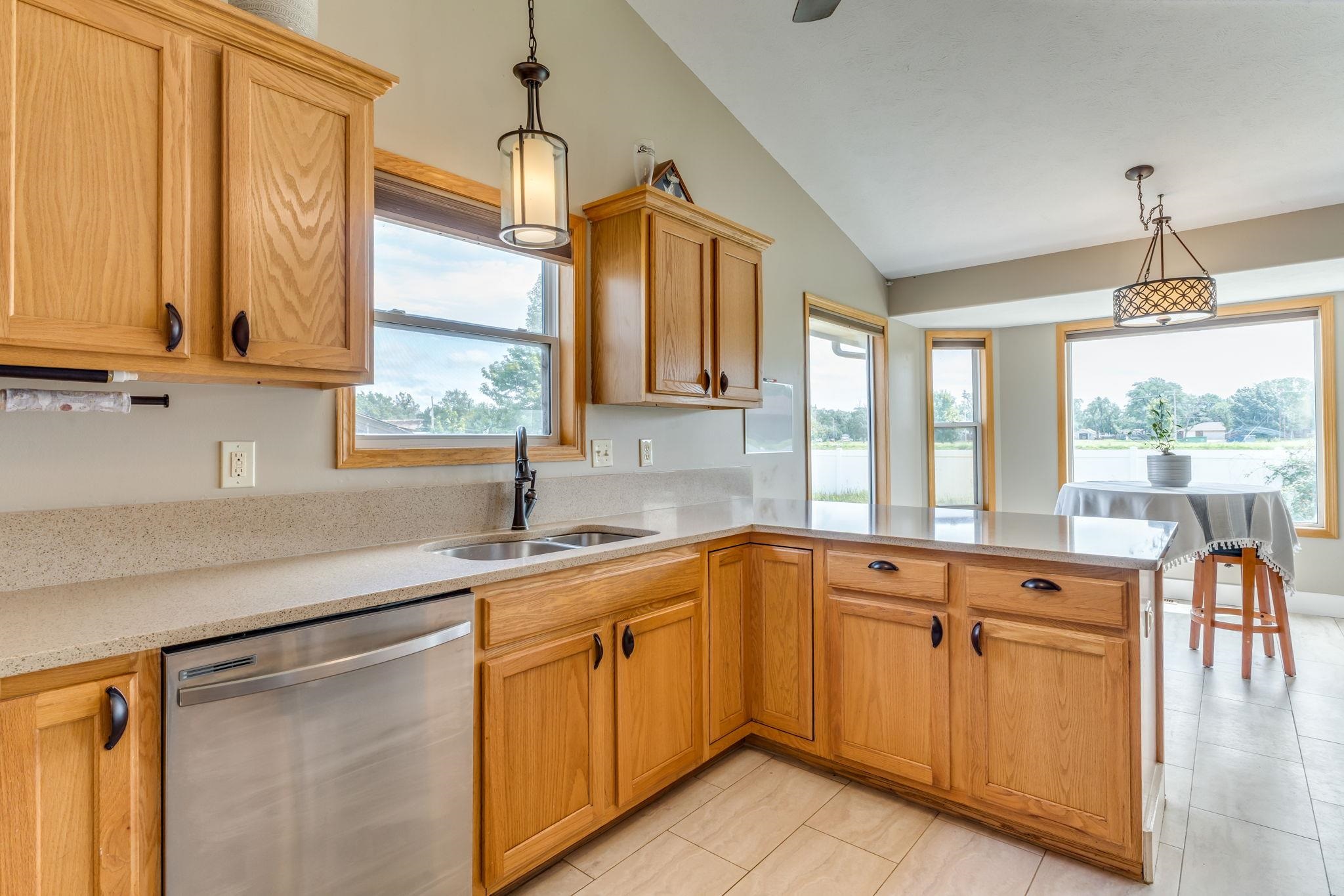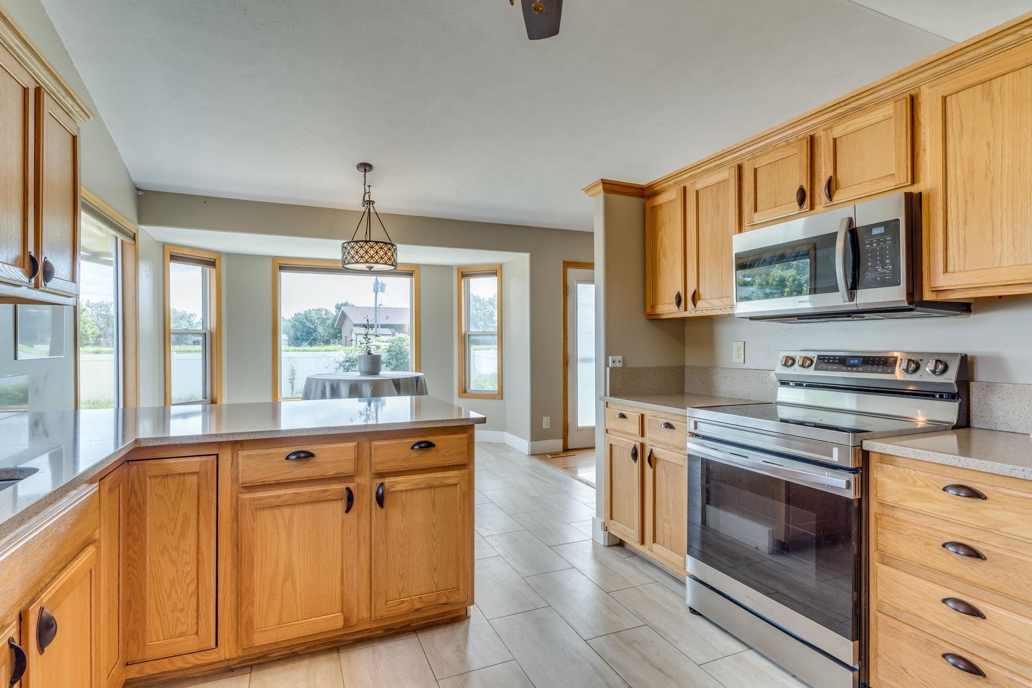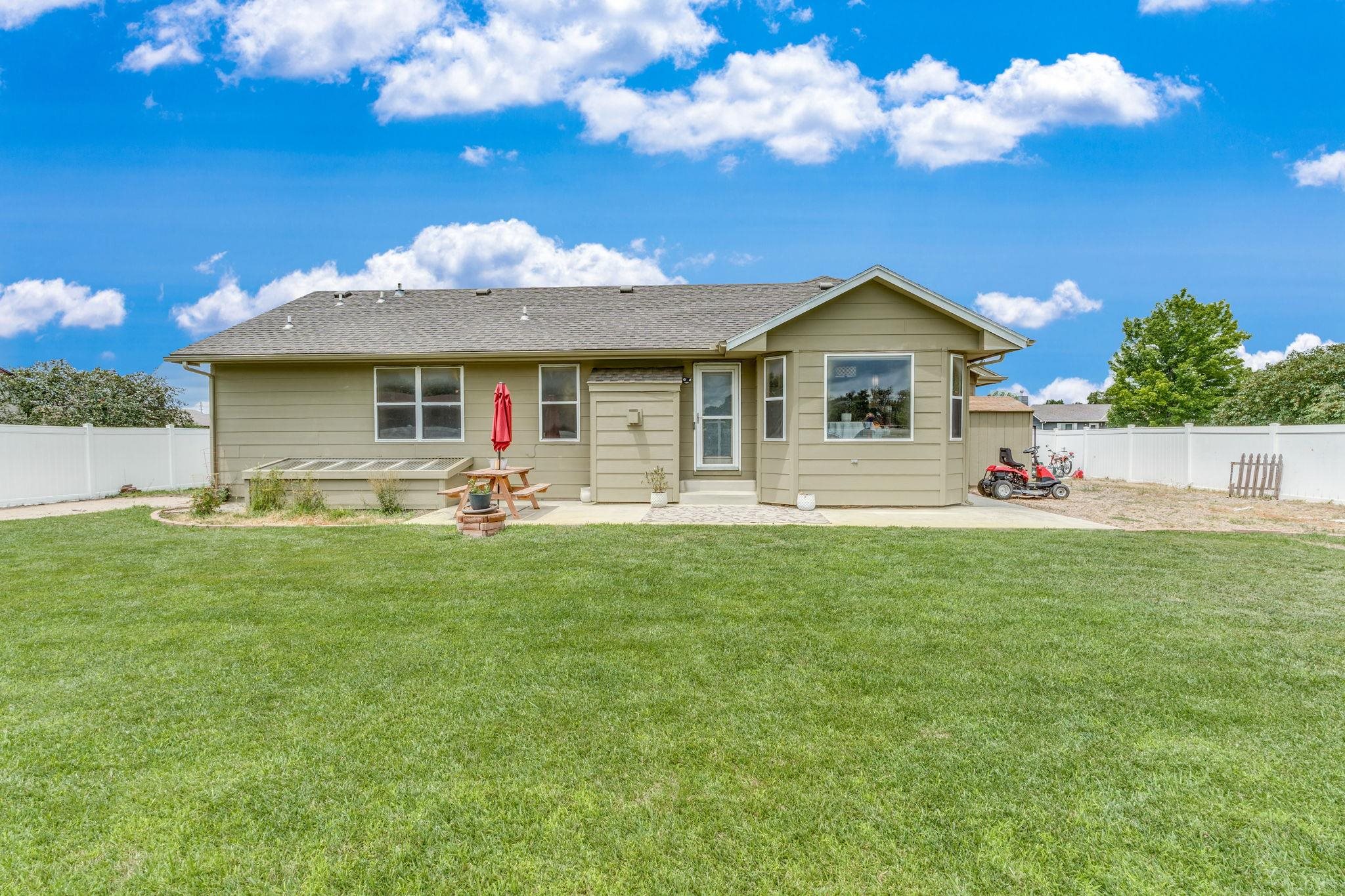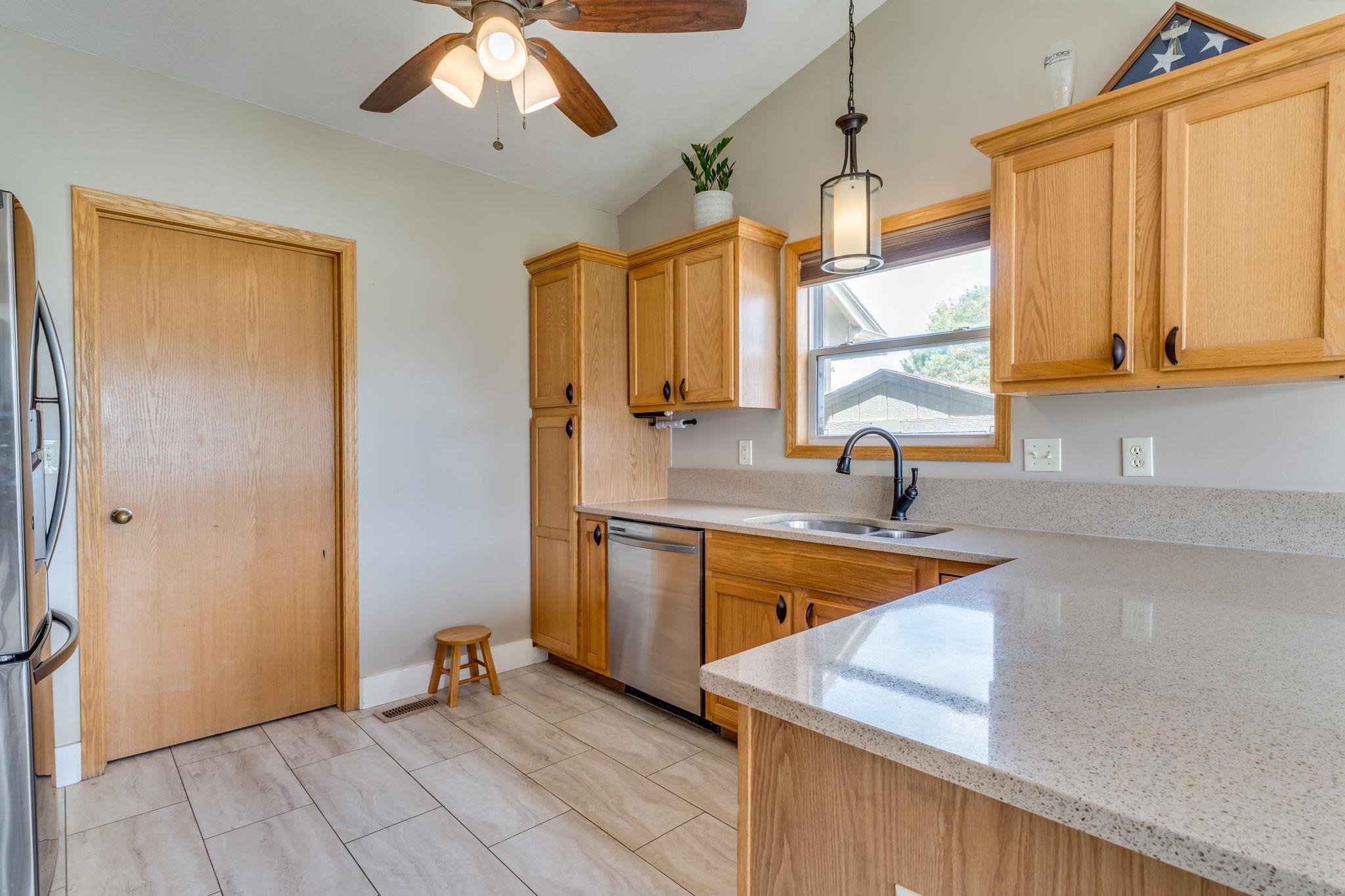 - Description: Spacious five bedroom, three bath ranch style home in a walkable, family-friendly neighborhood now available in the Buhler school district! This move in ready listing features a cozy fireplace in the living room, quartz kitchen countertops, ample dining space, and a large mudroom with extra storage. For the hobbyist or mechanic in your family there is a three car garage with bonus shelving. The main floor offers three bedrooms and two full bathrooms with updated tile and wood flooring. The finished basement includes a second living area, one full bathroom, and two bedrooms, perfect for teens, guests or relaxing. Enjoy the vinyl fenced backyard with a shed, RV hookup and additional side yard space. Schedule your showing today! Show all description