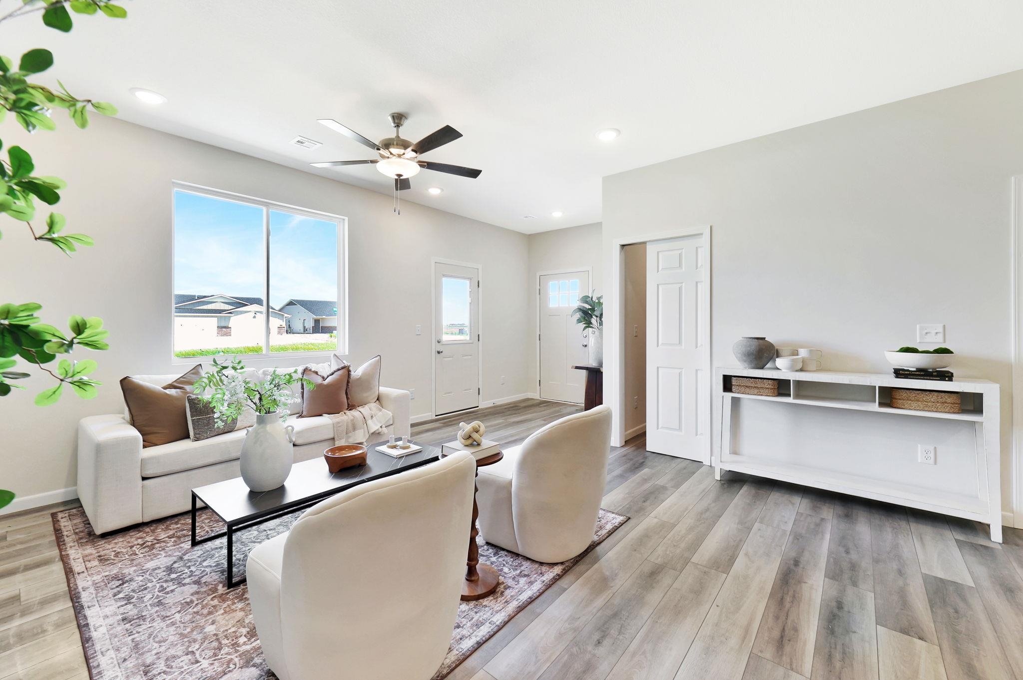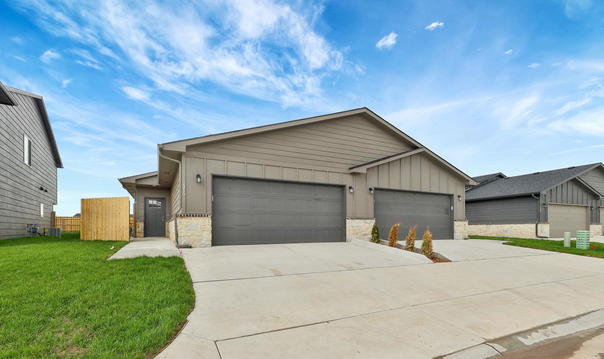 - Description: Welcome home to this beautifully designed, brand new build offering 3 spacious bedrooms, 2 full bathrooms, and a 2-car attached garage. Located in Southwest Wichita and within the desirable Goddard School District, this single-side duplex is perfect for families or anyone seeking modern comfort in a great location. The open concept layout blends the living, dining, and kitchen areas, centred around a stylish electric fireplace that adds warmth and charm to the space. A dedicated laundry room and practical drop zone area offer extra functionality, while the primary suite includes a walk-in closet and a nicely sized bedroom. Outside, enjoy fresh sod, a sprinkler system, and access to a shared well. The HOA covers lawn maintenance, making for an easy, low-maintenance lifestyle. Move-in ready and full of thoughtful features, this home is a fantastic opportunity you don’t want to miss. Show all description