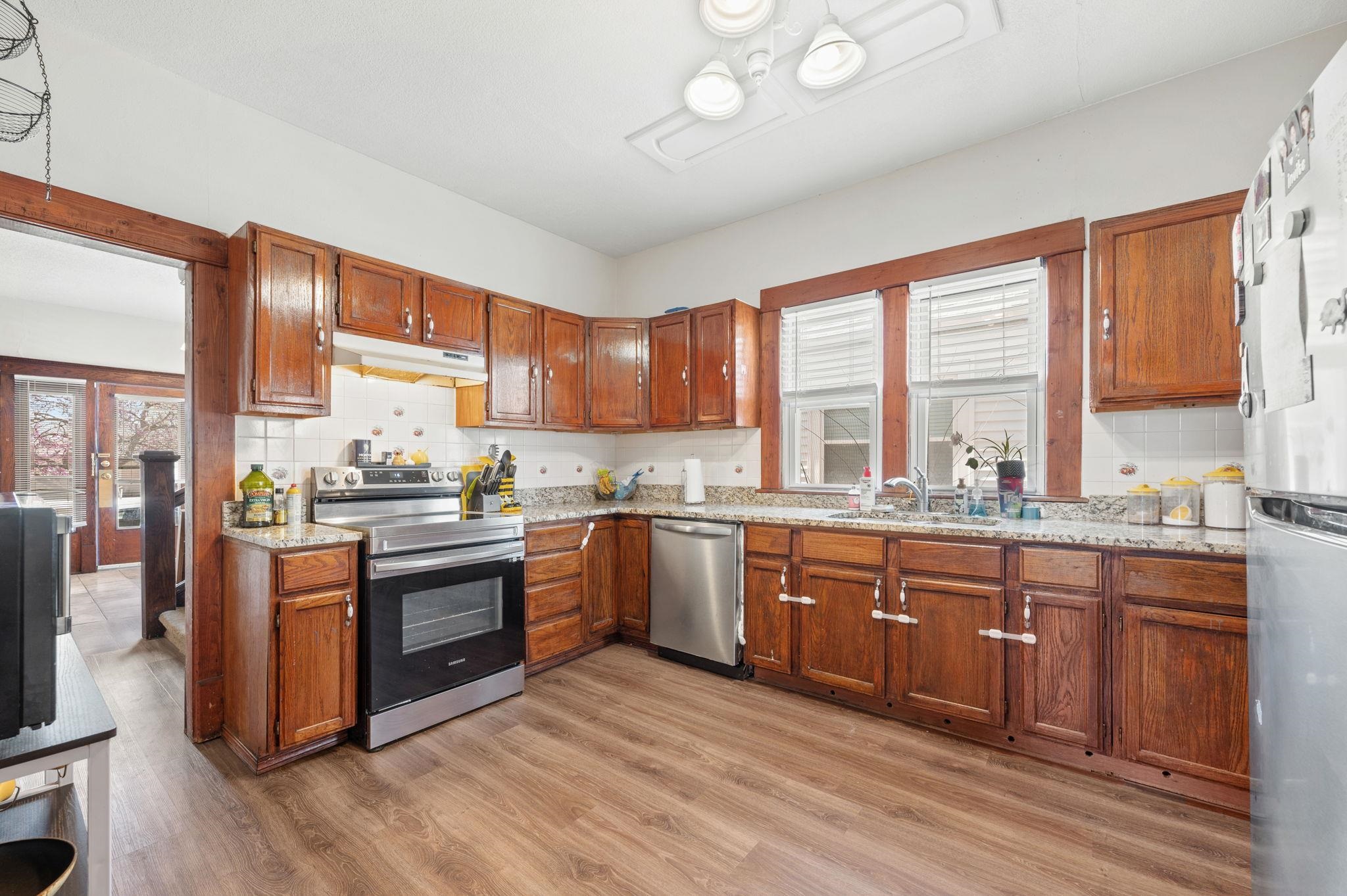 - Description: Charming 123-Year-Old Corner Lot Home in Wichita! Step into history with this beautiful 3-bedroom, 1.5-bath home, perfectly situated on a desirable corner lot. This well-maintained gem features a newer roof, updated sewer line, and modern kitchen appliances, all of which remain with the home! As you enter the grand foyer, you'll be welcomed by soaring ceilings and timeless character. The main level boasts a spacious living room, huge formal dining room, and a large mudroom—perfect for extra storage and organization. The kitchen is generously sized, and a convenient half-bath rounds out the main floor. Upstairs, you'll find the primary bedroom, two additional bedrooms, and a large shared bathroom. The laundry room with attic access is also located on this level for added convenience. The basement offers ample storage space and always stays dry! Outside, the fenced backyard provides room to relax or even park additional vehicles. This home’s prime location puts you close to great restaurants, schools, and all the conveniences of city living. Don’t miss your chance to own this stunning, historic home—schedule your showing today! Show all description