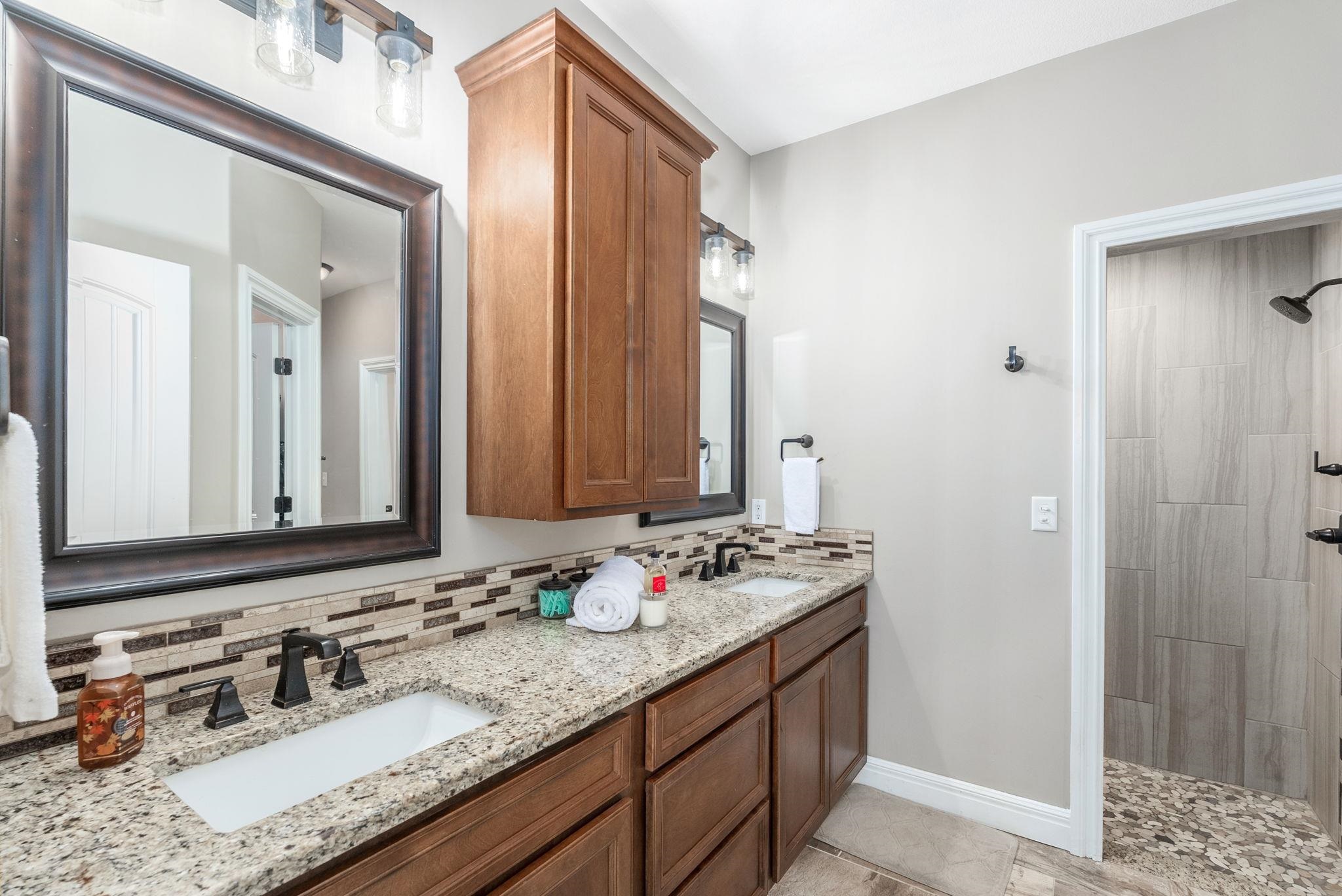 - Master Bedroom: Master Bdrm on Main Level, Master Bedroom Bath, Shower/Master Bedroom, Two Sinks, Granite Counters, Water Closet
