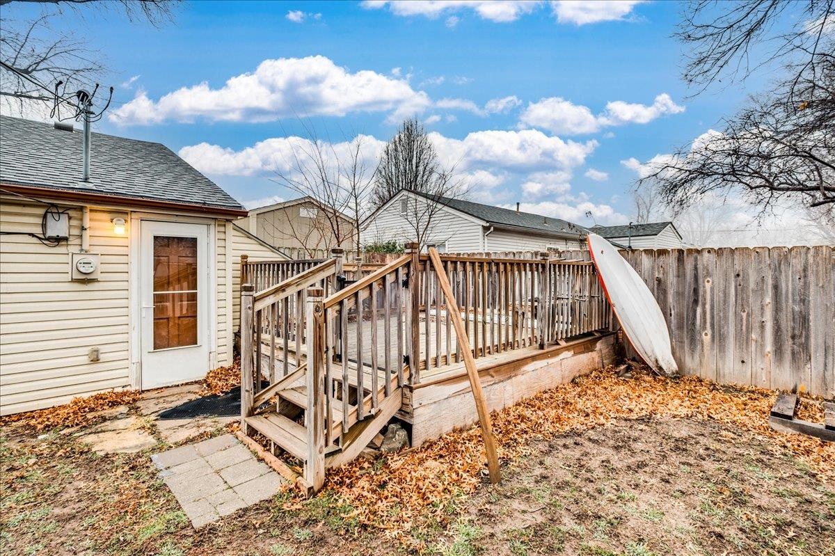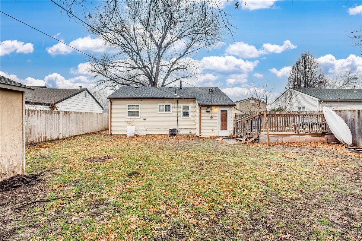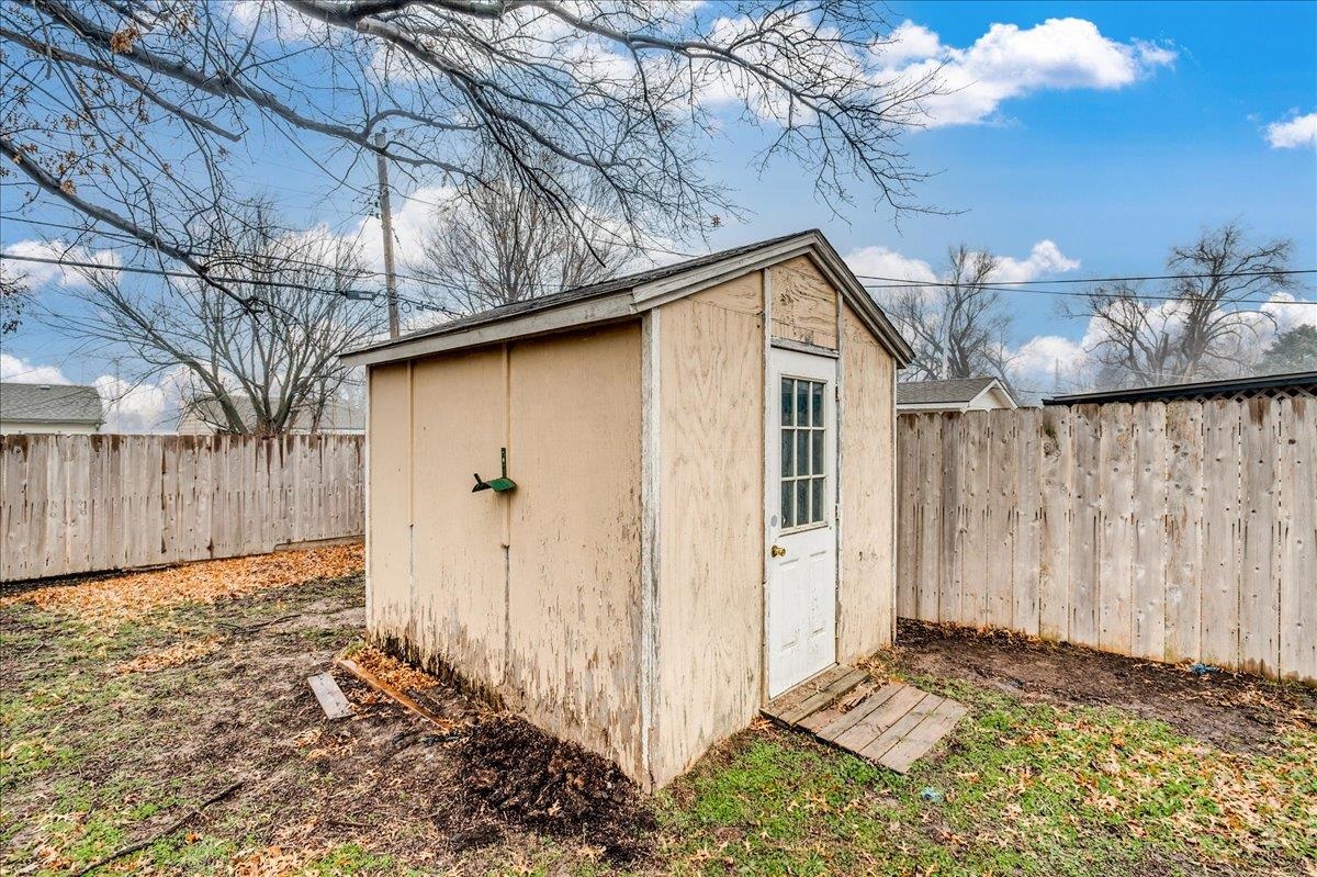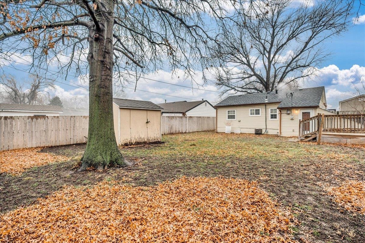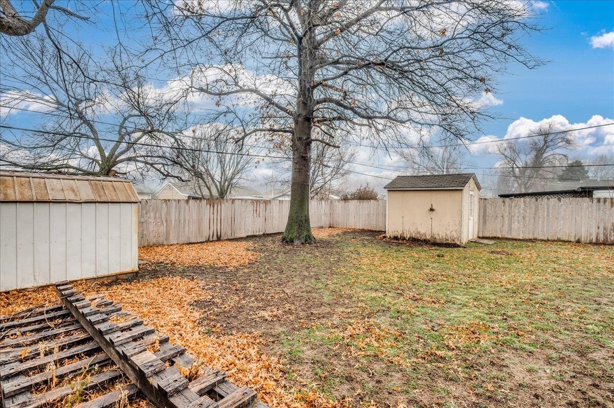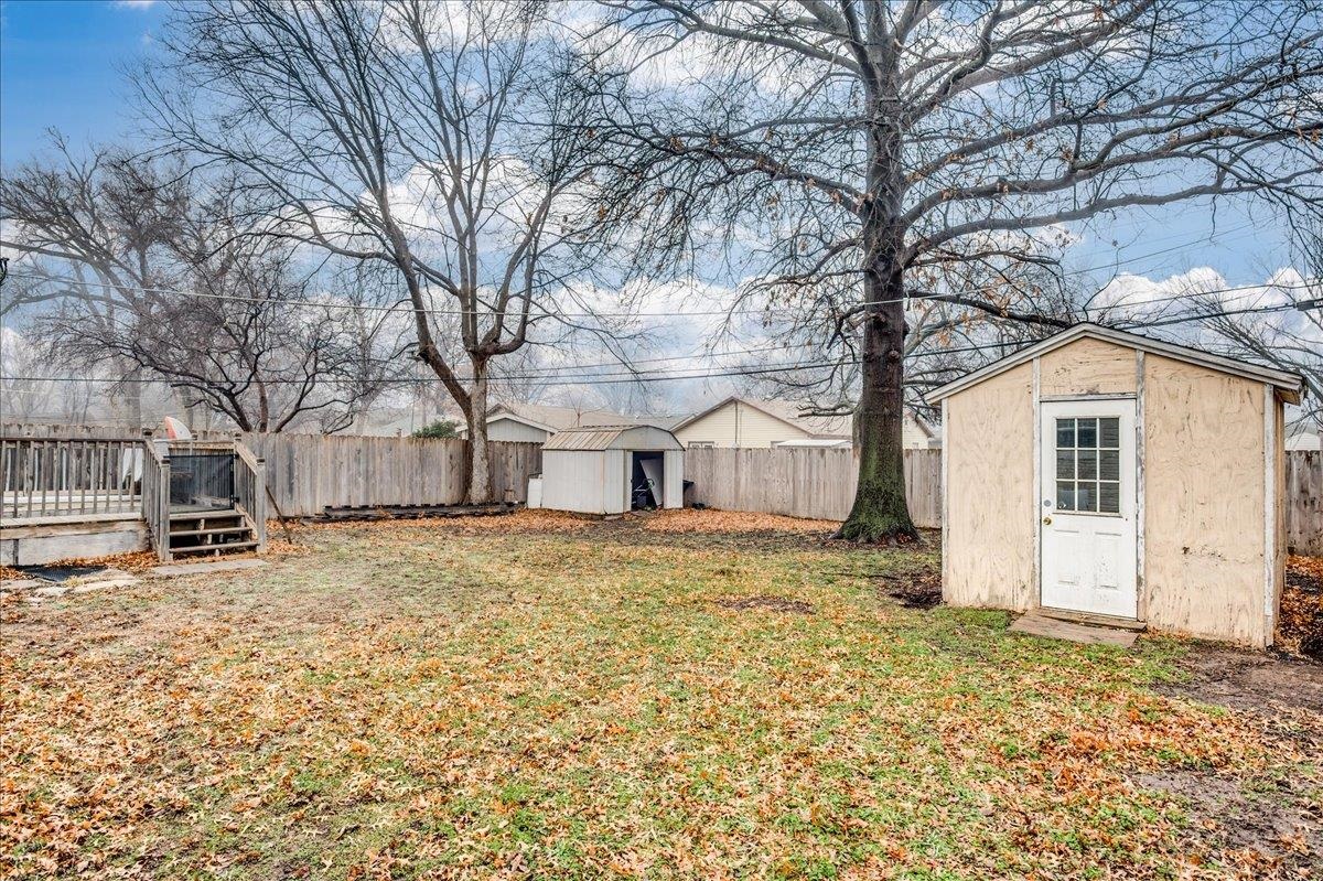 - Description: This sweet two-bedroom, one-bathroom home offers a perfect blend of charm and modern convenience. Nestled in a friendly neighborhood, this property is ideal for first-time buyers, small families, or those looking to downsize. Both bedrooms are generously sized, providing ample space for rest and relaxation. The kitchen is right off the living room and is spacious with a lot of storage. There is laundry just off the kitchen and the unfinished basement space is perfect for additional storage/storm shelter. The backyard has a perfect spot for outdoor entertainment on the deck and storage in the sheds. Additional features you are sure to love are the 2 year old roof, LVP flooring, and ALL appliances will stay (including the washer & dryer). Schedule your showing and make this home yours today! Show all description