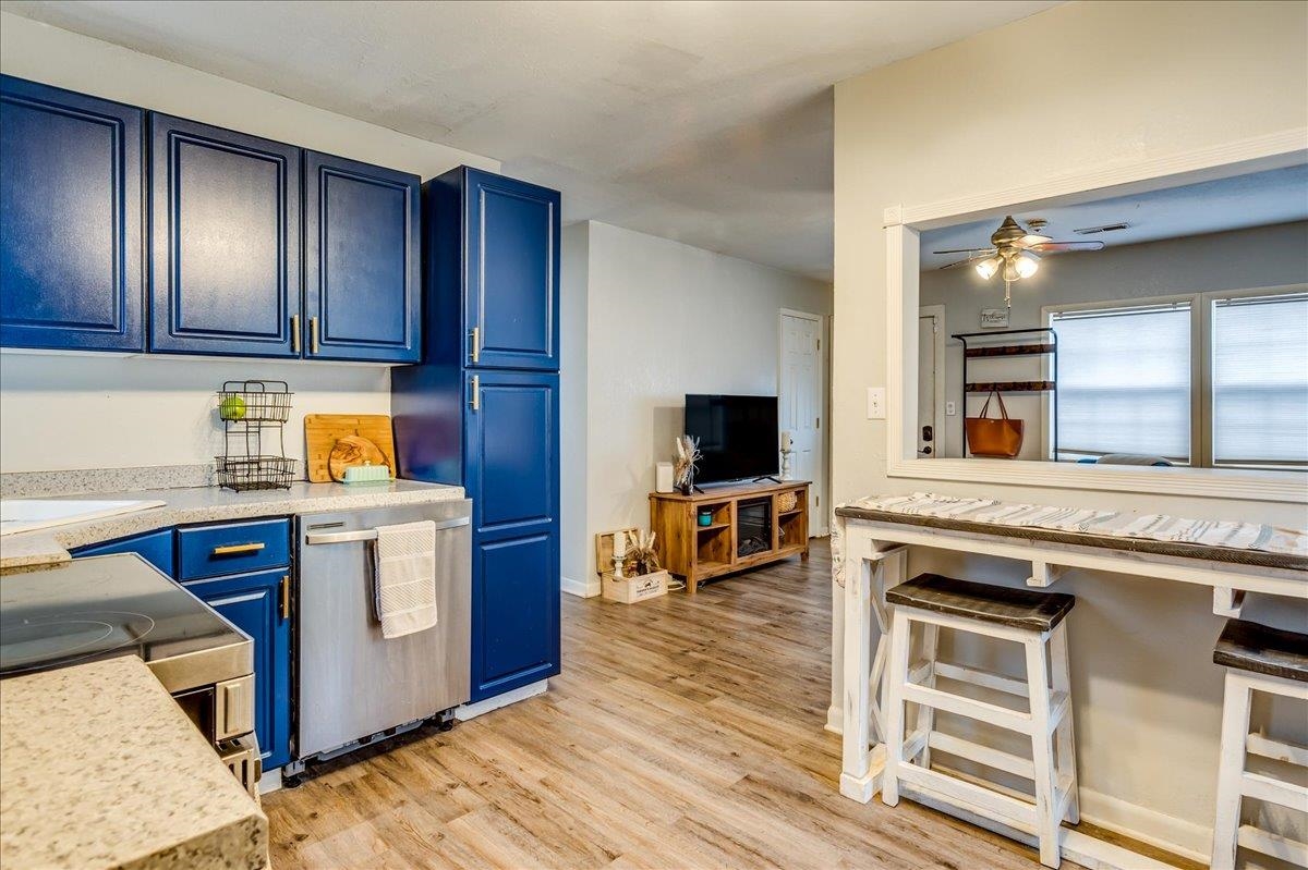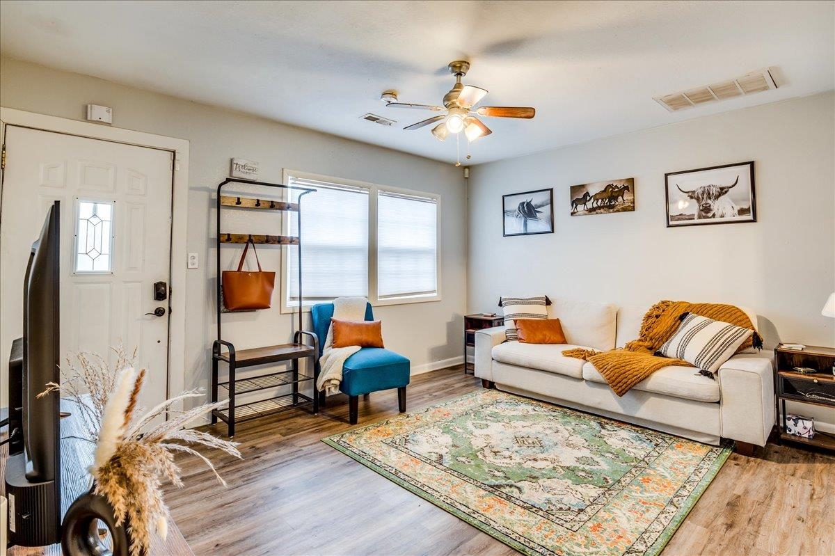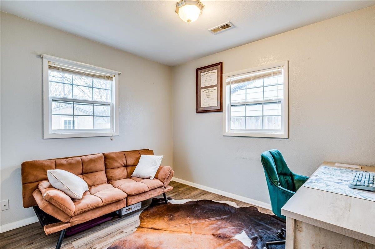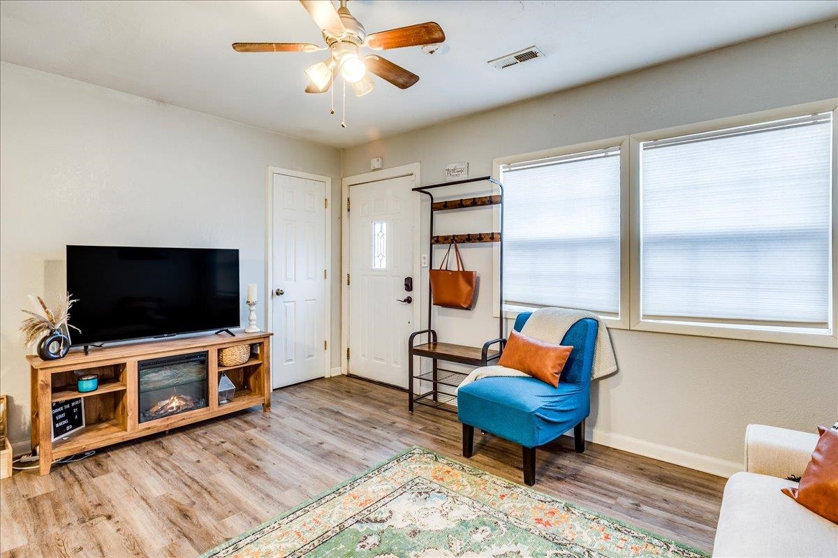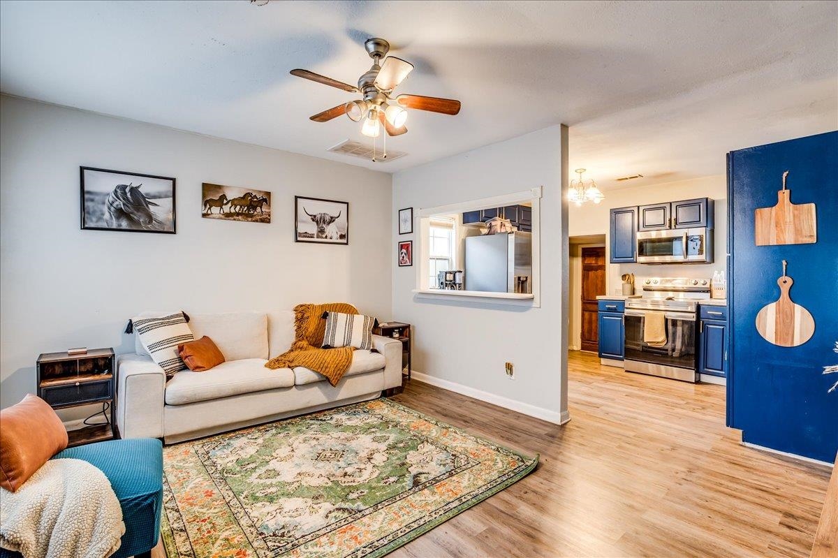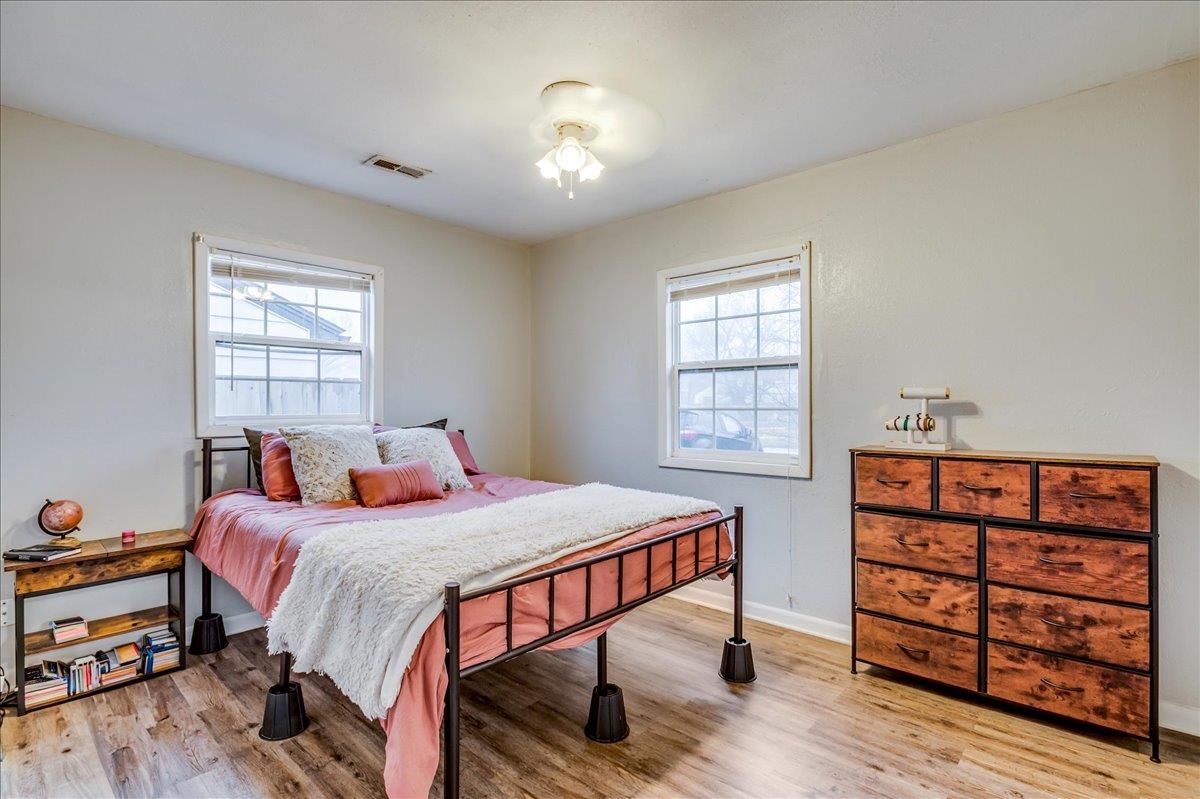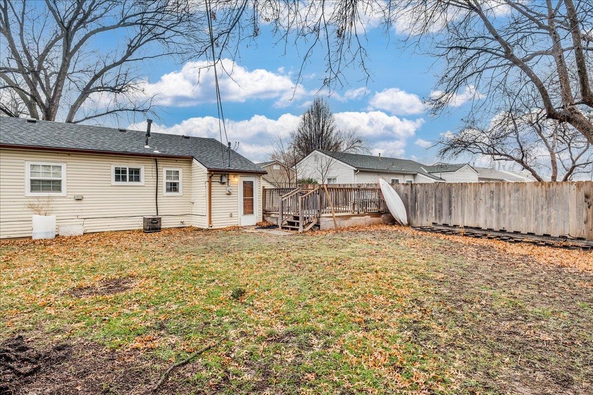 - Description: This sweet two-bedroom, one-bathroom home offers a perfect blend of charm and modern convenience. Nestled in a friendly neighborhood, this property is ideal for first-time buyers, small families, or those looking to downsize. Both bedrooms are generously sized, providing ample space for rest and relaxation. The kitchen is right off the living room and is spacious with a lot of storage. There is laundry just off the kitchen and the unfinished basement space is perfect for additional storage/storm shelter. The backyard has a perfect spot for outdoor entertainment on the deck and storage in the sheds. Additional features you are sure to love are the 2 year old roof, LVP flooring, and ALL appliances will stay (including the washer & dryer). Schedule your showing and make this home yours today! Show all description