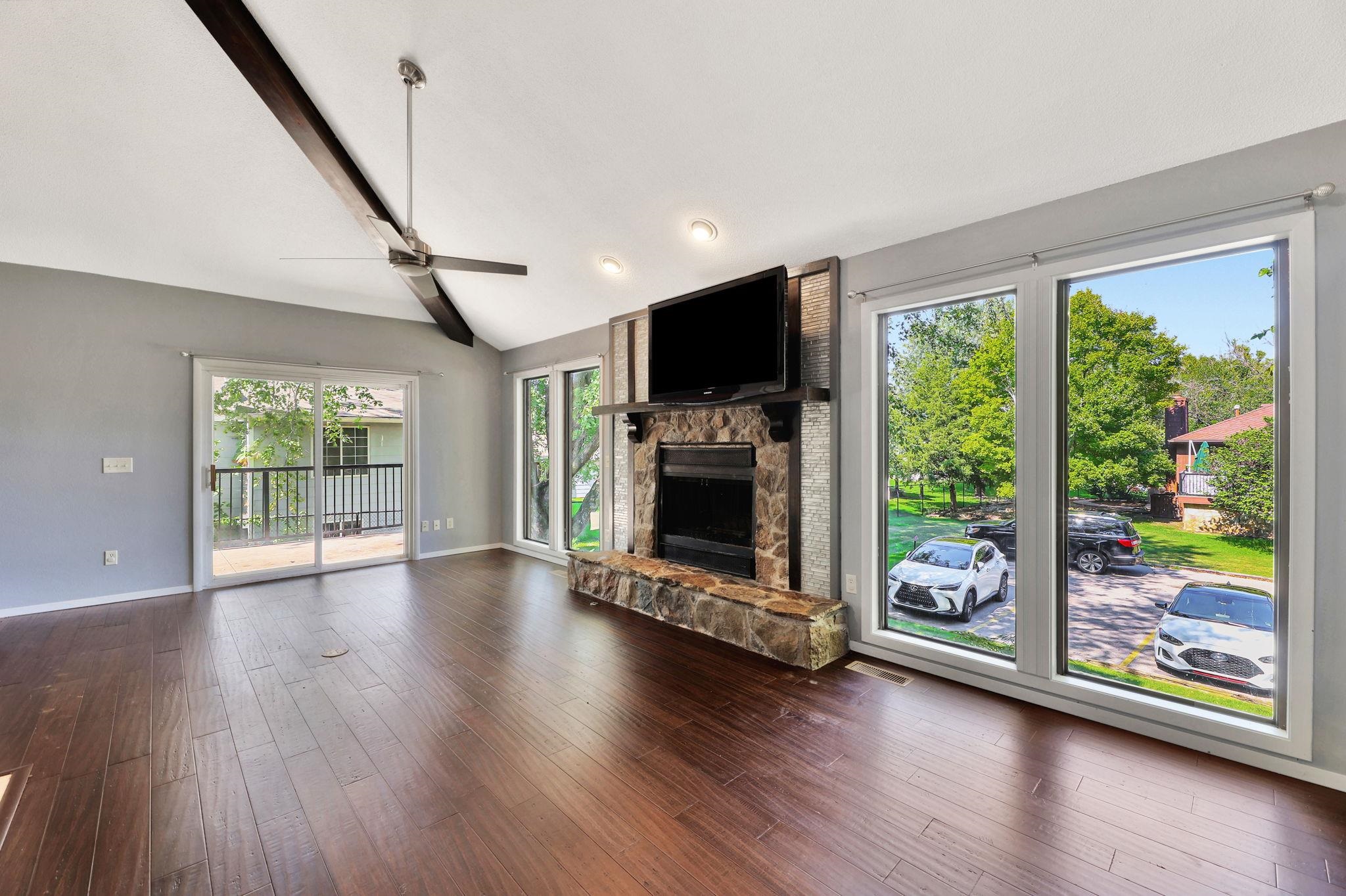 - Description: Tucked away at the end of the Tree House Condo community, this lovely home offers peace, convenience, and style—all within walking distance to Pawnee Prairie Park. Step inside to find beautiful wood floors, updated fireplace tile, and a warm neutral décor. The vaulted, beamed ceiling and large windows fill the open living and dining area with natural light, creating an inviting space for everyday living or entertaining. The kitchen includes all appliances and features a convenient eating bar. Upstairs, the loft makes an ideal guest room or office. The lower level offers two comfortable bedrooms, a full bathroom, and a laundry area. The spacious primary bedroom includes double closets and handy under-stair storage. Enjoy low-maintenance living with access to the neighborhood swimming pool—ready for you to relax and unwind this summer. Welcome home! Show all description