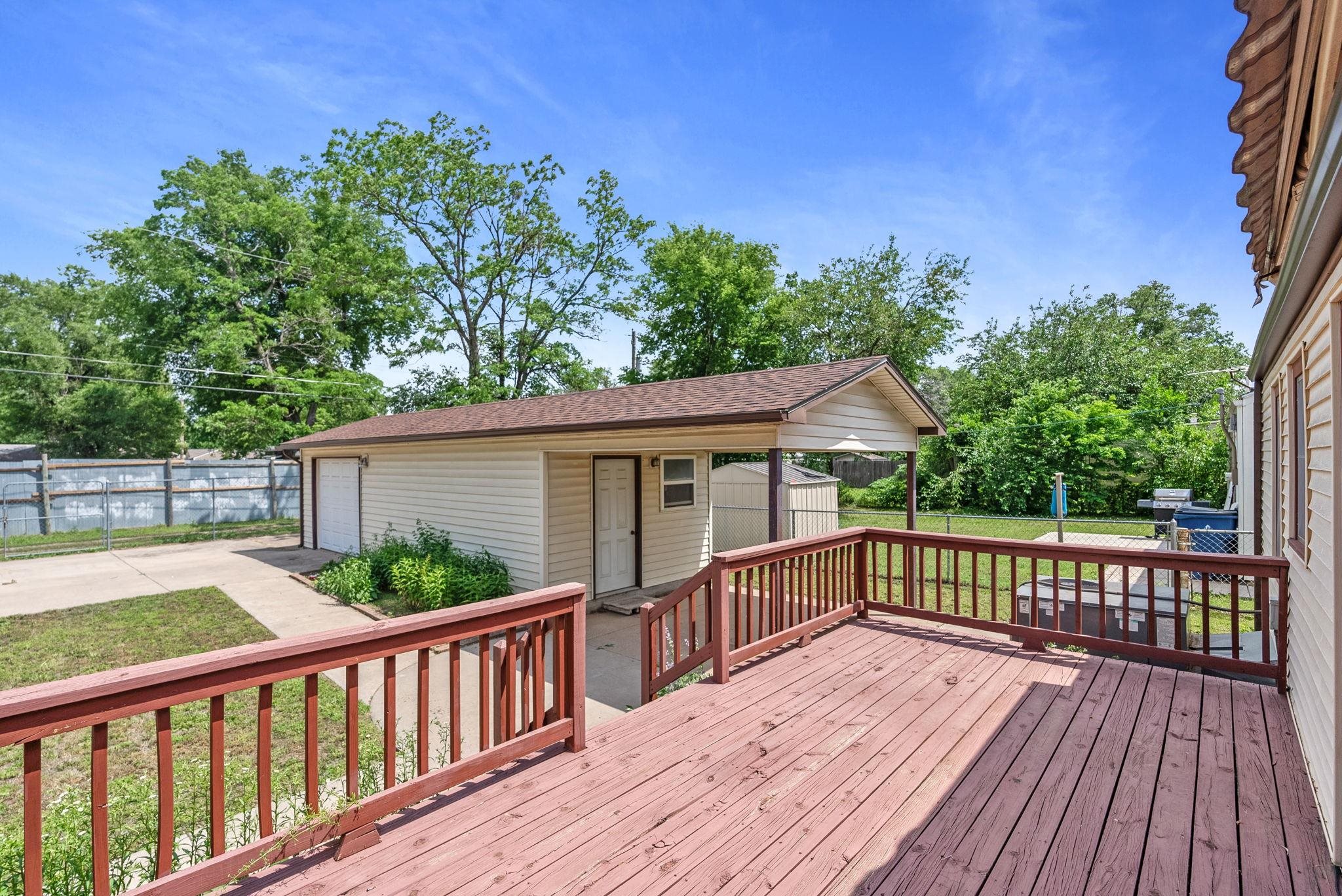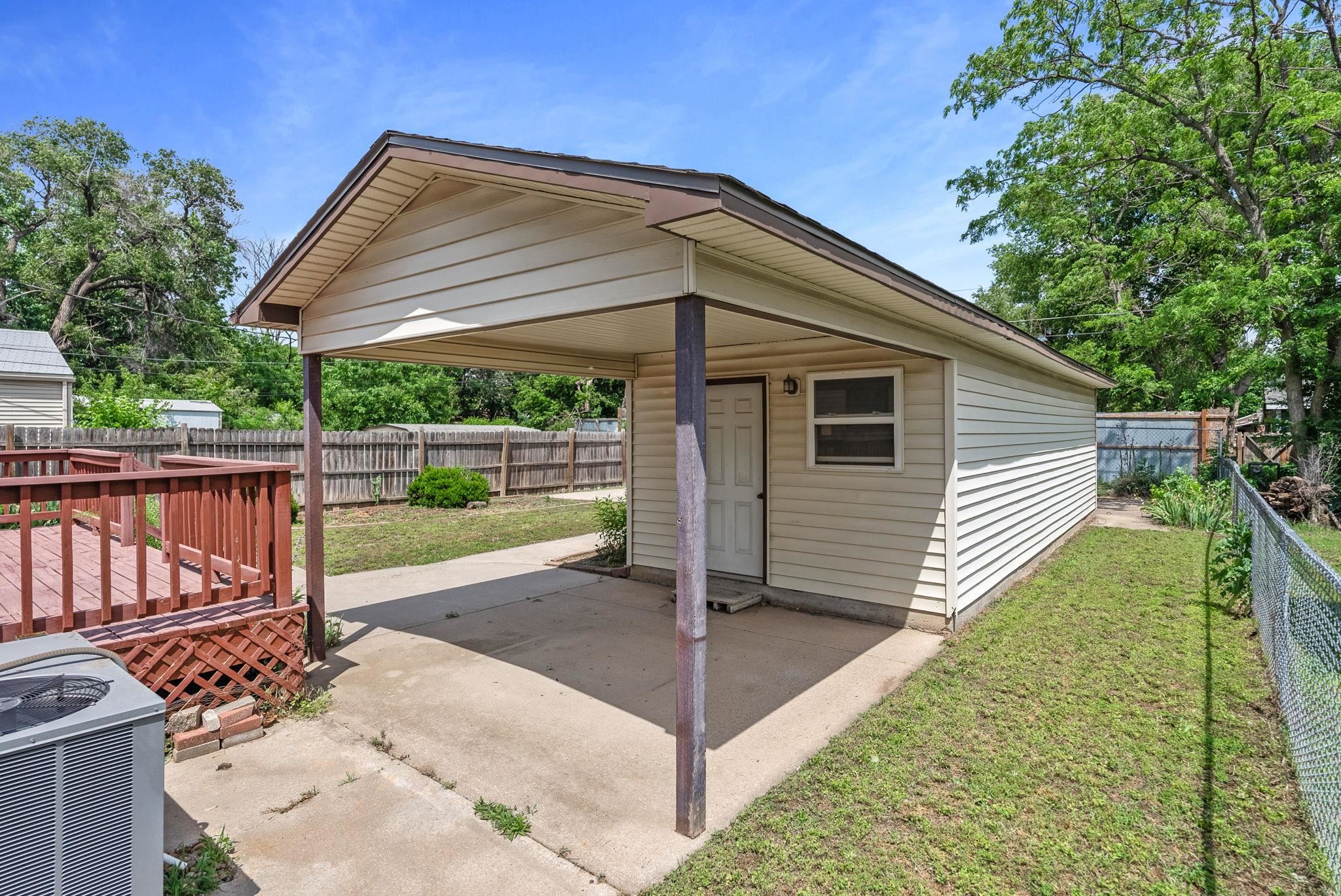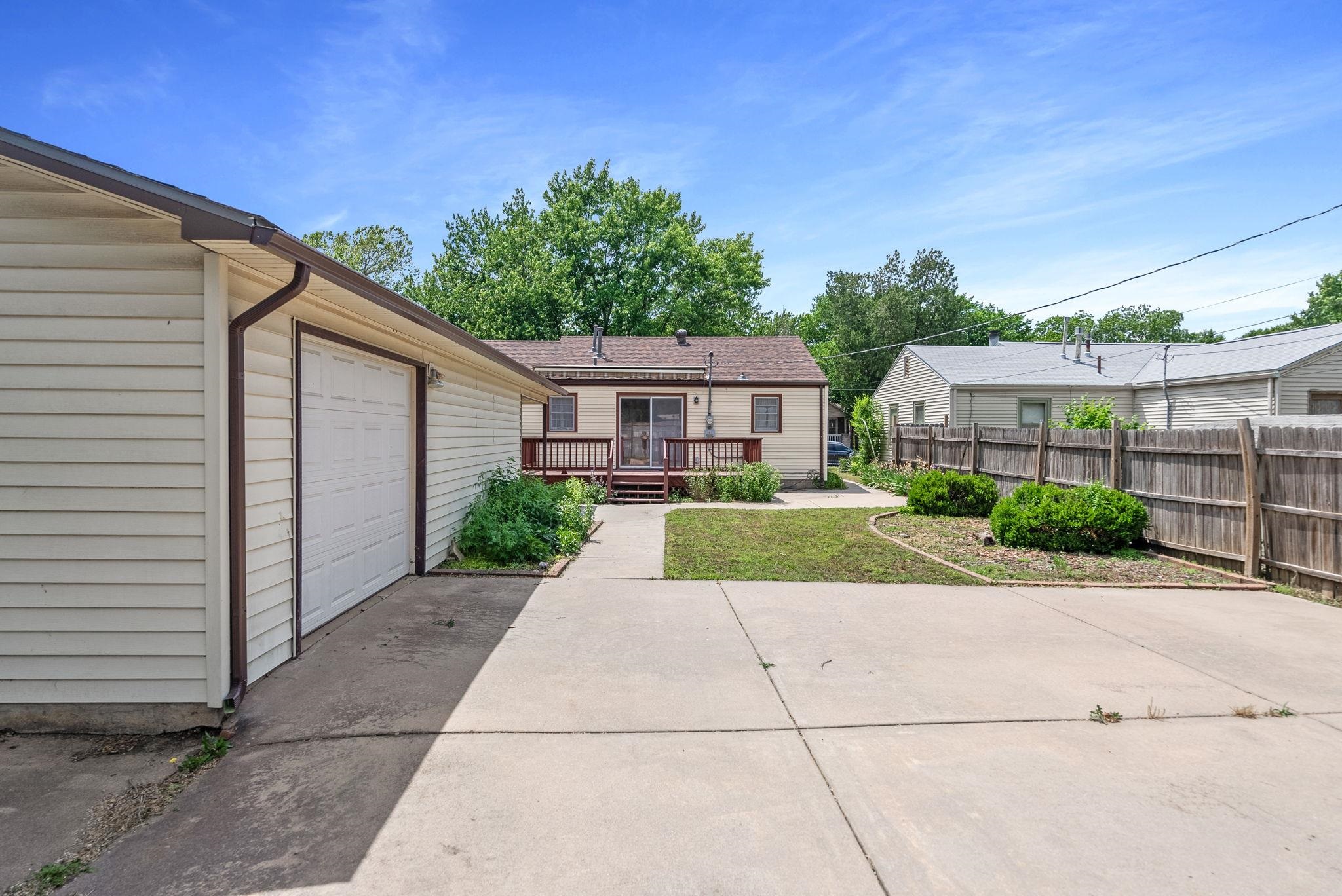 - Description: Great opportunity to add your personal touches to this well loved home in north Wichita! Brand new roof, RV parking, alley access, detached garage with workshop space(31x12) and a covered patio are just a few of the great features this home has to offer. This unique home has 2 bedrooms, 1 bathroom, hardwood flooring, low maintenance vinyl siding and all of the appliances are included. Beautiful mature trees and lovely landscaping accent the covered front deck which is a perfect place to enjoy the spring weather. There is also additional parking space in the backyard with double gates for easy access from the alley. Home is sold as is. Show all description
