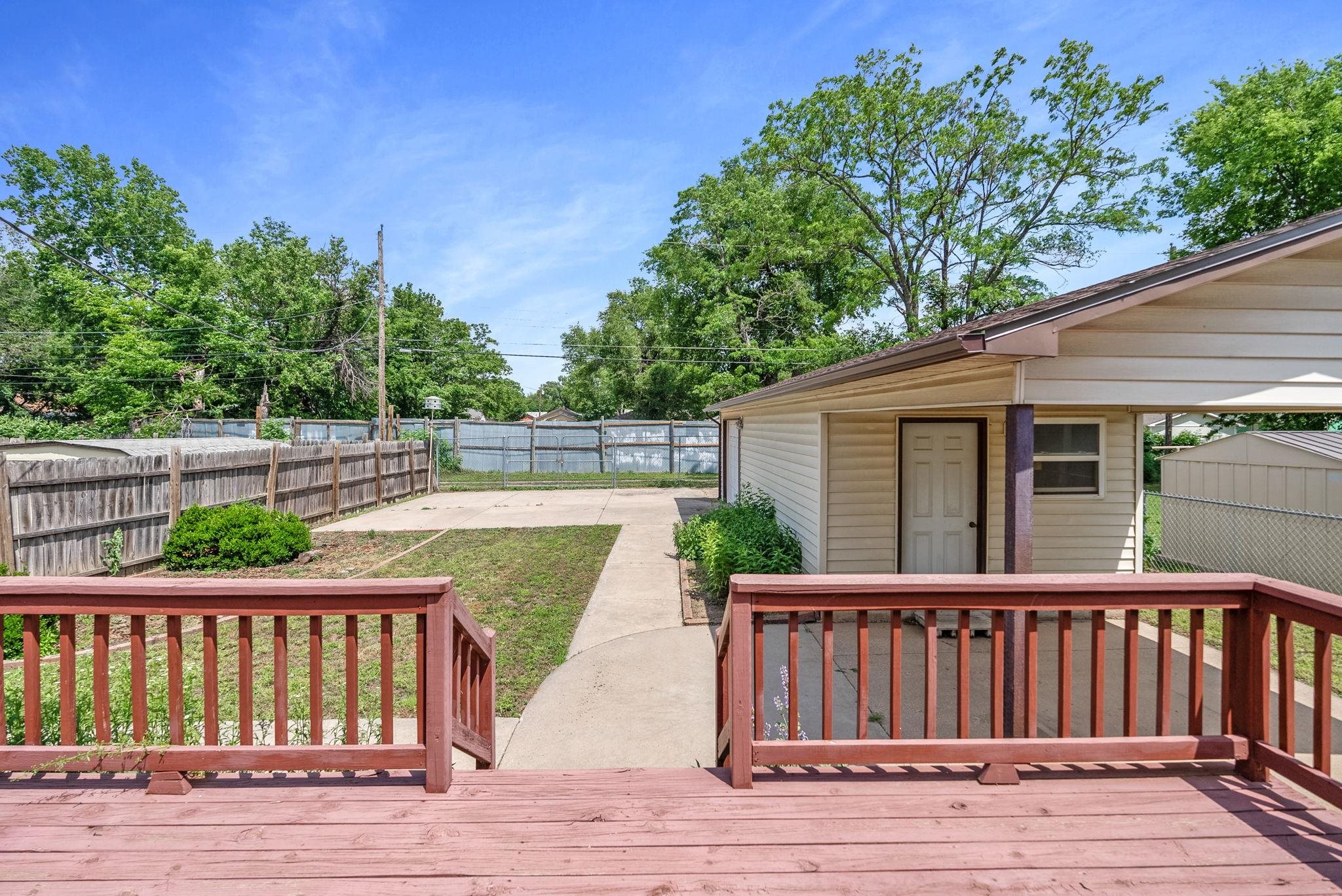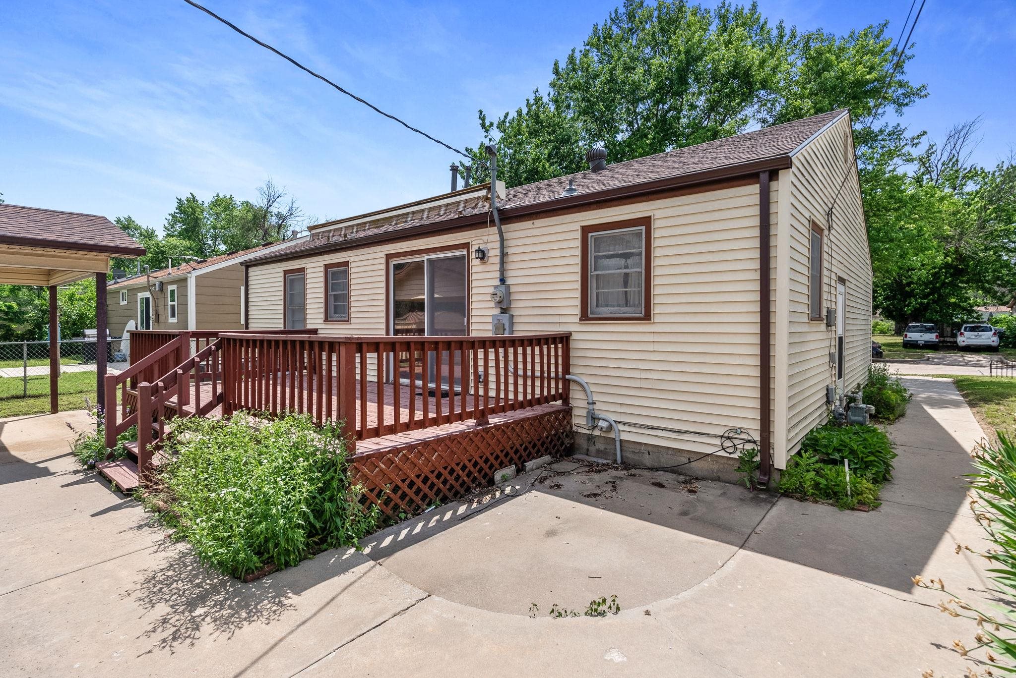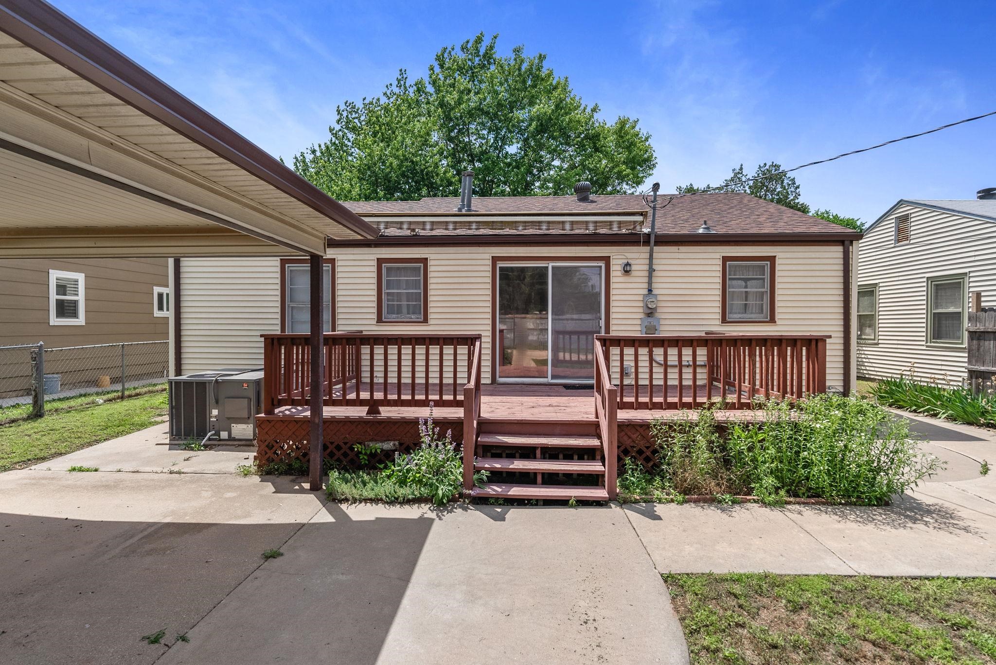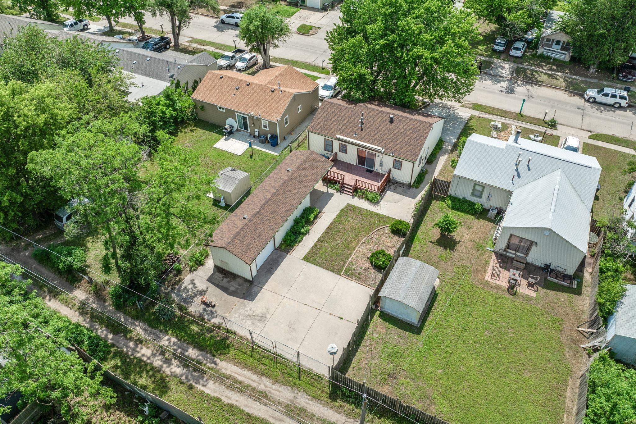 - Description: Great opportunity to add your personal touches to this well loved home in north Wichita! Brand new roof, RV parking, alley access, detached garage with workshop space(31x12) and a covered patio are just a few of the great features this home has to offer. This unique home has 2 bedrooms, 1 bathroom, hardwood flooring, low maintenance vinyl siding and all of the appliances are included. Beautiful mature trees and lovely landscaping accent the covered front deck which is a perfect place to enjoy the spring weather. There is also additional parking space in the backyard with double gates for easy access from the alley. Home is sold as is. Show all description
