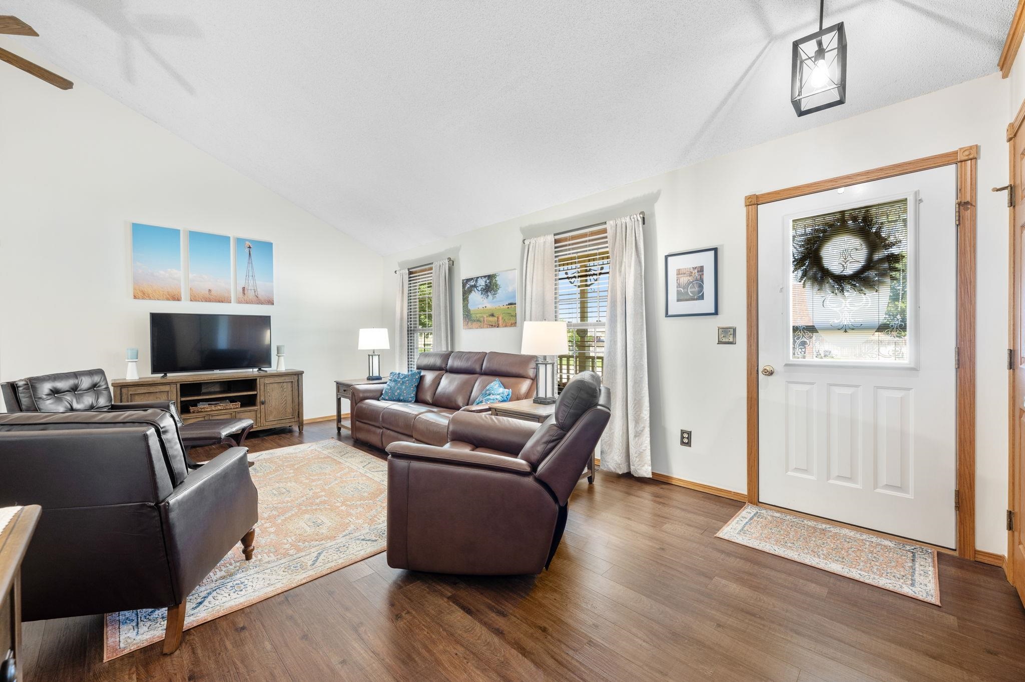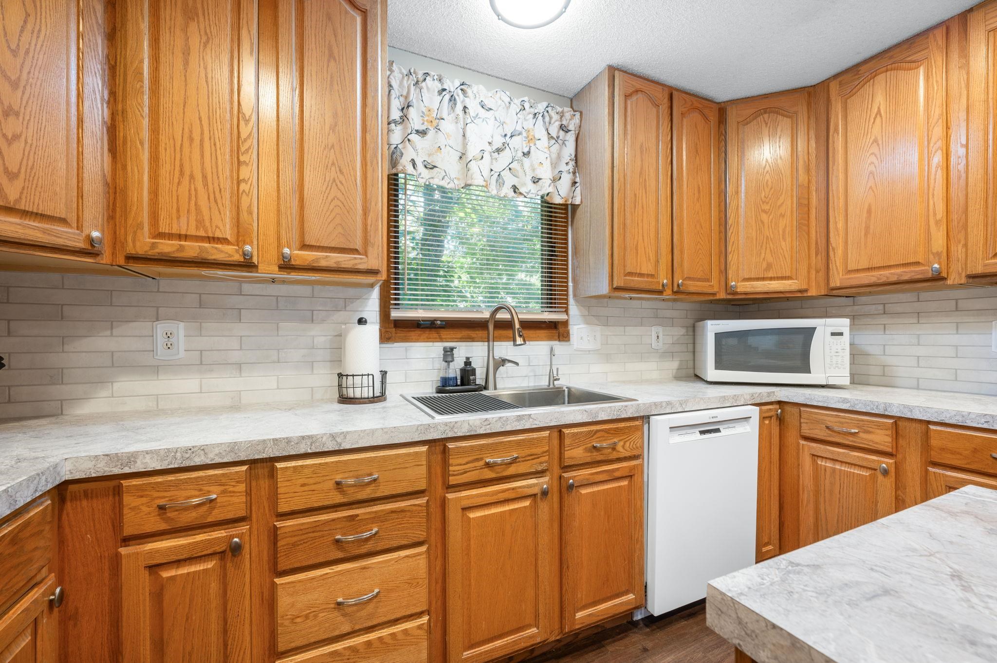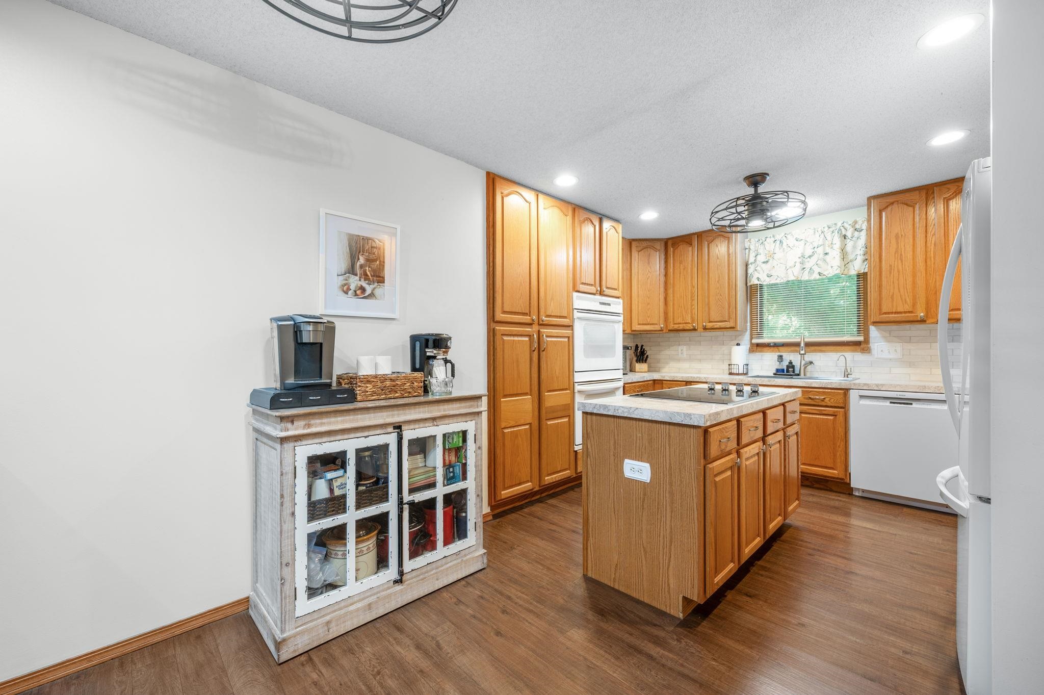 - Description: Welcome to 246 Peachwood in Haysville, in a no HOA neighborhood, where curb appeal and charm greet you the moment you arrive. The inviting front porch is perfect for sipping morning coffee, while low-maintenance vinyl siding and mature landscaping add to the home’s appeal. This 4-bedroom, 3-bath home defines “move-in ready, ” blending character with modern updates. Step inside to find luxury flooring, newer neutral paint, and a spacious kitchen addition designed for gathering—complete with updated countertops, tile backsplash, under-cabinet lighting, new sink, faucet, garbage disposal, cooktop, and all appliances staying. The built-in pantry with roll-out drawers adds smart storage. The living room is bright and welcoming, featuring triple-pane replacement windows and access to the back deck with a custom thermo roll shutter for energy efficiency and security. The large primary suite with a walk-in closet is a true retreat, offering a spa-like bath addition with a double vanity, whirlpool tub with heater, walk-in shower, and main floor laundry nearby for convenience. The main floor hall bath has also been updated with quartz countertops. Downstairs, the basement provides two generously sized bedrooms with window seats (with storage!), a full bath, an additional laundry space with washer and dryer included, and optional gas dryer hookup. Major updates ensure peace of mind: a 50-gallon hot water tank and water softener (2025), premium cedar 6’ privacy fence (2022), HVAC with Reme Halo purifier (2019), and a 30-year Heritage roof (2016). Additional features include permanent siding, composite deck, sprinkler system front and back, gutter covers, ceiling fans throughout, a whole-house fan, and energy-efficient custom upgrades. Set on a large lot with plenty of space to entertain or relax, this home has been thoughtfully maintained and beautifully upgraded, ready for its next chapter. Don’t miss your chance to make it yours! Show all description