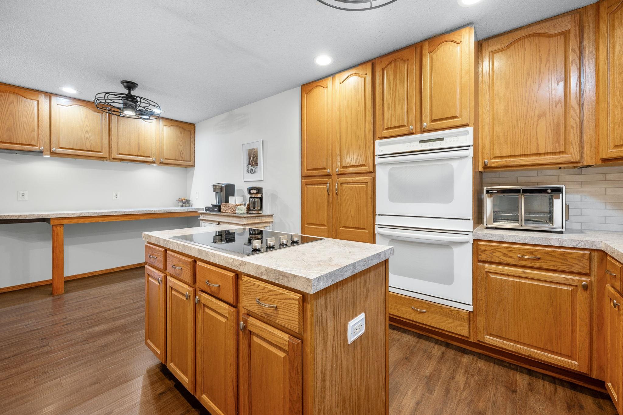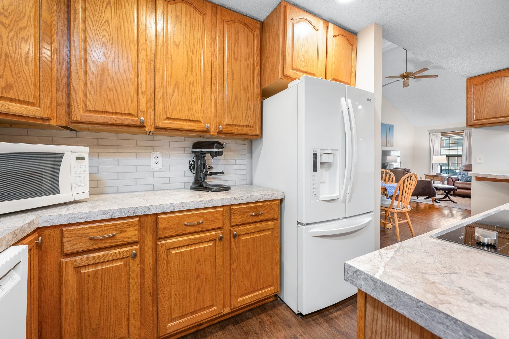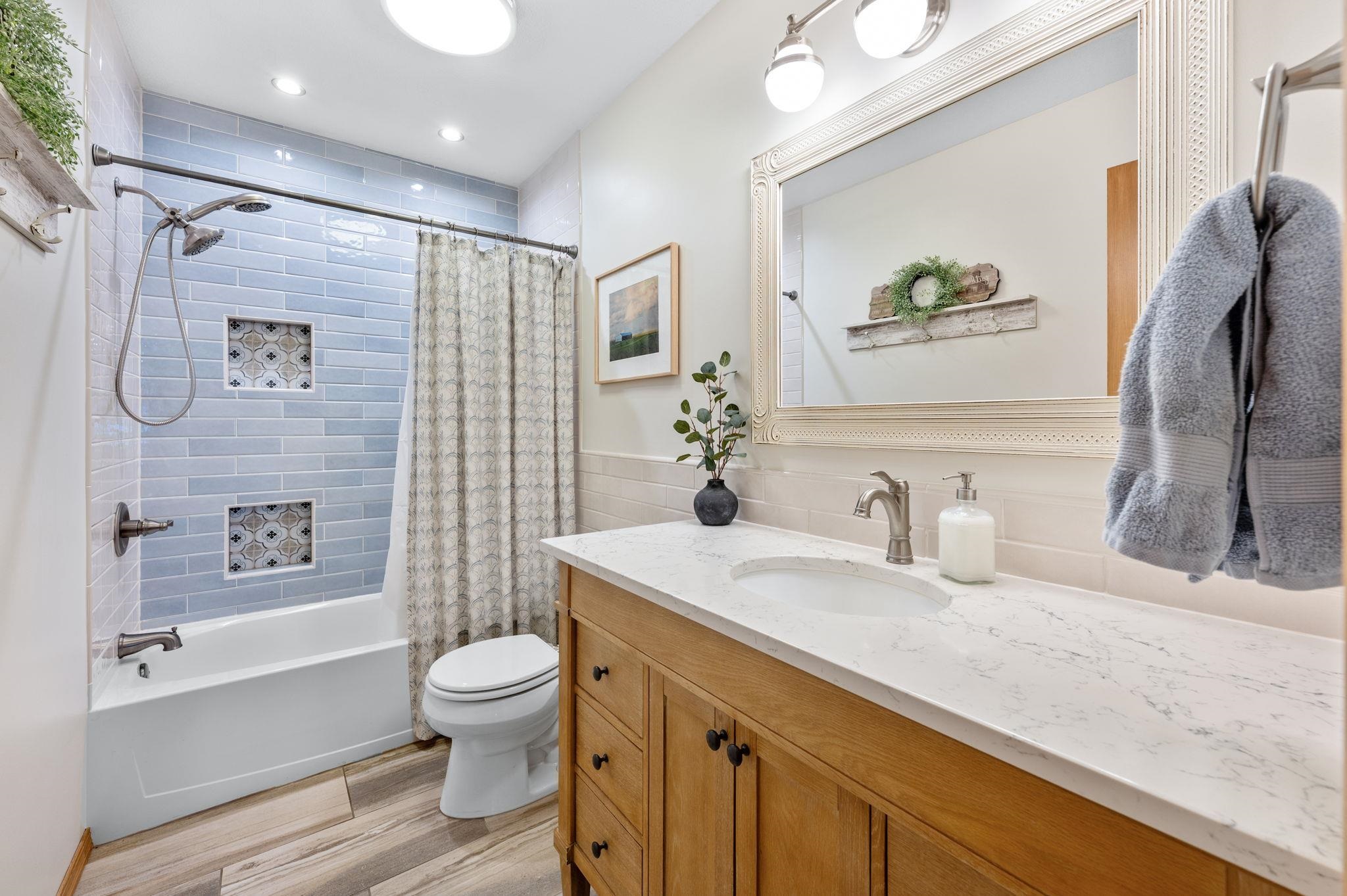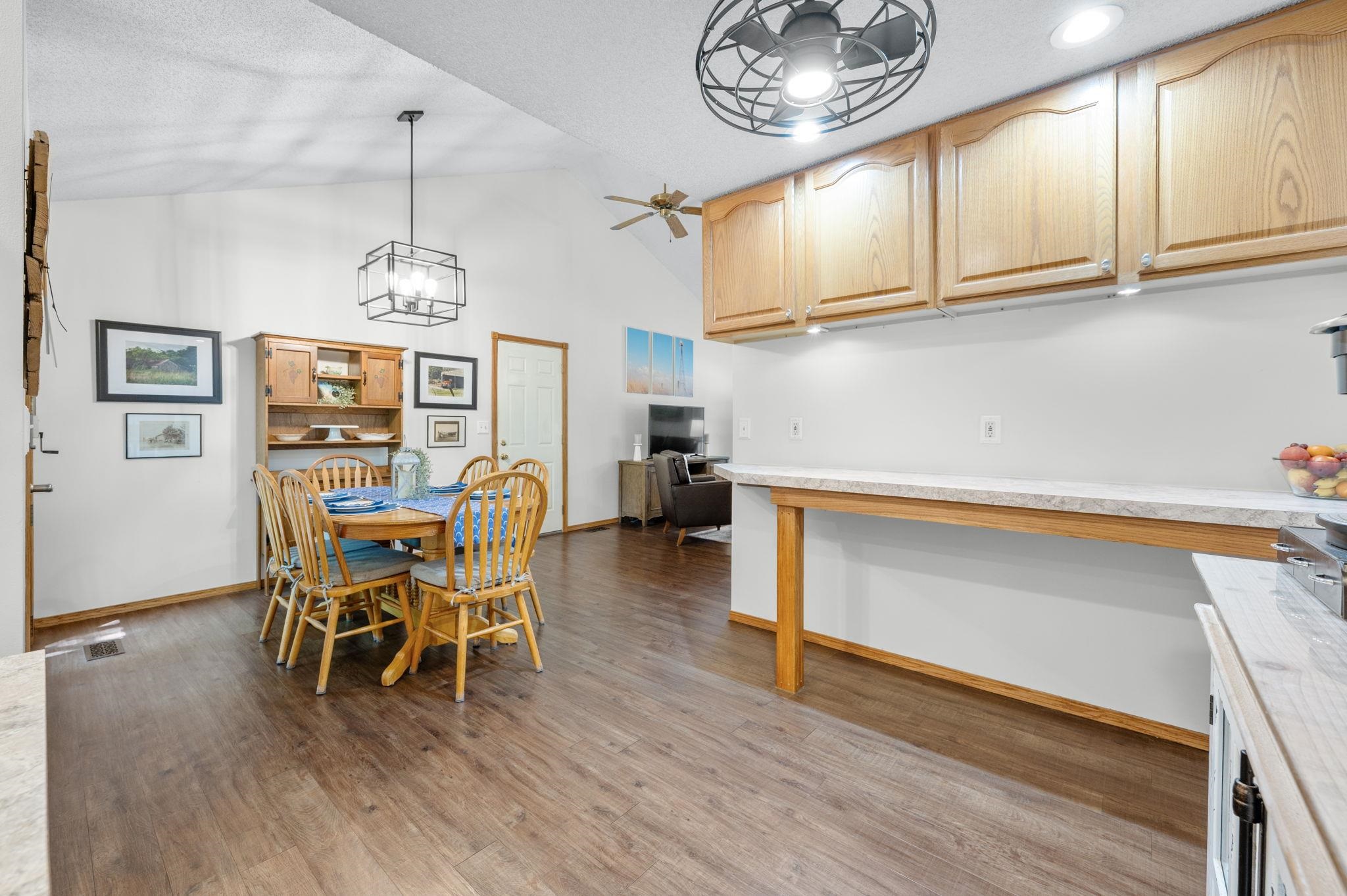 - Description: Welcome to 246 Peachwood in Haysville, in a no HOA neighborhood, where curb appeal and charm greet you the moment you arrive. The inviting front porch is perfect for sipping morning coffee, while low-maintenance vinyl siding and mature landscaping add to the home’s appeal. This 4-bedroom, 3-bath home defines “move-in ready, ” blending character with modern updates. Step inside to find luxury flooring, newer neutral paint, and a spacious kitchen addition designed for gathering—complete with updated countertops, tile backsplash, under-cabinet lighting, new sink, faucet, garbage disposal, cooktop, and all appliances staying. The built-in pantry with roll-out drawers adds smart storage. The living room is bright and welcoming, featuring triple-pane replacement windows and access to the back deck with a custom thermo roll shutter for energy efficiency and security. The large primary suite with a walk-in closet is a true retreat, offering a spa-like bath addition with a double vanity, whirlpool tub with heater, walk-in shower, and main floor laundry nearby for convenience. The main floor hall bath has also been updated with quartz countertops. Downstairs, the basement provides two generously sized bedrooms with window seats (with storage!), a full bath, an additional laundry space with washer and dryer included, and optional gas dryer hookup. Major updates ensure peace of mind: a 50-gallon hot water tank and water softener (2025), premium cedar 6’ privacy fence (2022), HVAC with Reme Halo purifier (2019), and a 30-year Heritage roof (2016). Additional features include permanent siding, composite deck, sprinkler system front and back, gutter covers, ceiling fans throughout, a whole-house fan, and energy-efficient custom upgrades. Set on a large lot with plenty of space to entertain or relax, this home has been thoughtfully maintained and beautifully upgraded, ready for its next chapter. Don’t miss your chance to make it yours! Show all description