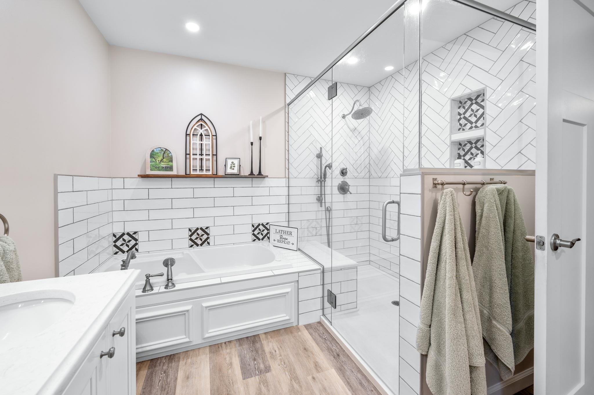 - Master Bedroom: Master Bdrm on Main Level, Master Bedroom Bath, Sep. Tub/Shower/Mstr Bdrm, Two Sinks, Quartz Counters