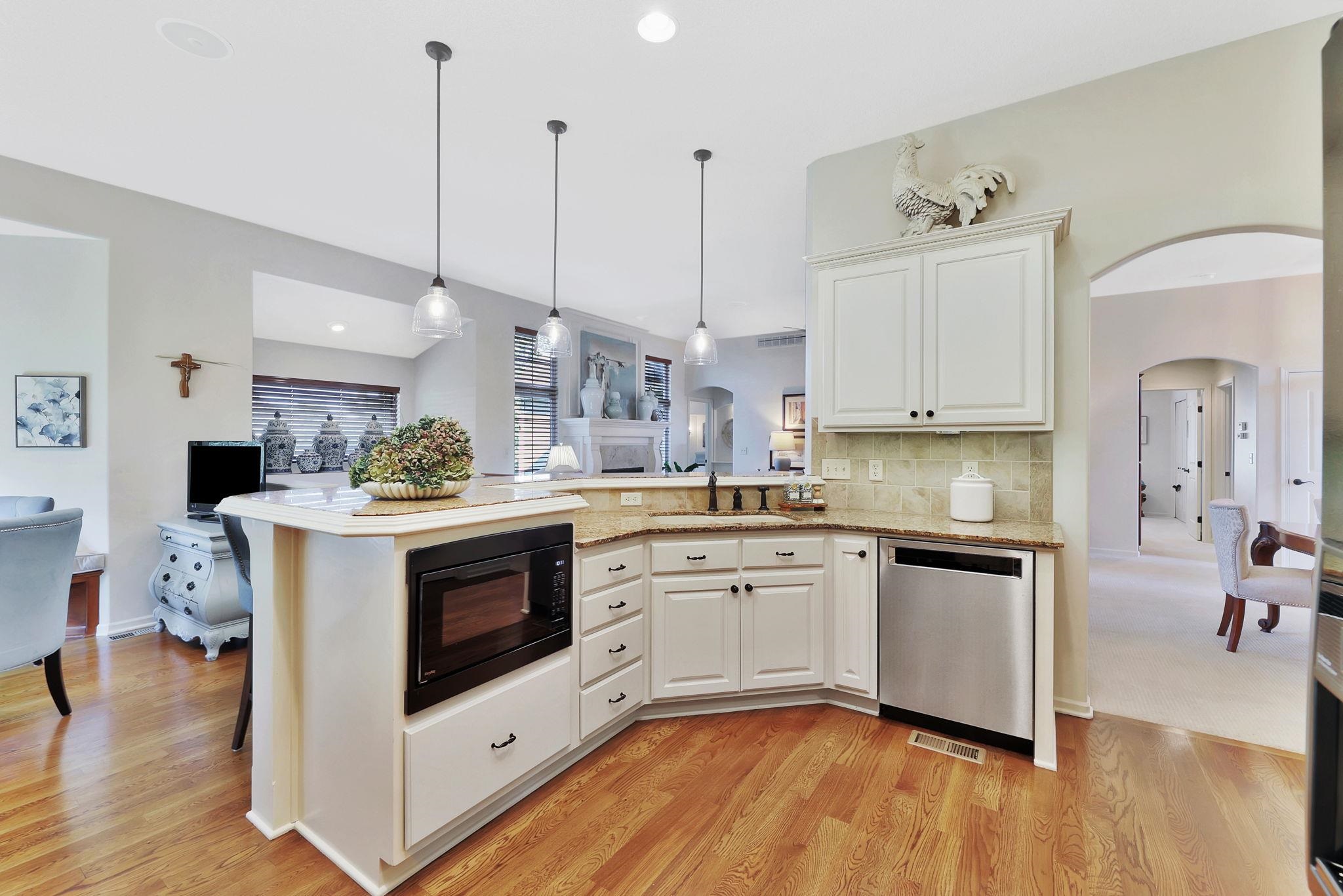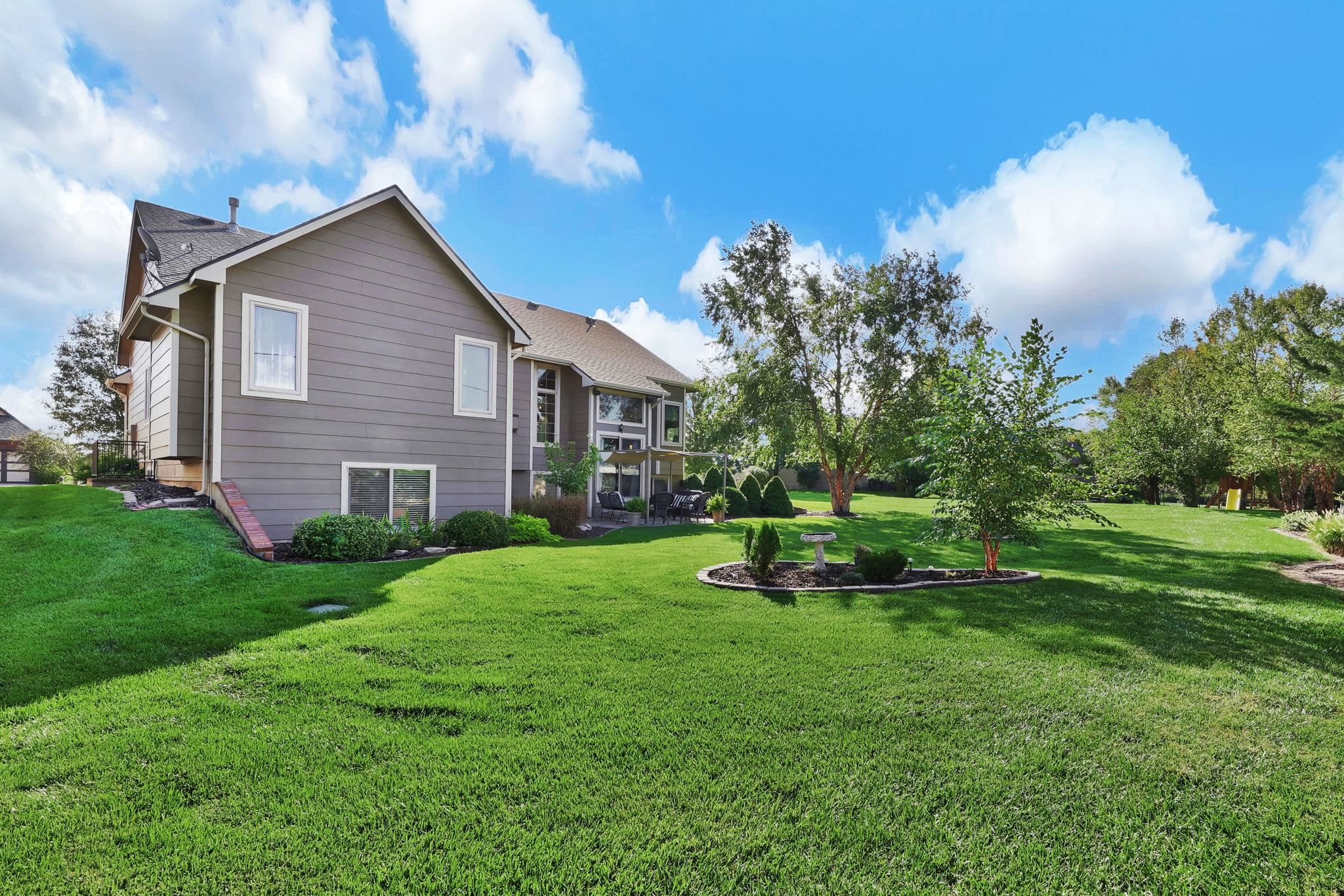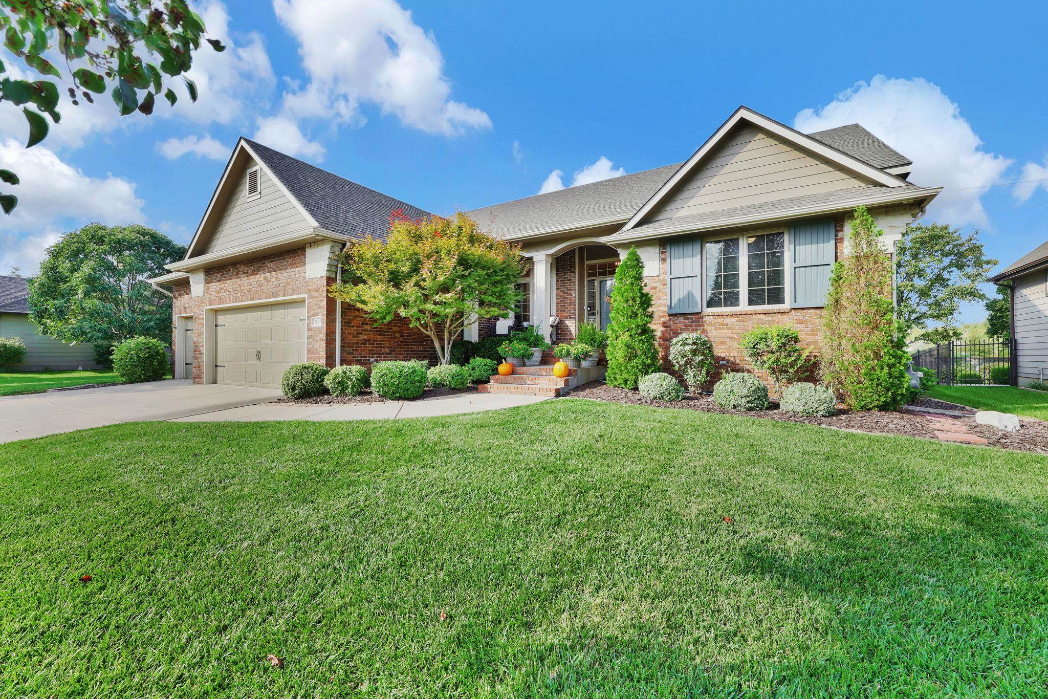 - Description: Welcome home; built with enduring quality by Nies Homes, this one-owner ranch in desirable Hawthorne has been impeccably maintained and thoughtfully designed. With great curb appeal, crisp white paint, and neutral décor, it offers a fresh and timeless look throughout. High ceilings and an open-concept layout create an airy feel, while two fireplaces add warmth and character. The great room connects easily to the formal dining area, making the main level ideal for both everyday living and entertaining. The eat-in kitchen features a charming banquette, granite countertops, hardwood floors, eating bar, and a walk-in pantry. Decorative glass upper cabinets and under-cabinet lighting provide subtle style and function. The primary suite includes a vaulted ceiling, spacious walk-in closet, double vanity, and separate tub and shower. Two additional bedrooms, a full hall bath, and a separate laundry room complete the main level. Entertaining is effortless in the mid-level walkout leading to a finished view-out lower level with a large rec/family room with a second fireplace, two bedrooms, and a full bathroom. A large unfinished area offers excellent storage or space for workout equipment. Extend your living space outdoors where a concrete patio with a pergola overlooks a landscaped backyard with a full sprinkler system. Recent updates include a new roof (2019) and new main level and stair carpet (2024) for added peace of mind. Located within the highly rated Andover School District and offering lower Sedgwick County taxes, this home provides easy access to highways, shopping, dining, walking paths, Greenwich Place, Trinity Academy, and Magdalen Church/School. Move-in ready and easy on the eyes, this is one you must see! Show all description
