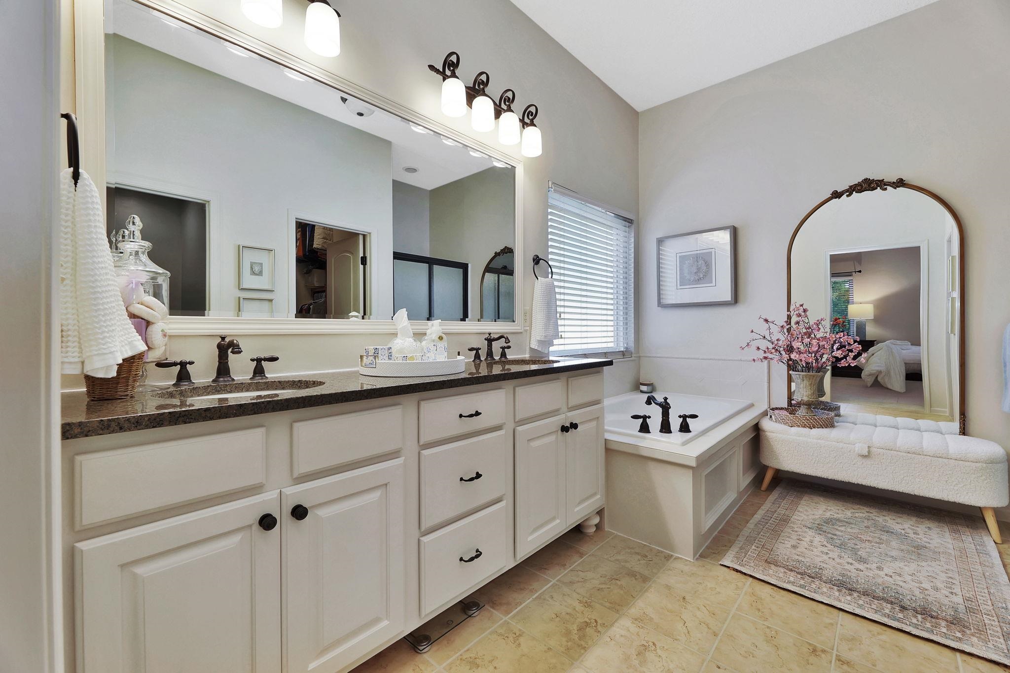 - Master Bedroom: Master Bdrm on Main Level, Split Bedroom Plan, Master Bedroom Bath, Sep. Tub/Shower/Mstr Bdrm, Two Sinks, Granite Counters, Water Closet