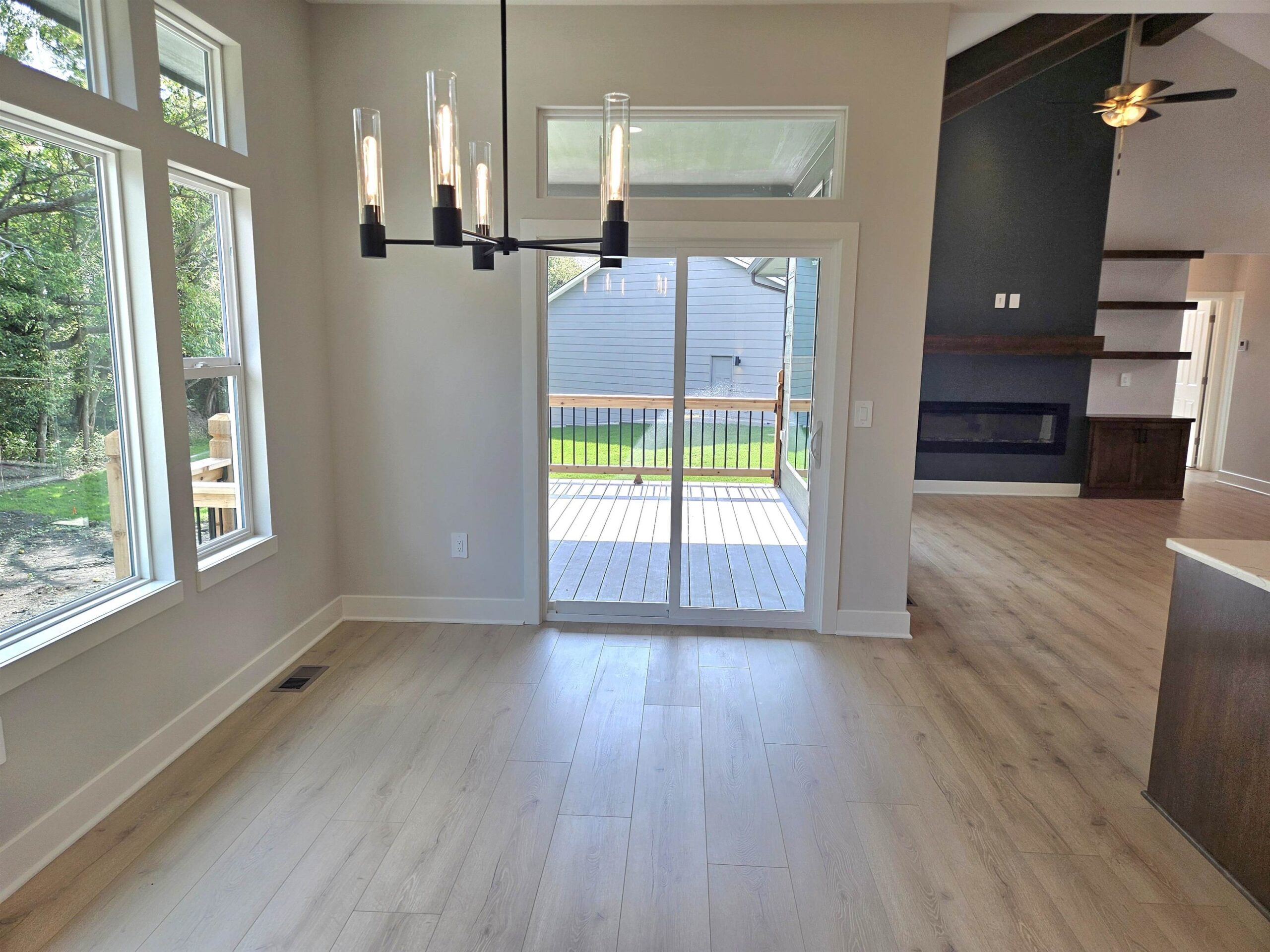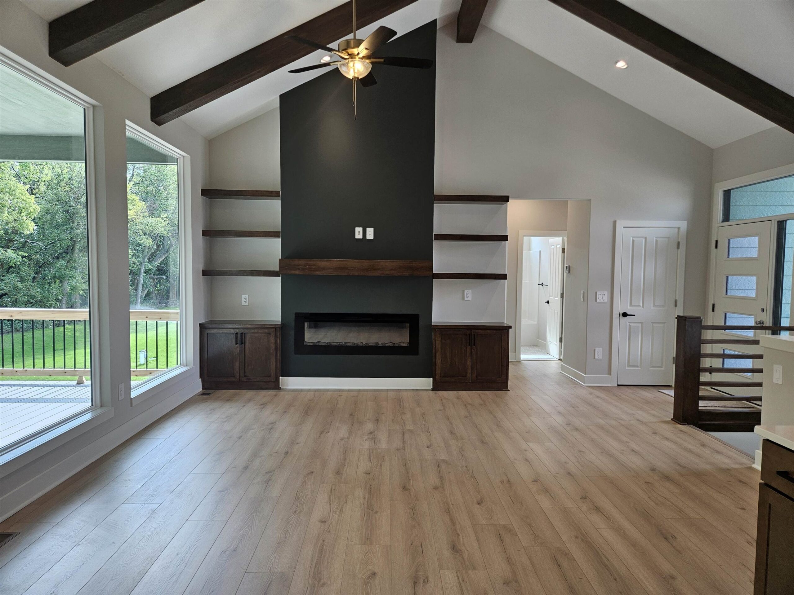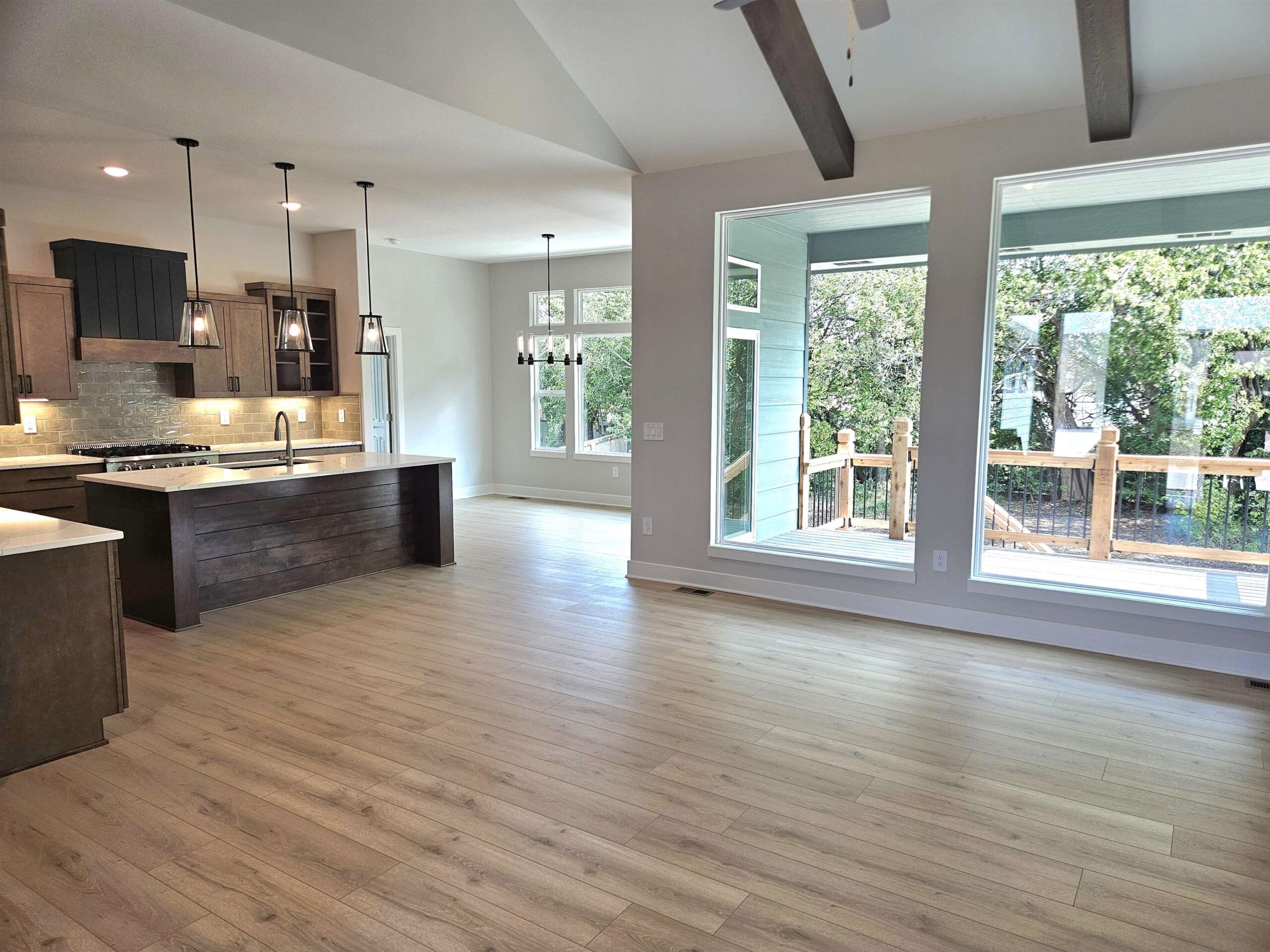 - Description: This NEW Riverton IV floorplan by Moeder Construction sits on a beautiful tree line lot at the end of a quiet cul-de-sac. 5 beds, 3 baths, 2989 sqft with 3-car garage. Comes with 1-year builder warranty. 10ft ceilings in master suite and kitchen. Vaulted ceilings in living room with wood beams. Oversized quartz kitchen island. Large walk-in pantry. 36" Thor gas range plus a second oven. Electric fireplace in the living room with floating shelves and built-in cabinets. Covered deck with concrete patio below that spans entire length of home. The master bath has a double vanity with windows above to let in natural light. Tiled shower with bench. The laundry room is accessible from the back hall as well as the master bathroom/closet for ease of putting laundry away. Finished basement has family room plus 2 bedrooms & 1 bathroom. Well, irrigation and sod included in price. Andover school district! 3 community swimming pools with a park complete with basketball and pickleball courts. There is a Riverton IV model located at 3235 N Bedford St. in Brookfield that can be toured daily from Noon to 5pm. Show all description