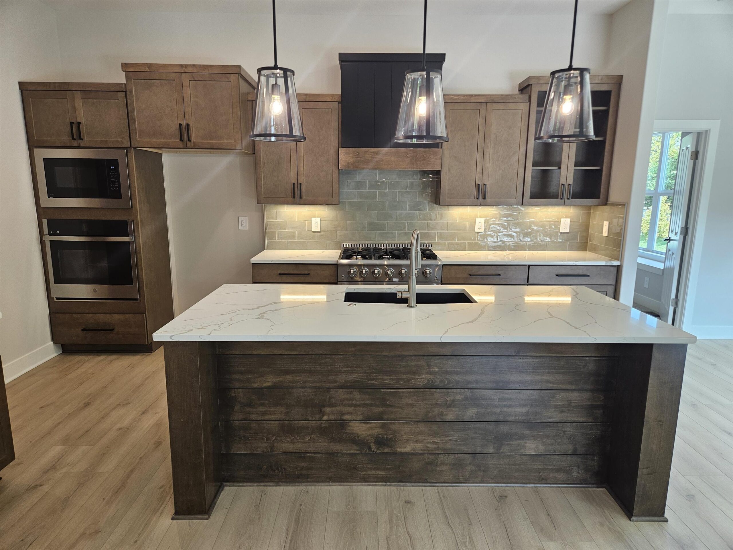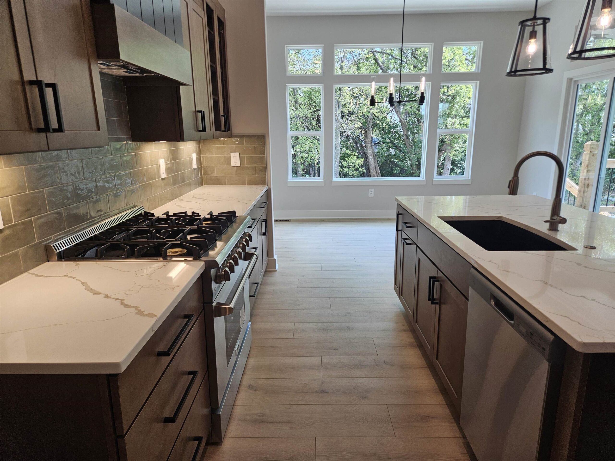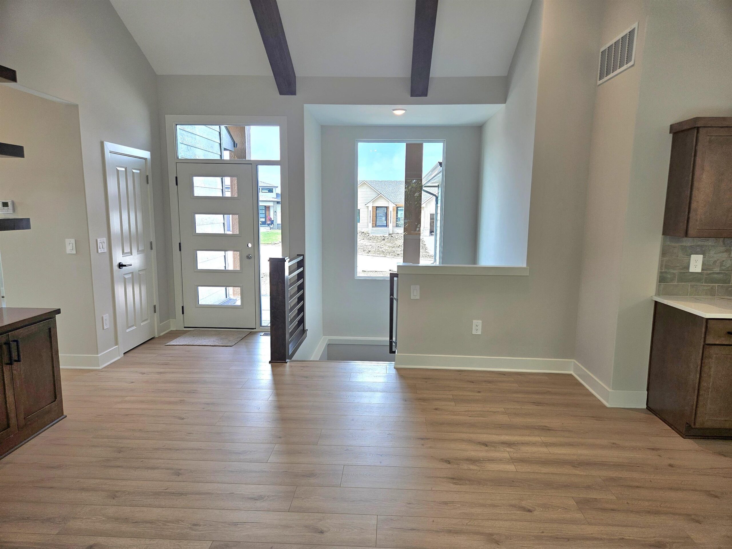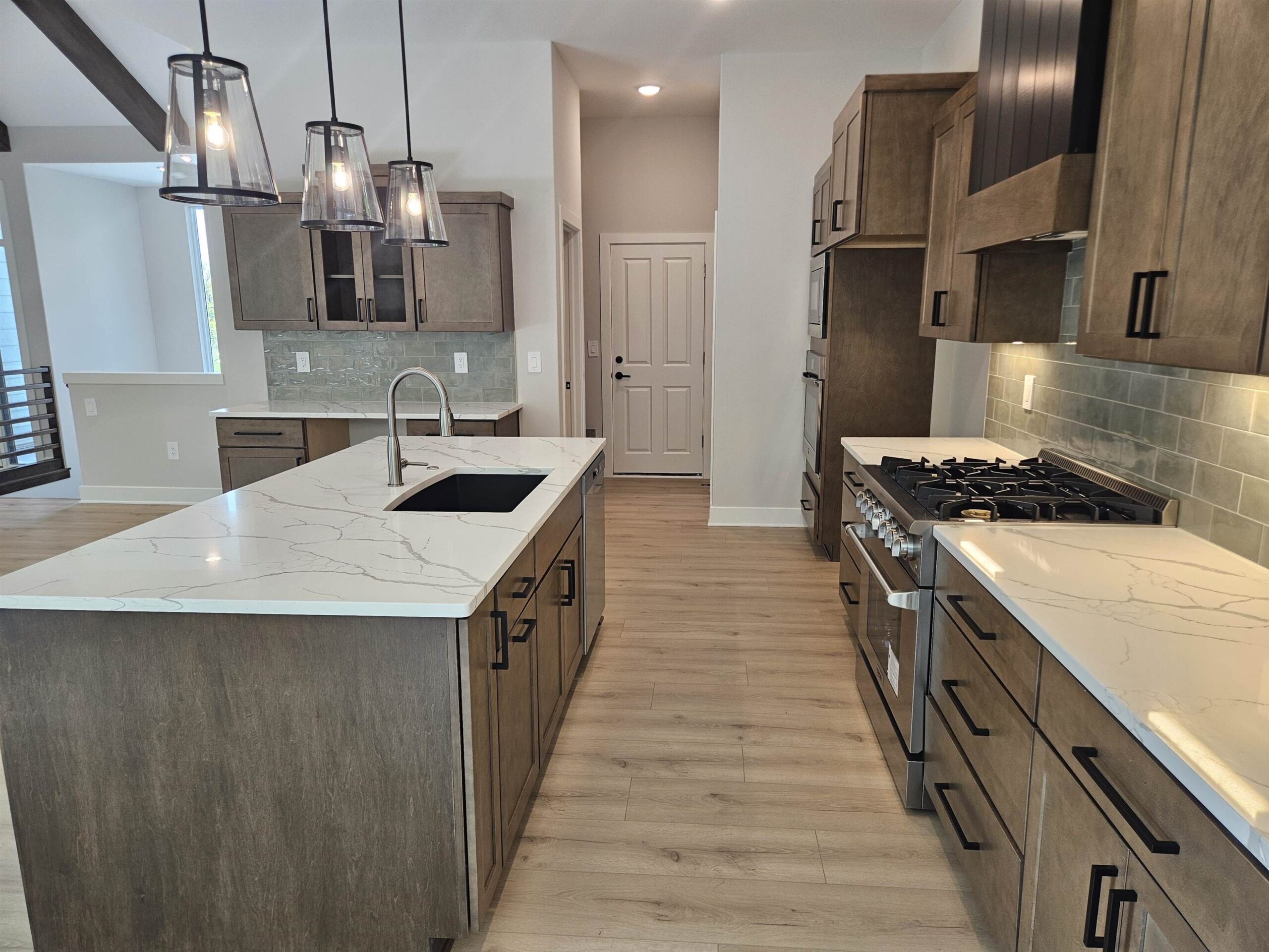 - Description: This NEW Riverton IV floorplan by Moeder Construction sits on a beautiful tree line lot at the end of a quiet cul-de-sac. 5 beds, 3 baths, 2989 sqft with 3-car garage. Comes with 1-year builder warranty. 10ft ceilings in master suite and kitchen. Vaulted ceilings in living room with wood beams. Oversized quartz kitchen island. Large walk-in pantry. 36" Thor gas range plus a second oven. Electric fireplace in the living room with floating shelves and built-in cabinets. Covered deck with concrete patio below that spans entire length of home. The master bath has a double vanity with windows above to let in natural light. Tiled shower with bench. The laundry room is accessible from the back hall as well as the master bathroom/closet for ease of putting laundry away. Finished basement has family room plus 2 bedrooms & 1 bathroom. Well, irrigation and sod included in price. Andover school district! 3 community swimming pools with a park complete with basketball and pickleball courts. There is a Riverton IV model located at 3235 N Bedford St. in Brookfield that can be toured daily from Noon to 5pm. Show all description