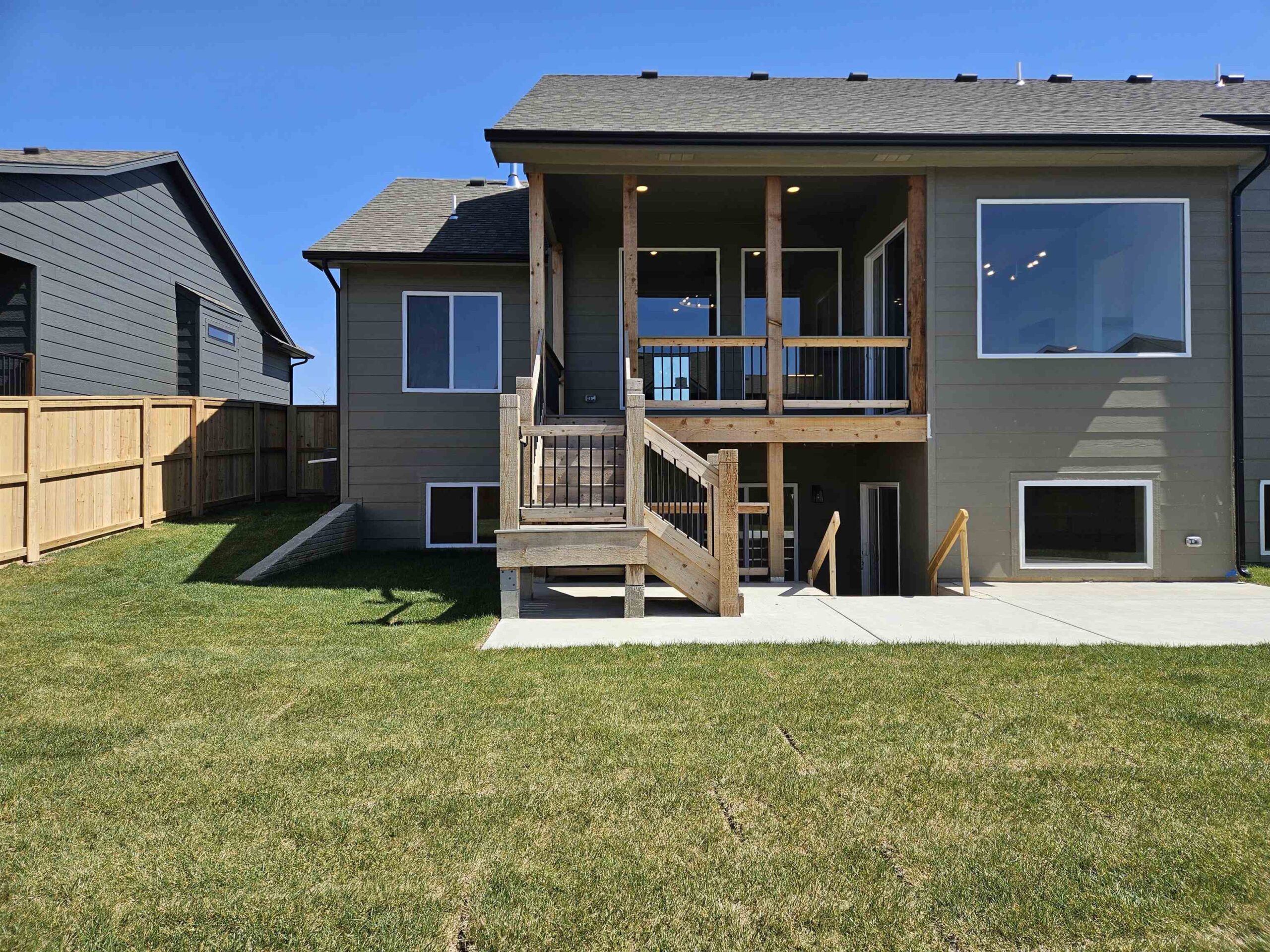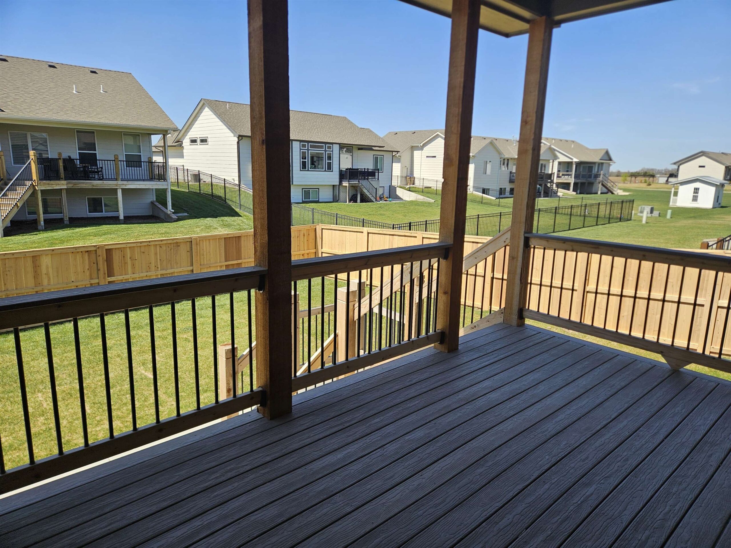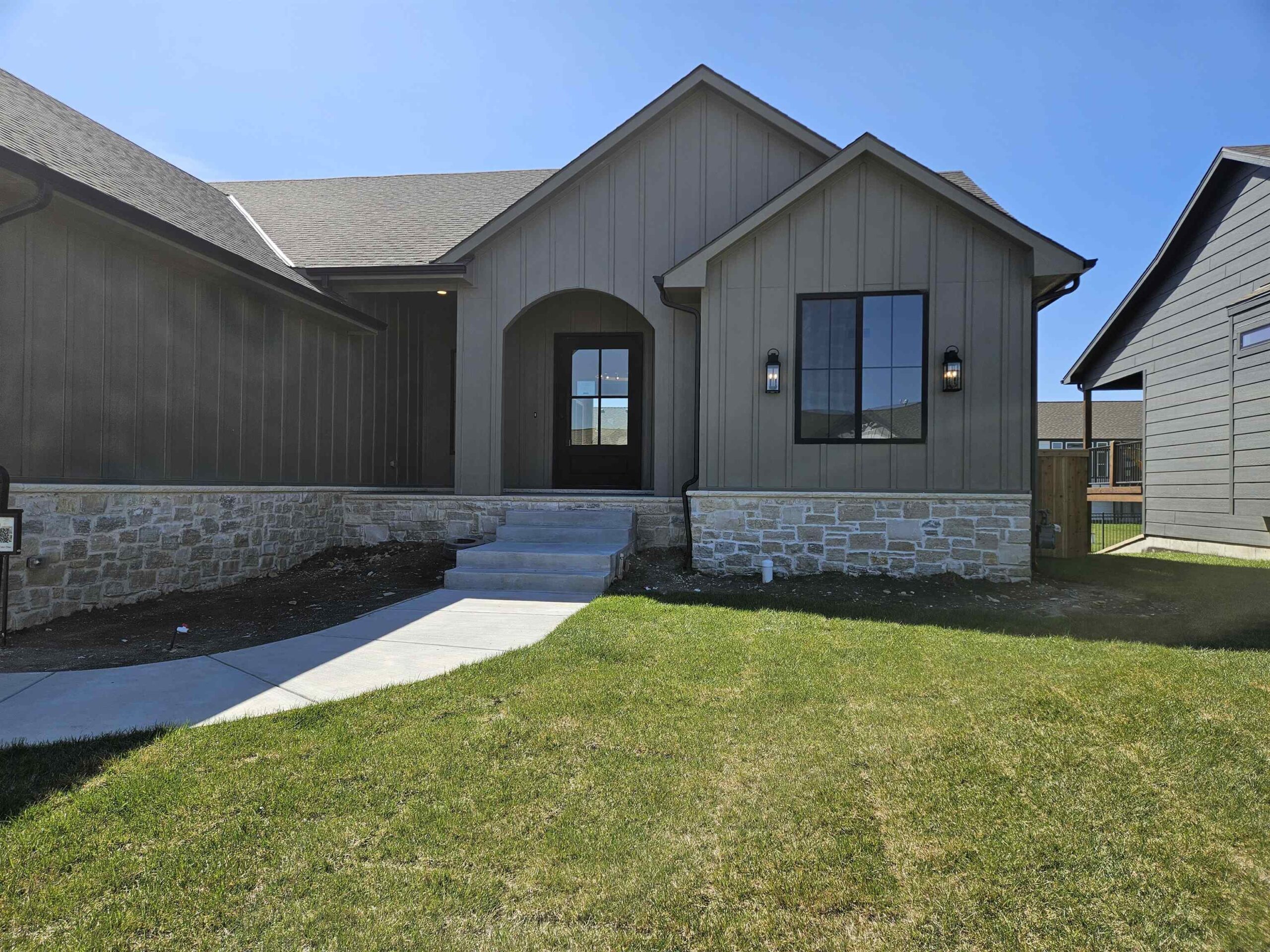 - Description: This Stonegate floorplan built by Buckert Construction is beautiful! Don't miss the opportunity to own one of the last new homes in the desired Cornerstone neighborhood. 5 beds, 3 baths, 2975 sq ft with a 3-car garage with a fenced backyard. 10ft ceilings on main floor with wood beams in living room. Stone and wood accent walls around fireplace and oven in kitchen. Dining room has tongue & groove wood ceiling. Stunning front entry with oversized metal pivot door and wood accent wall. Quartz countertops throughout home. Large kitchen with side coffee bar and walk-in pantry. Sliding glass door from dining room opens onto a covered deck. Nice drop zone area off of garage entry with plenty of storage. Laundry room is accessible from both mudroom and master closet for ease of putting laundry away. Also has a folding table with additional cabinets above and below. The master bath has double sinks in vanity with window above to let in natural light. Full tiled shower with bench at one end. Master bedroom has floor to ceiling wood accent wall with trey ceiling above. Full finished basement with a walk-out pit to the backyard. Wet bar looks out into family room. There are 2 bedrooms & 1 bathroom down the hallway that meet in a cute cove. Kid zone or storage under the stairs. Well, irrigation and sod included in price. Comes with 1 year builder warranty. Andover school district! 3 community swimming pools with a park complete with basketball and pickleball courts. HOA dues are just $35/month and specials are only $190/month. Show all description
