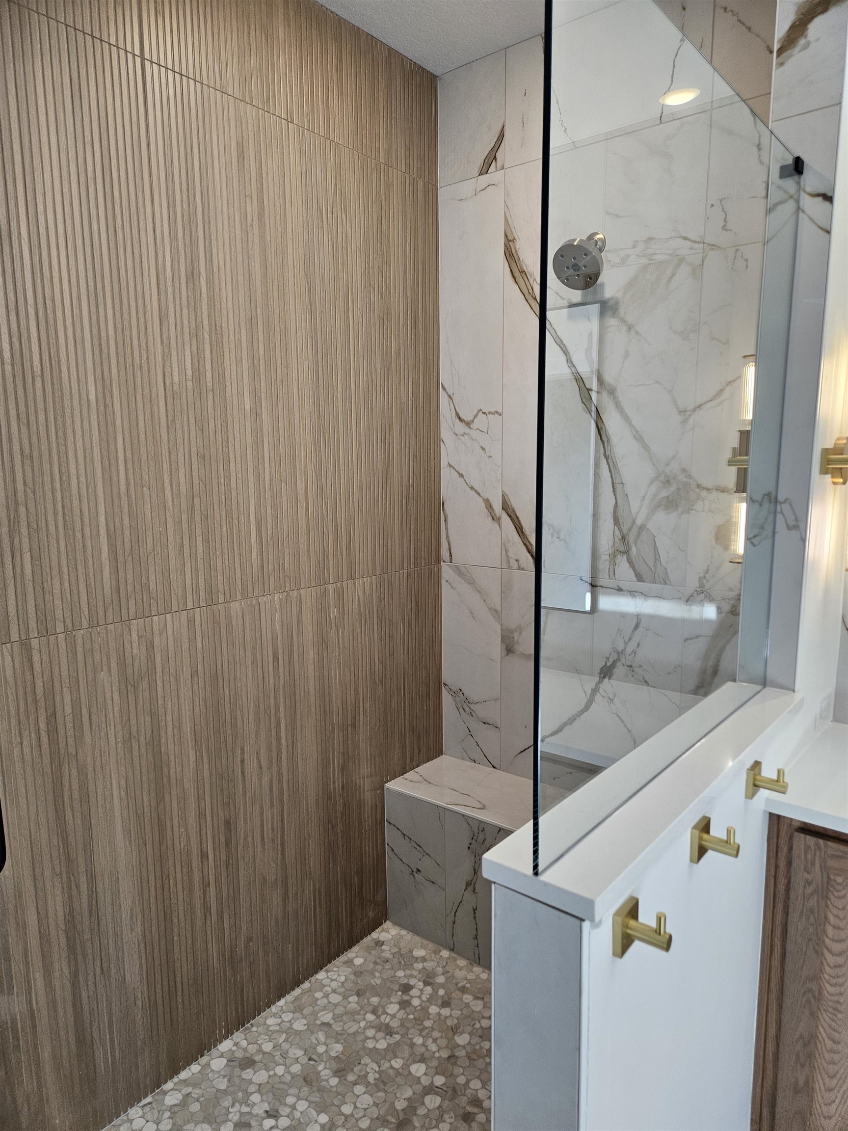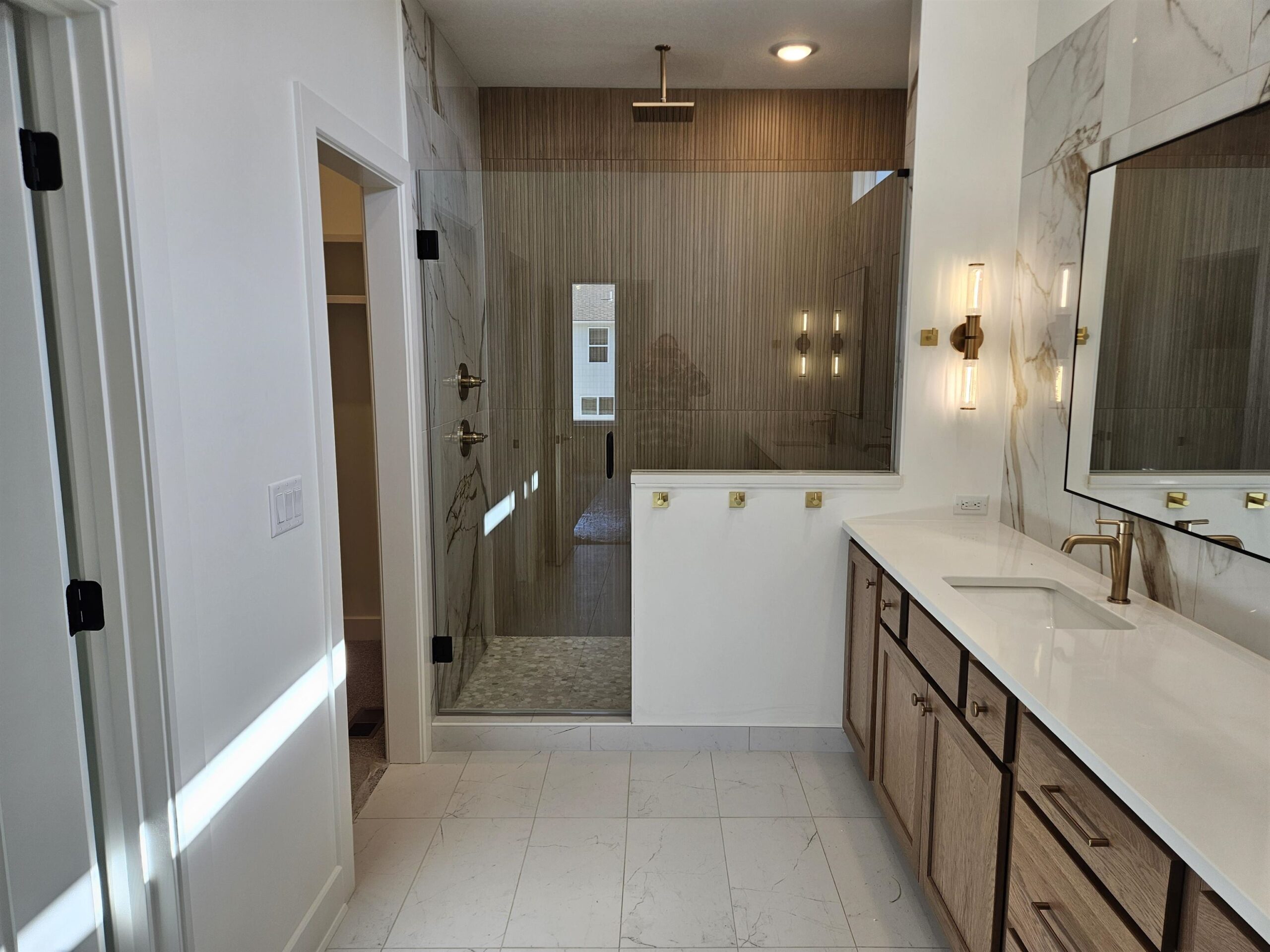 - Master Bedroom: Master Bdrm on Main Level, Split Bedroom Plan, Master Bedroom Bath, Shower/Master Bedroom, Two Sinks, Quartz Counters