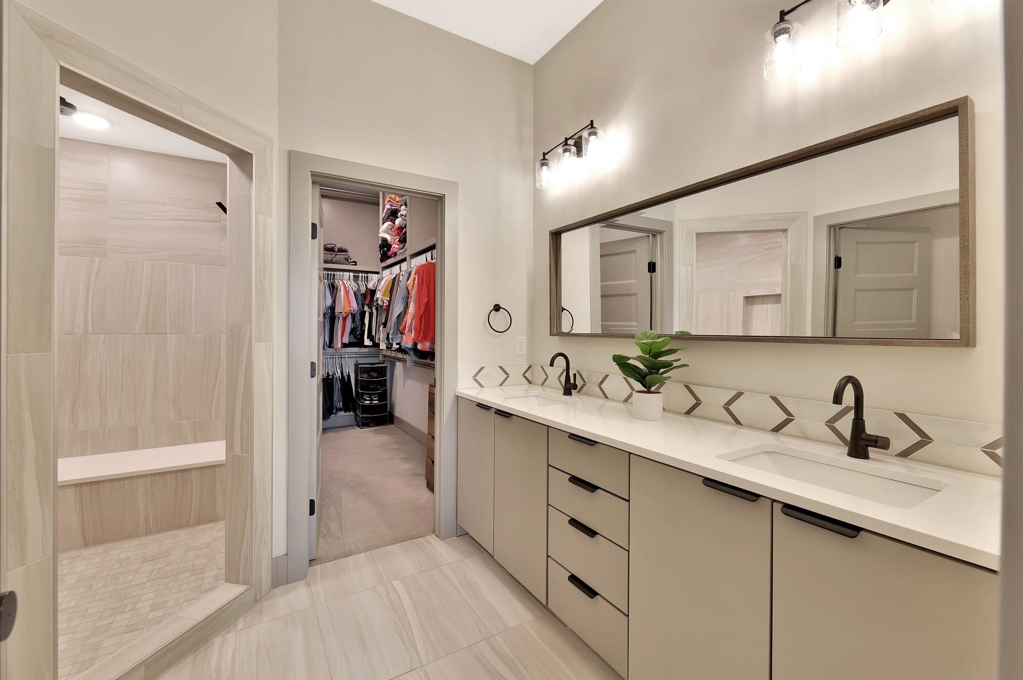 - Master Bedroom: Master Bdrm on Main Level, Split Bedroom Plan, Master Bedroom Bath, Shower/Master Bedroom, Two Sinks, Quartz Counters, Water Closet