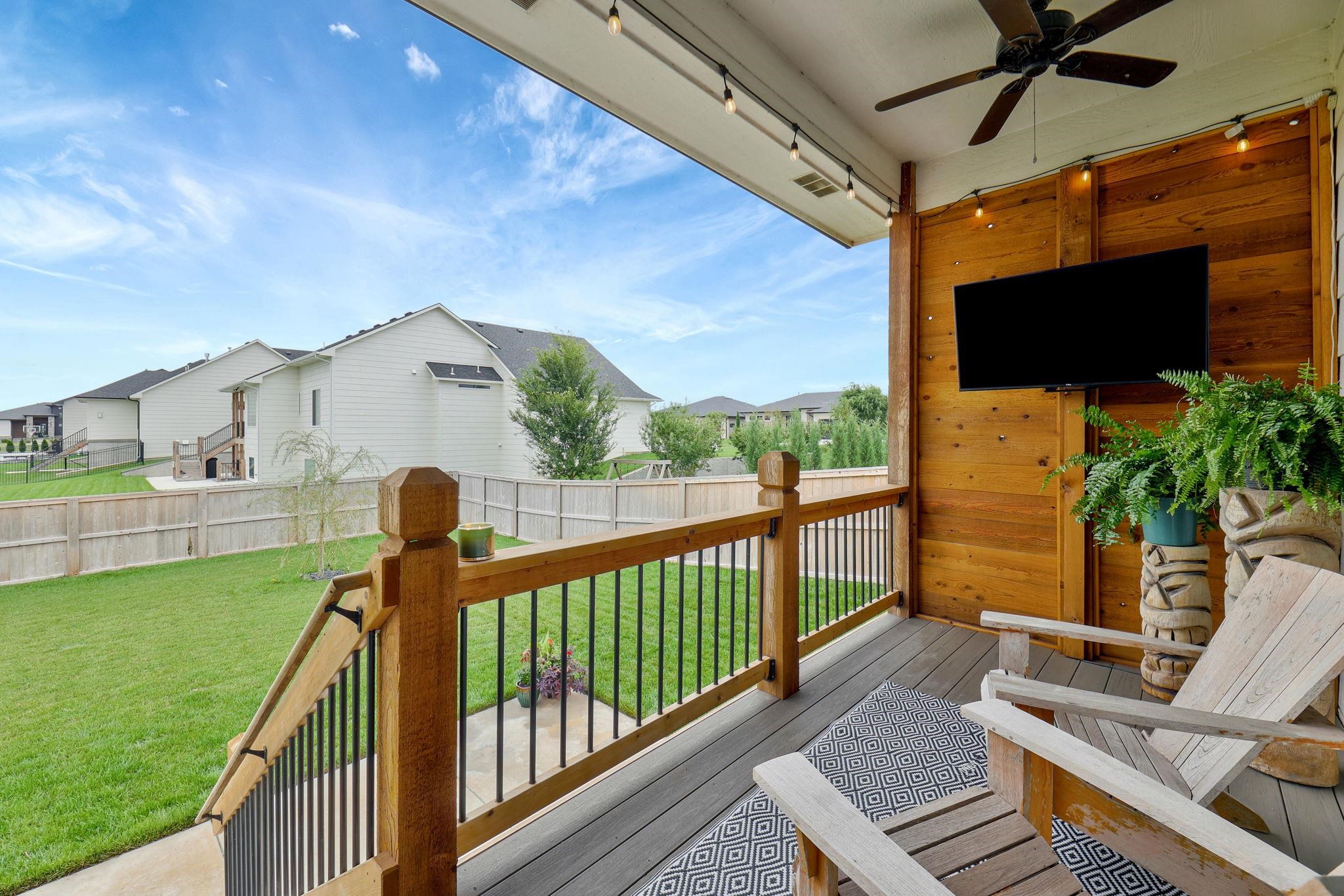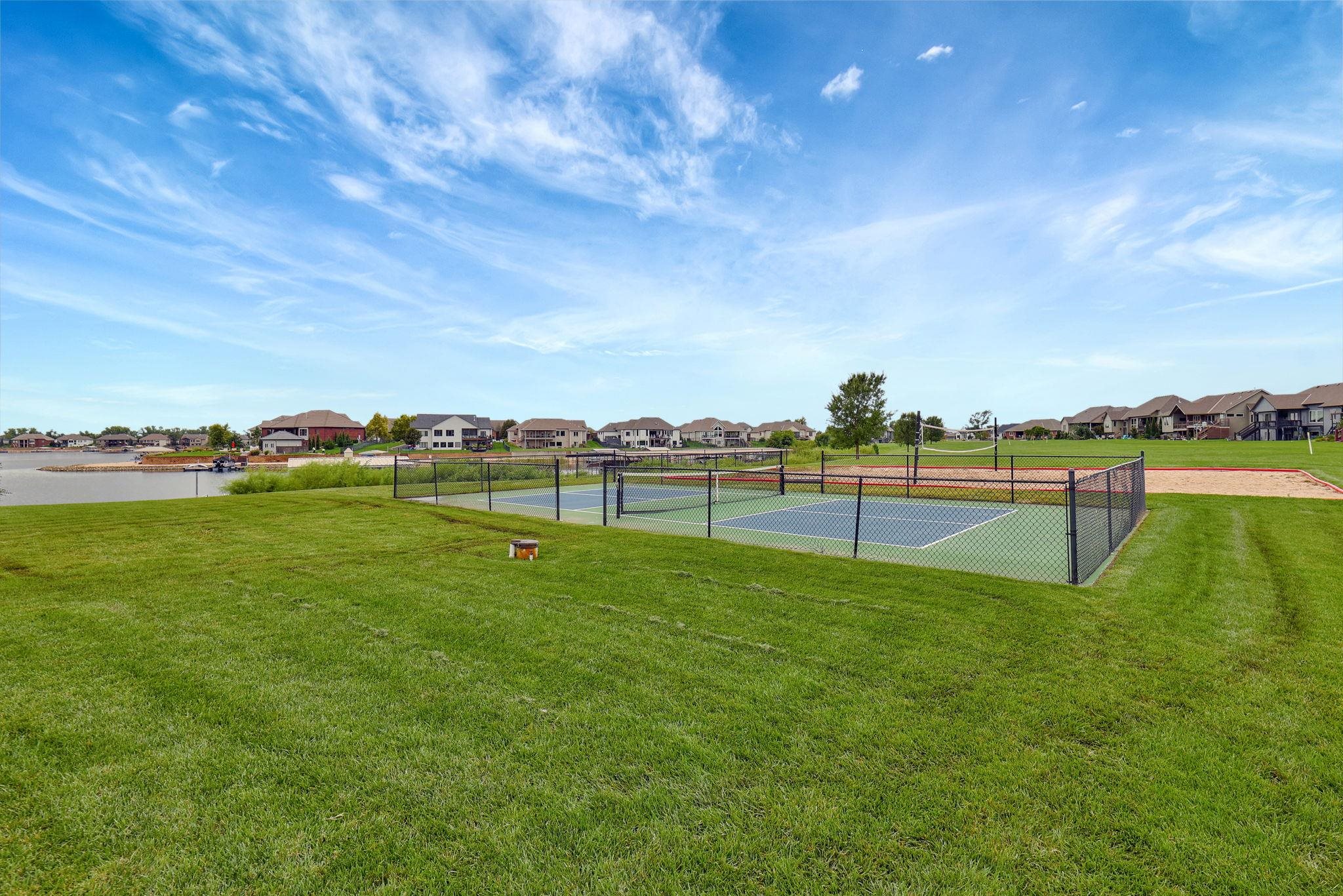 - Description: Welcome to Emerald Bay, where everyday living feels like a getaway! This stunning 4-year-old split-bedroom ranch blends modern design with the relaxed lake lifestyle you’ve been wanting. From the moment you arrive, the curb appeal sets the tone with crisp white paint and a striking glass front door. Once you step inside, you’re greeted by light-filled spaces designed for comfort and entertaining. The main floor living room is a true focal point, with a gas fireplace framed by floating cabinets and shelves and big windows that capture views of the deck and backyard. The open kitchen makes hosting a breeze with quartz countertops, a massive island/eating bar, gas range, double ovens, walk-in pantry, and under-cabinet lighting. A spacious laundry with a sink and drop zone keeps life organized, while the primary suite feels like a retreat with its accent wall, spa-inspired shower, dual vanity, and expansive walk-in closet with direct laundry access. Downstairs, the walkout basement is ready for game nights and gatherings with a huge rec/family room, beautiful wet bar, two bedrooms, a full bath, and plenty of storage. Outdoors, enjoy evenings on the covered deck with privacy slats, relax on the patio, or take advantage of the fenced yard, sprinkler system, and irrigation well. The oversized 4-car tandem garage with rear exit is ideal for storing a boat or jet skis—perfect for lake living. And what a lifestyle it is! Emerald Bay’s 100-acre ski lake offers boating, swimming, paddle boarding, and fishing right from sandy beaches and private docks. A nice clubhouse, pool, pickleball courts, and sand volleyball court create an incredible sense of community. Furthermore, this home sits off the water on a quiet cul-de-sac—making it a more affordable way to enjoy all the fantastic amenities of lake living without the waterfront price tag. Located in the desirable Maize South School District with easy access to shopping, dining, and highways—this home proves that everyday can feel like vacation. Show all description